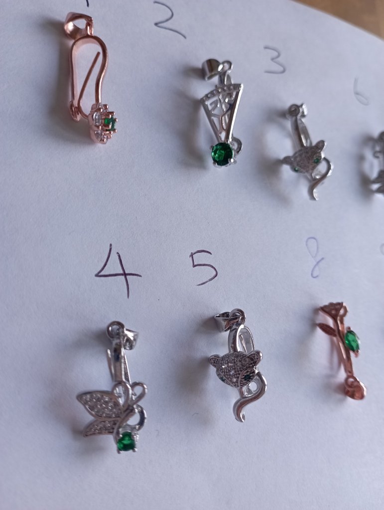 They are all made of 925 silver, some plated with gold or rose gold. Number 5 and 9 are the smallest.