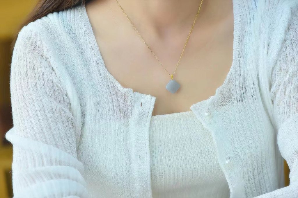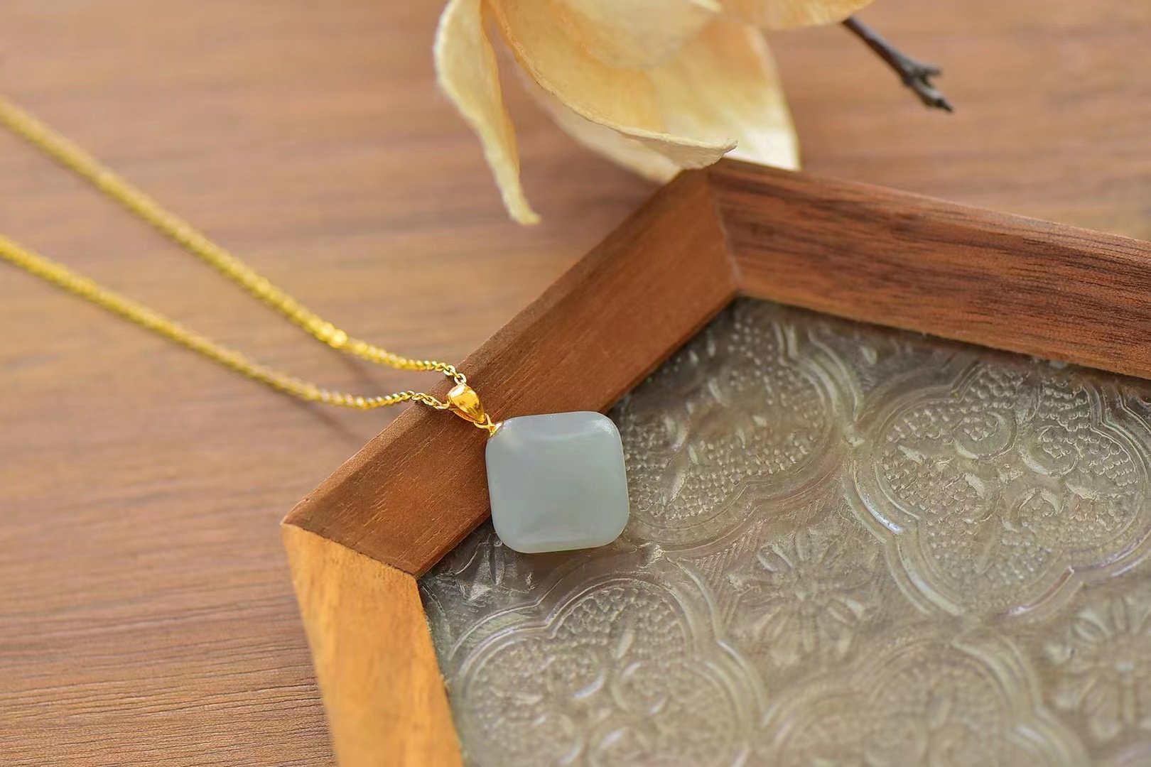 烟紫料方糖18k金镶嵌一颗. Smoky purple squarish pendent set in 18k gold, comes with S925 silver chain plated in gold. £49 per set