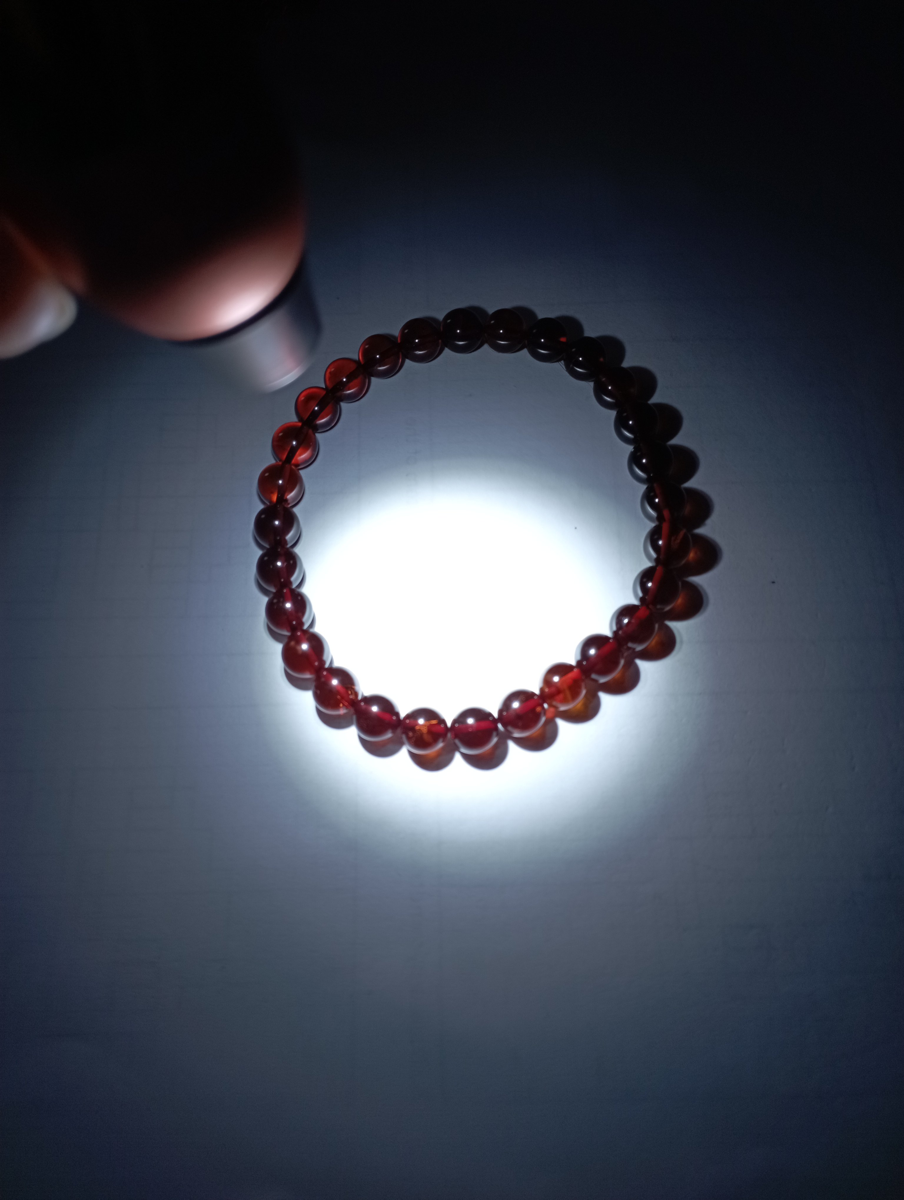 Lovely red colour, very clean and clear with minimal inclusions, measures 7mm per bead, fits up to 20cm wrists.
