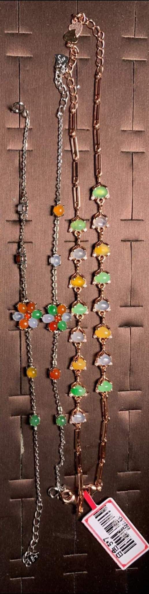 How cute are the two colourful jadeite foxes on the right and the elegant colourful flowers on the right?