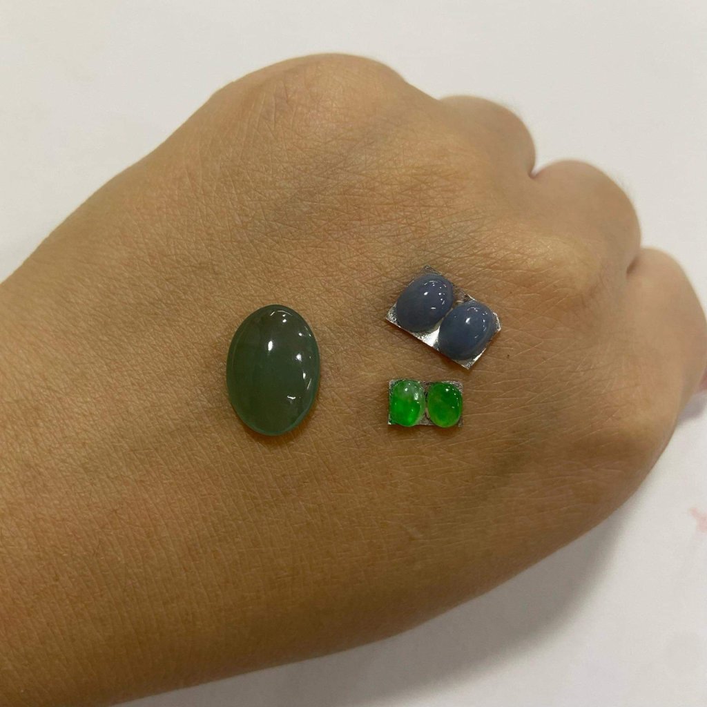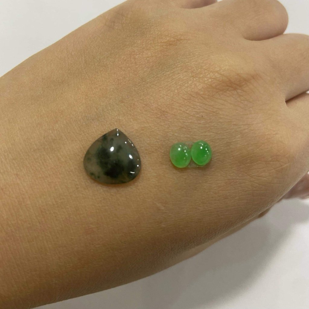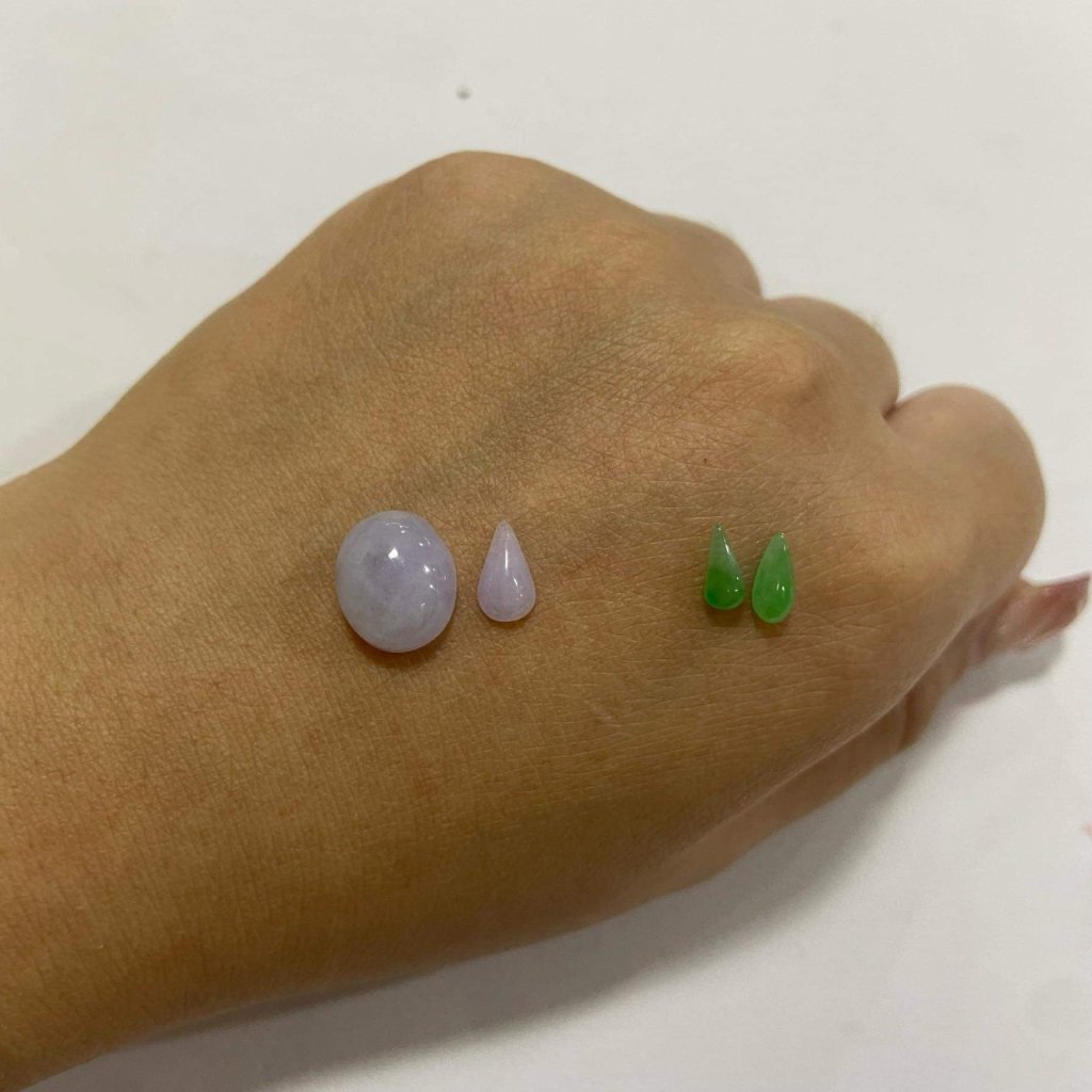 Pictured are good quality jadeite stones that you can choose to make into earrings, rings or pendents.