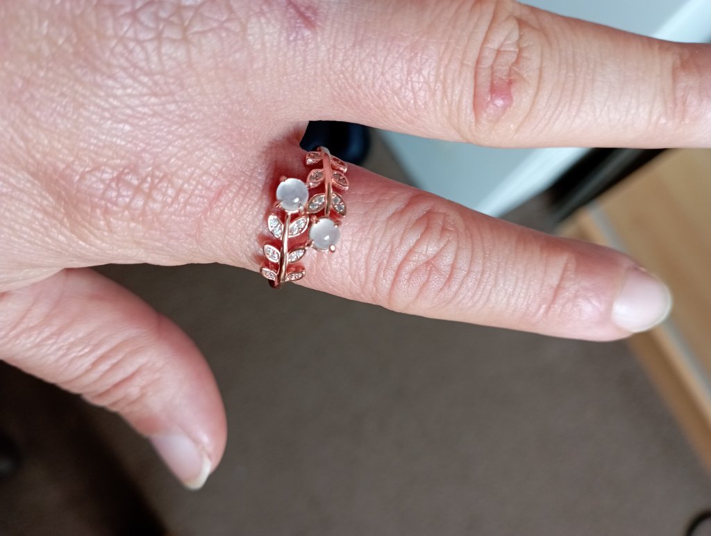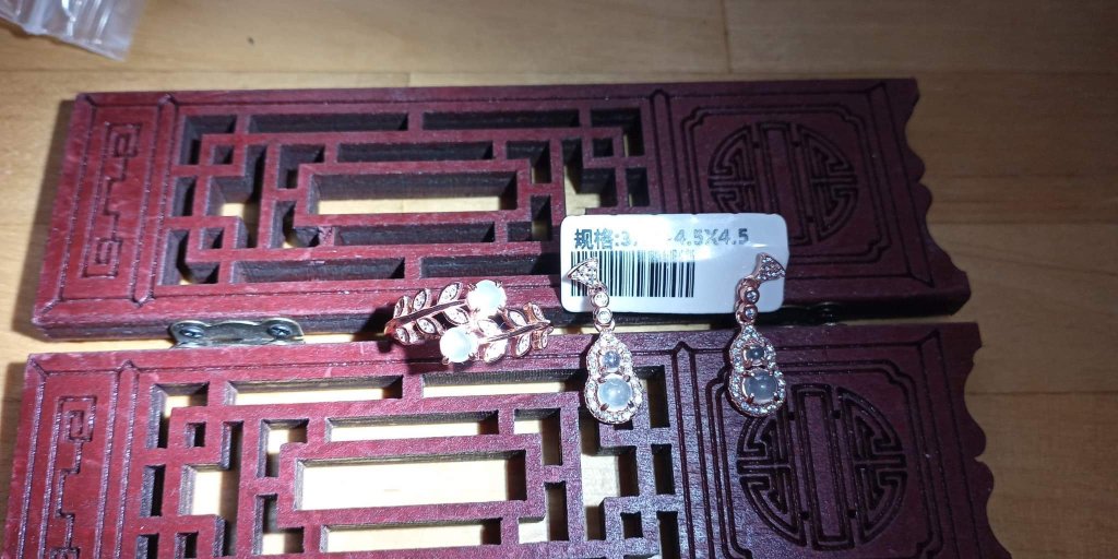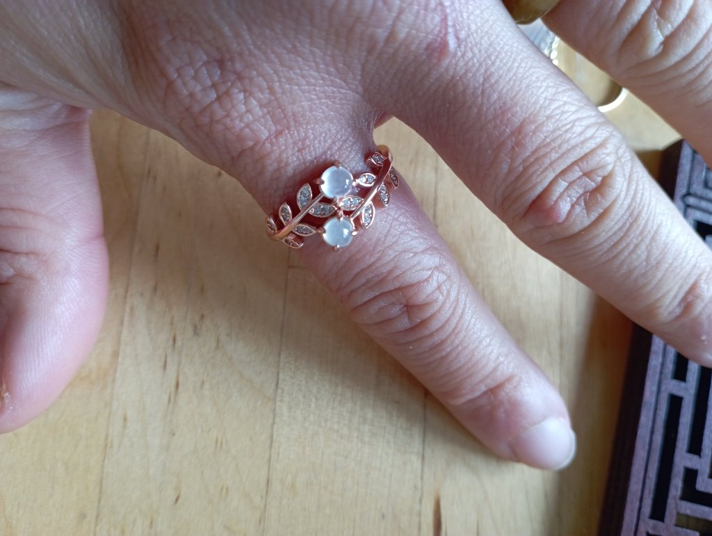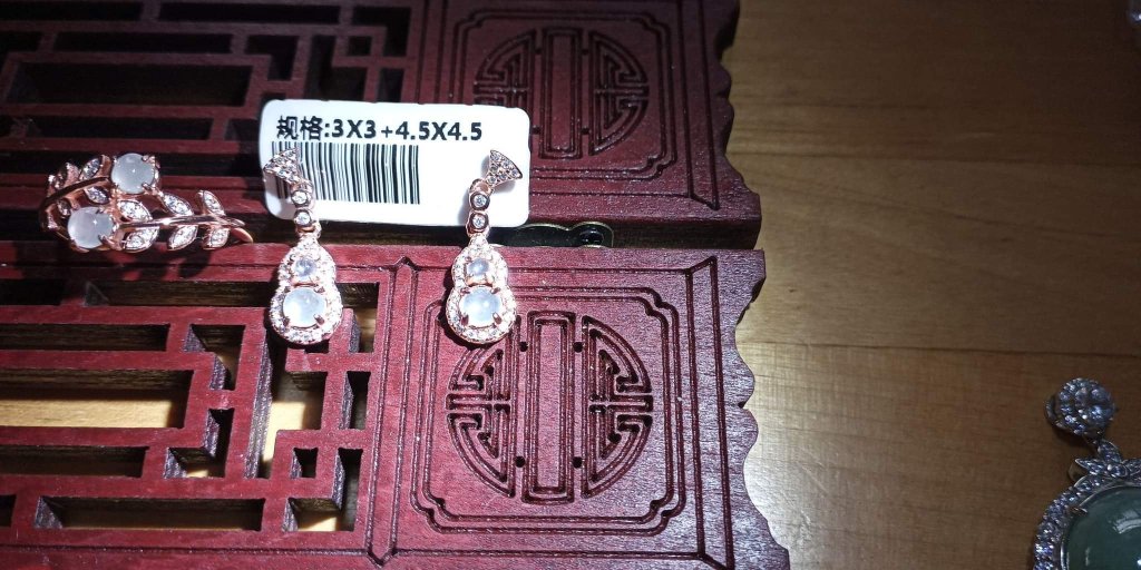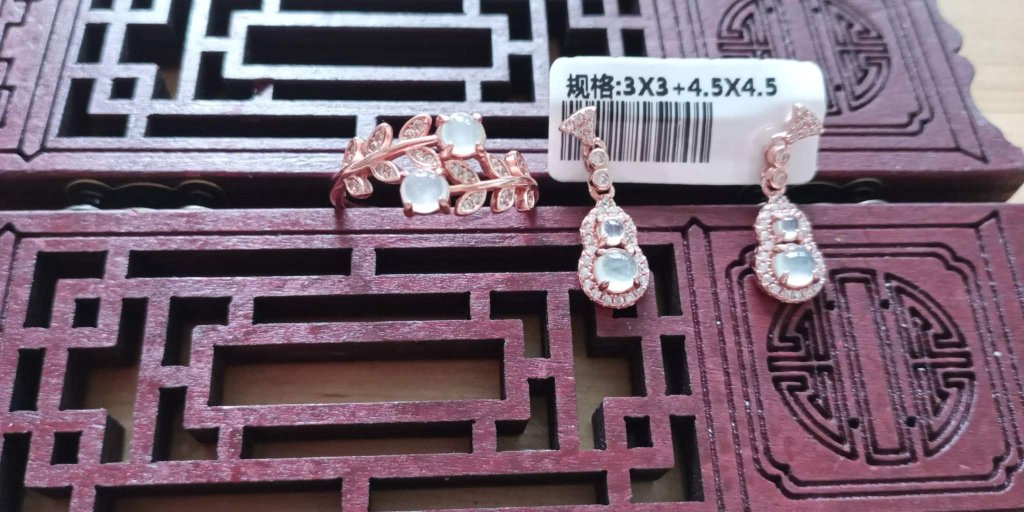 Beautiful translucent jadeite stone set in sterling silver, plated with rose gold. The ring is adjustable with two beautiful stones set on leaves while the earrings are set to look like gourd which consists of smaller round top and bigger bottom giving it a gourd like shape. The ancients believed this kind of shape have the effect of dispelling and driving away bad spirits. Therefore, the family must hang the gourd shaped jewel in the house to be safe, and to bring good fortune. £68 for the set