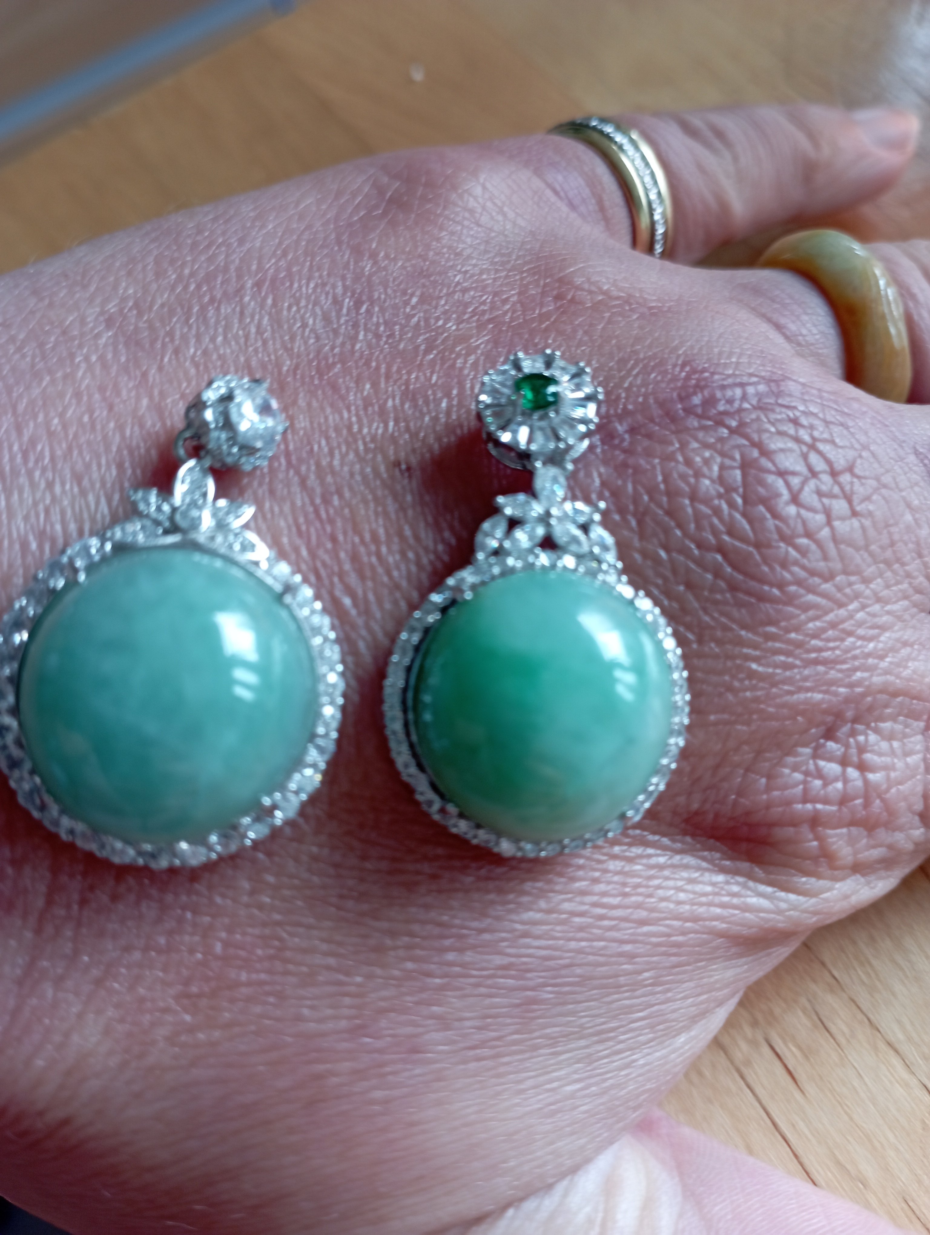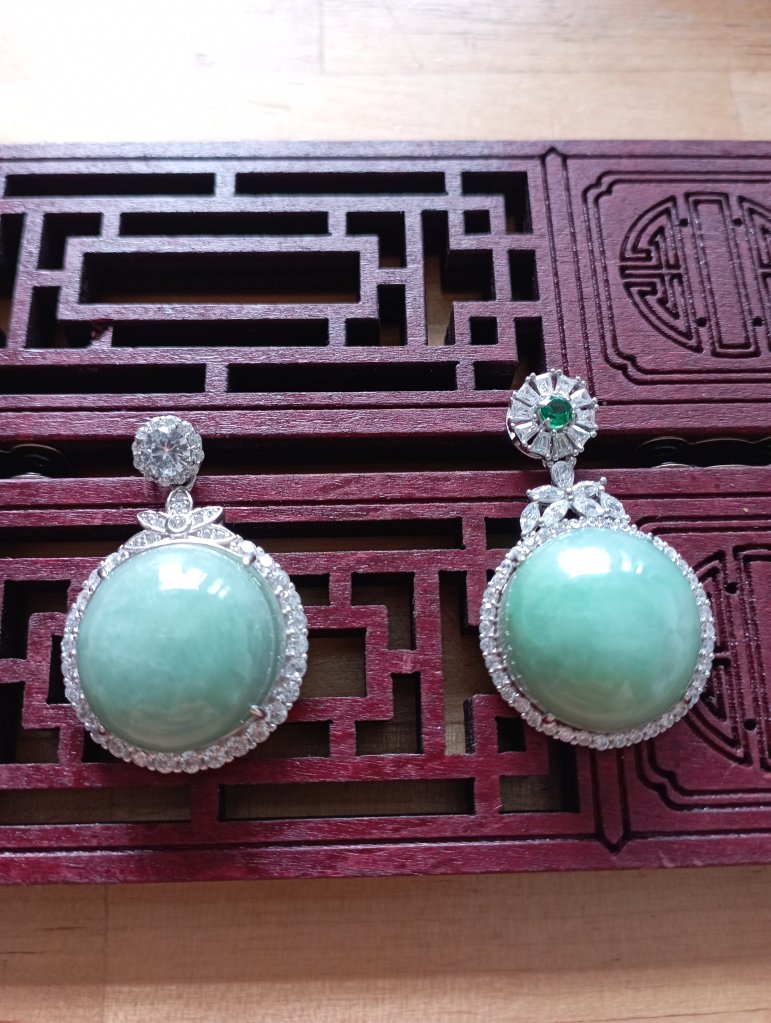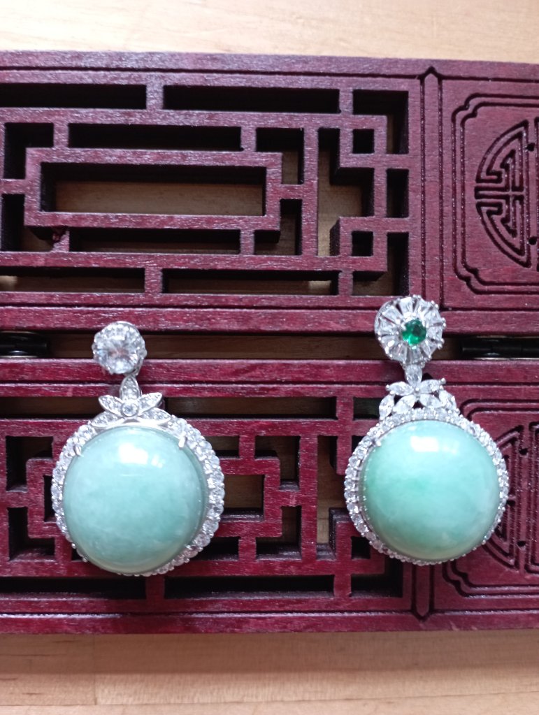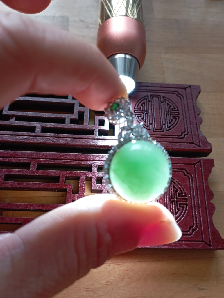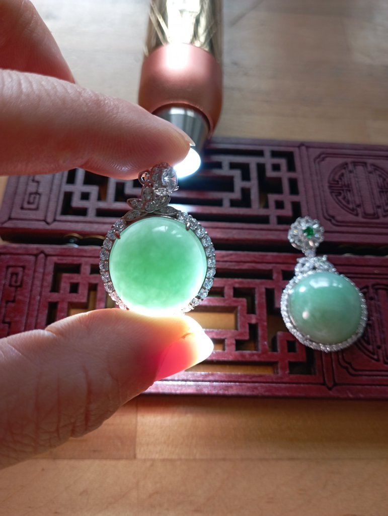 Lovely large light green jadeite stone measures approx 16mm set in sterling silver, comes with certificate of authenticity and plated silver chain. £68