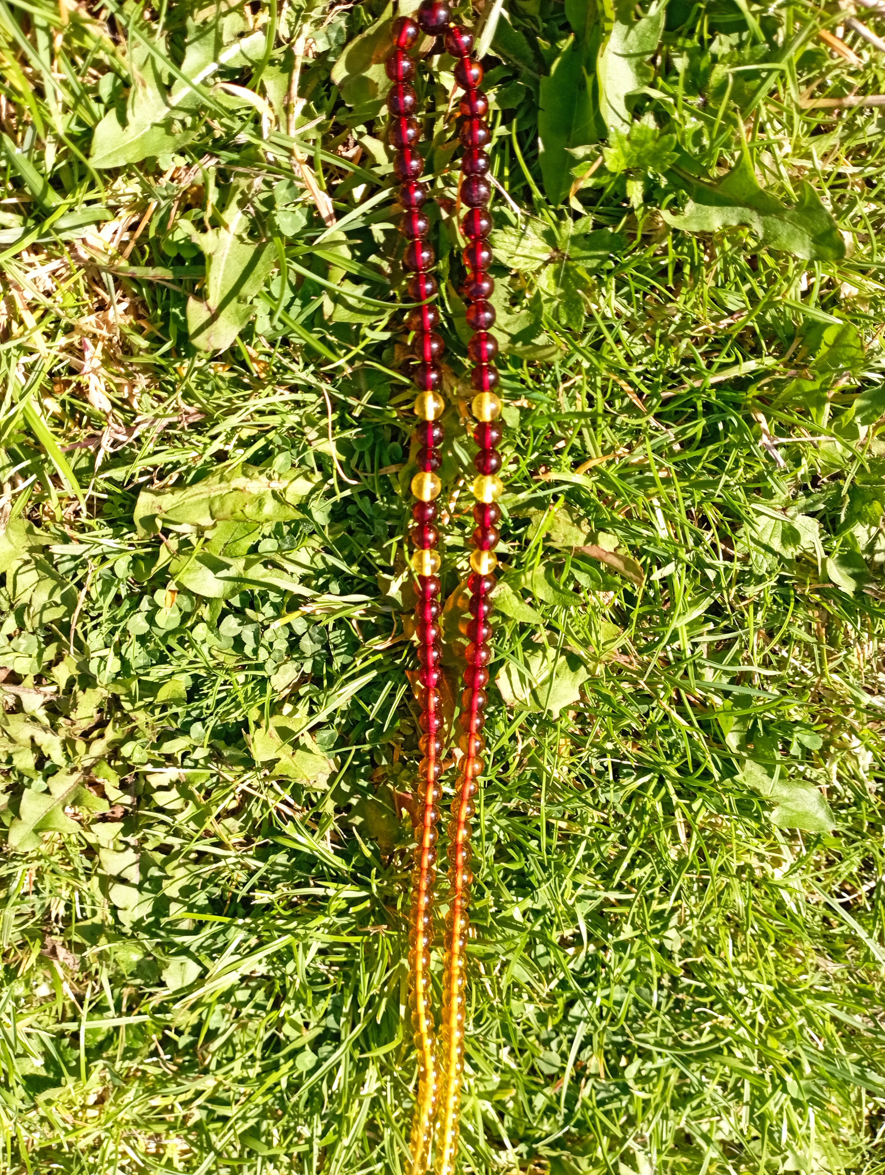 Measures 23 inches, each bead is approx 5mm. These are genuine and natural amber and blood amber. £48