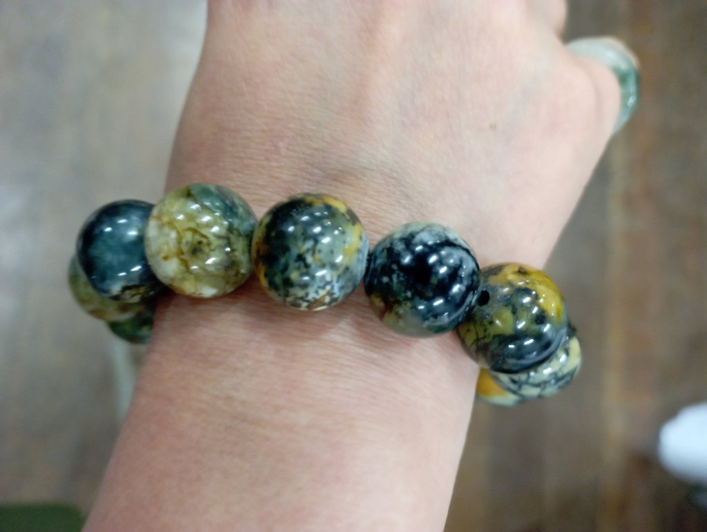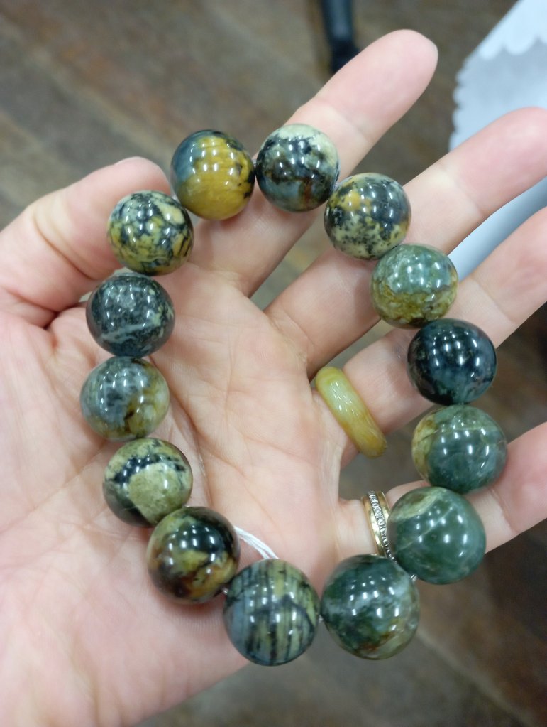 Stunning serpentine beaded bracelet about 14mm per bead. The colours are amazing and very unusual. Comes with a certificate of authenticity. £129