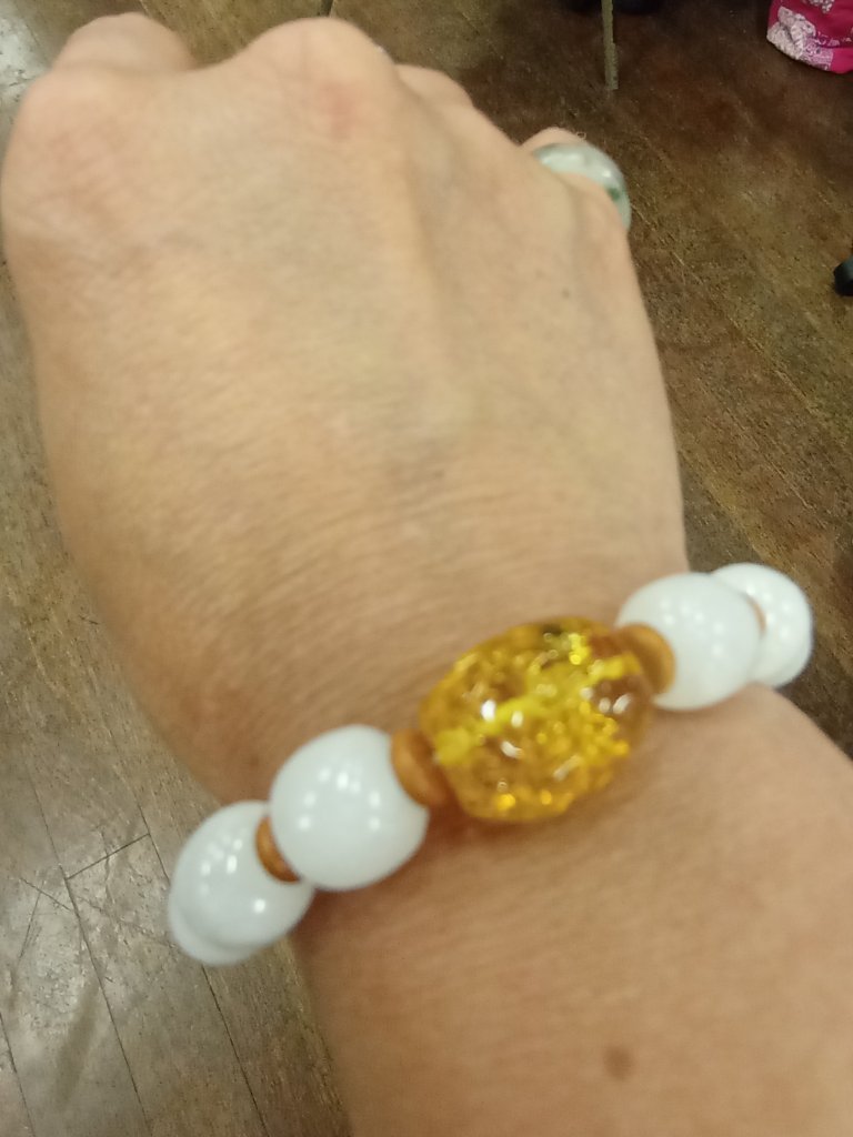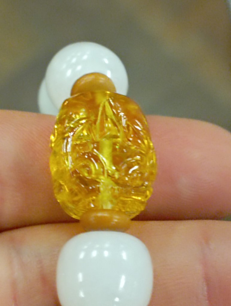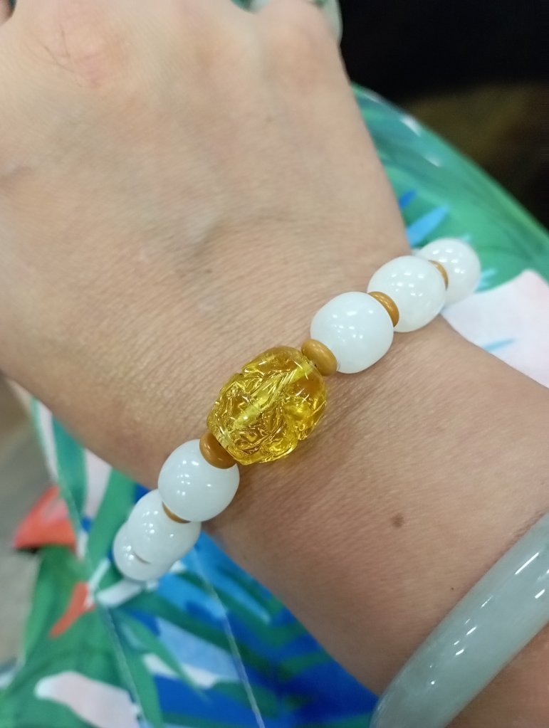 Certified hetian nephrite in white with an adorable pixiu in amber. £48