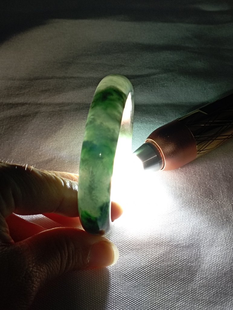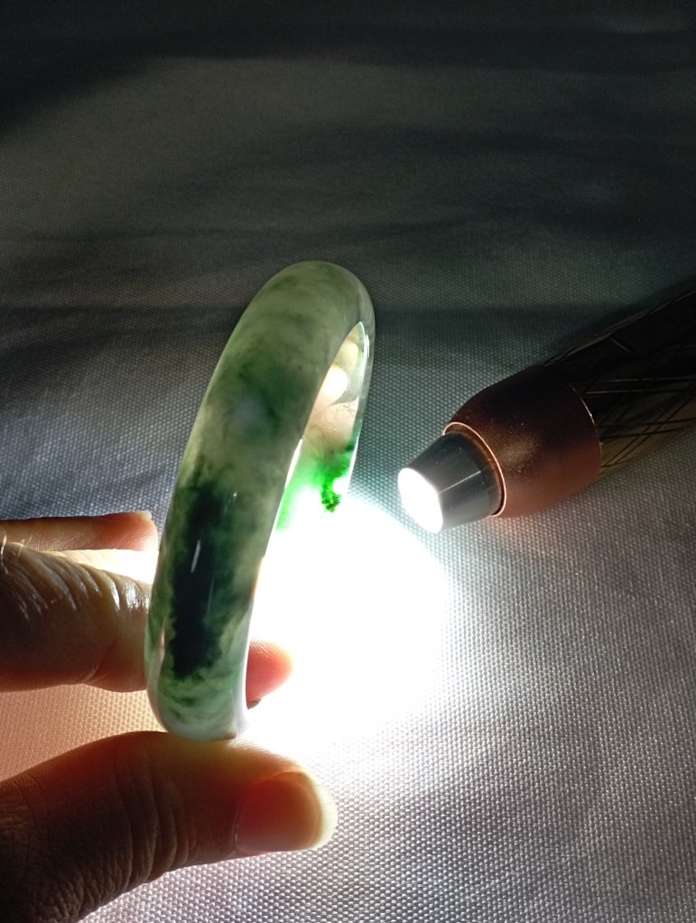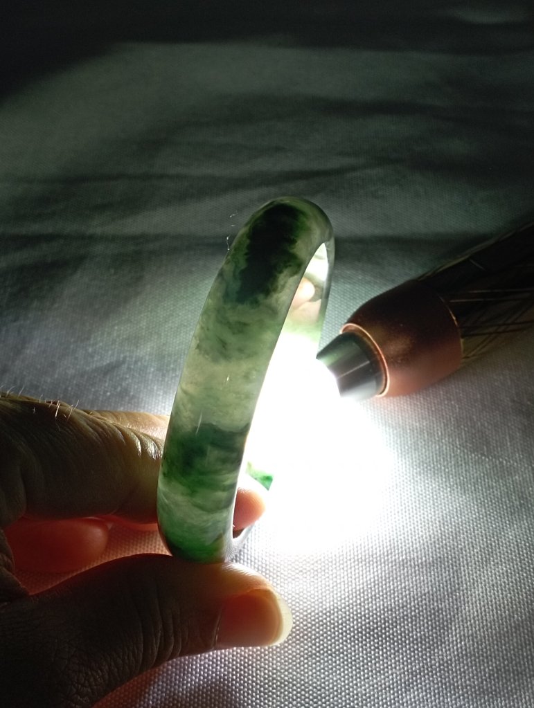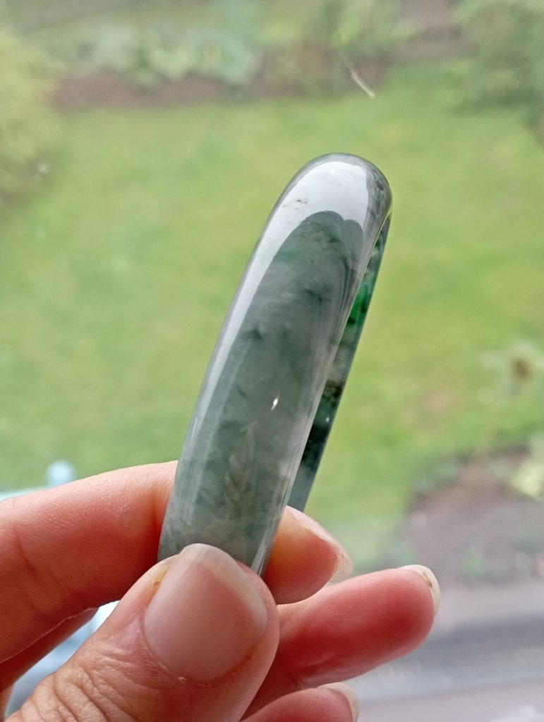 Stunning green bangle, translucent and full of blooms that look alive. Comes with a certificate of authenticity.