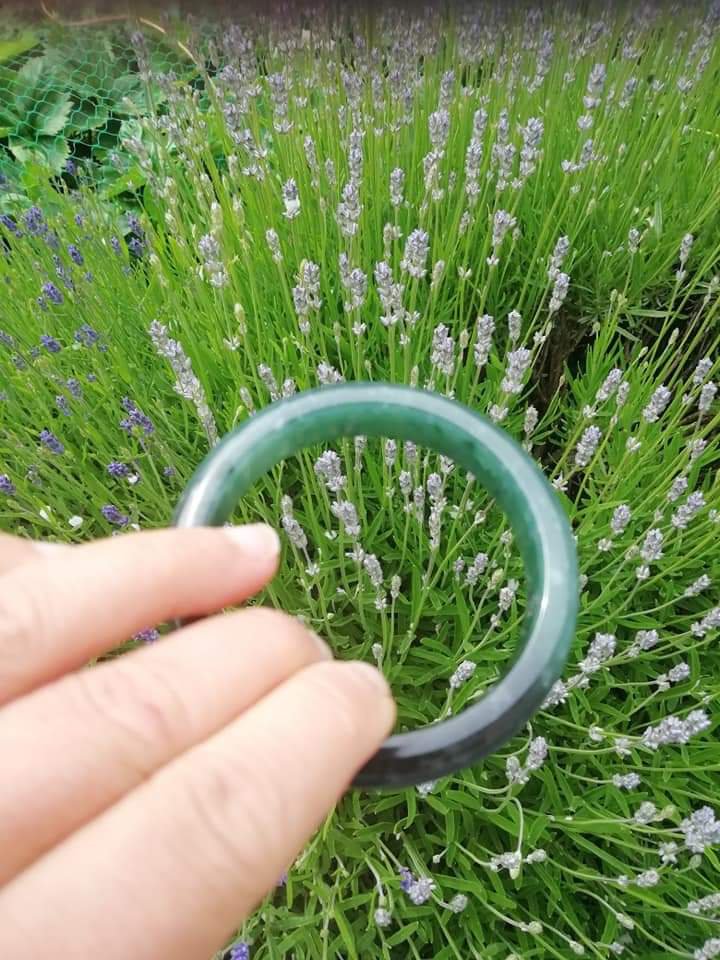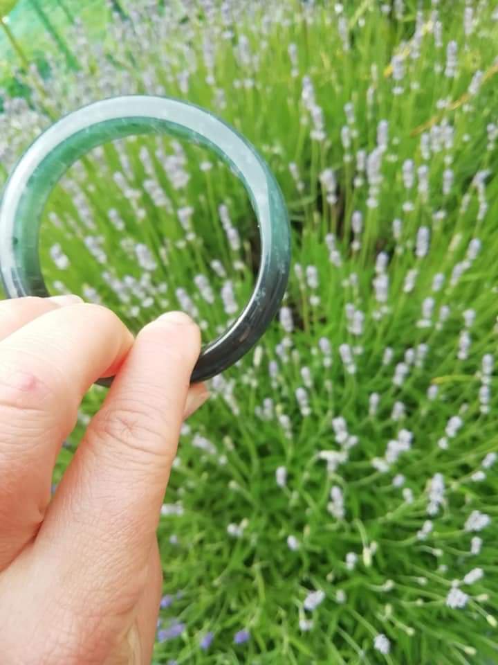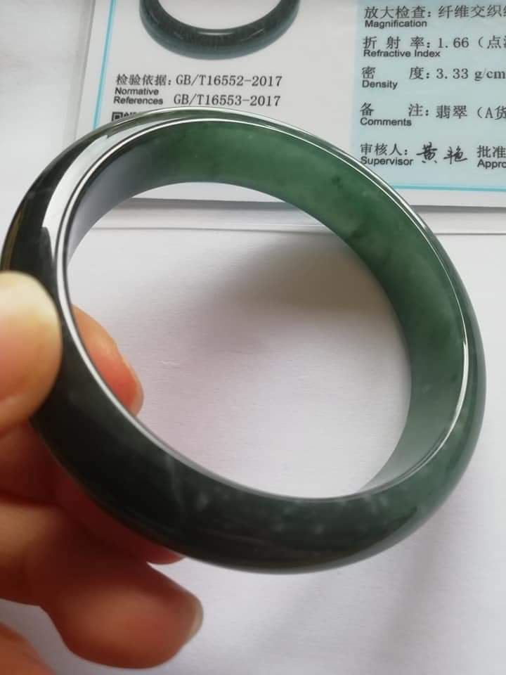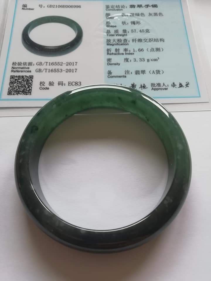 Gorgeous translucent Guatemala Jadeite bangle in a smoky grey blue green colour measures 56.9 x 13.6 x 7.7mm