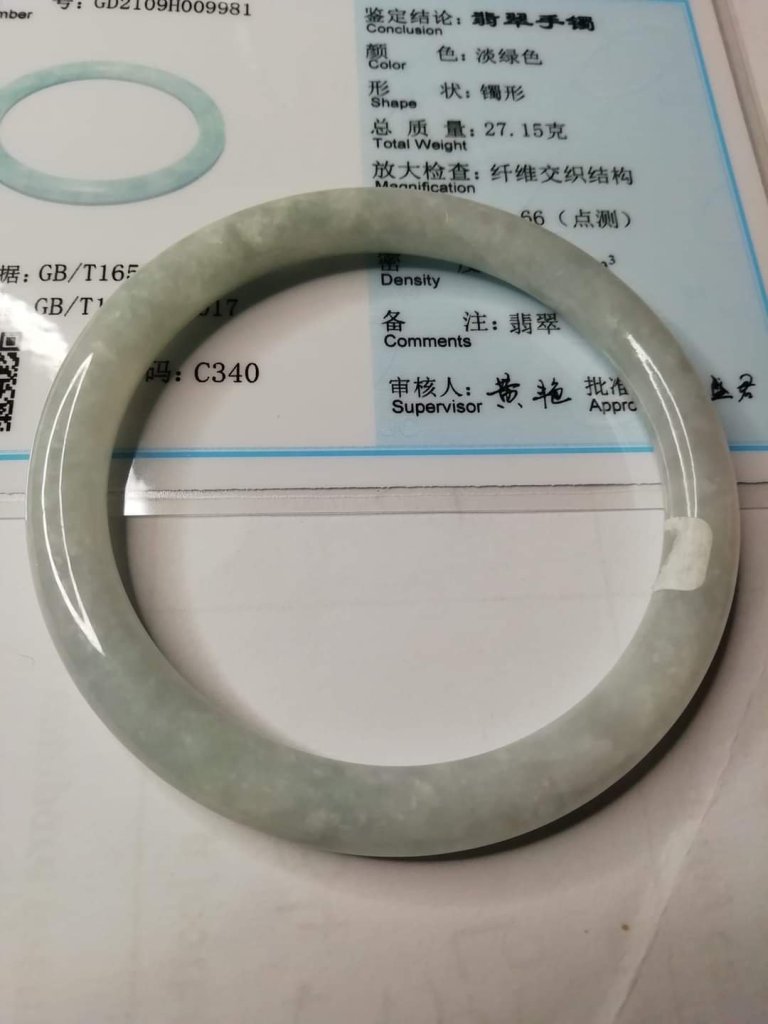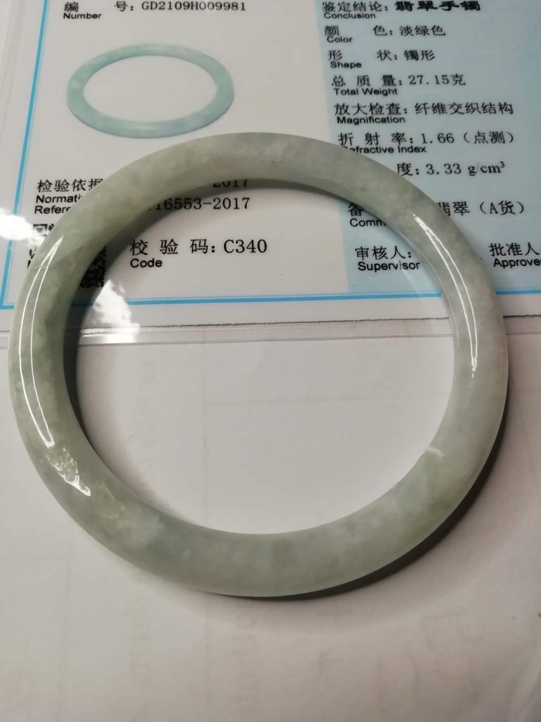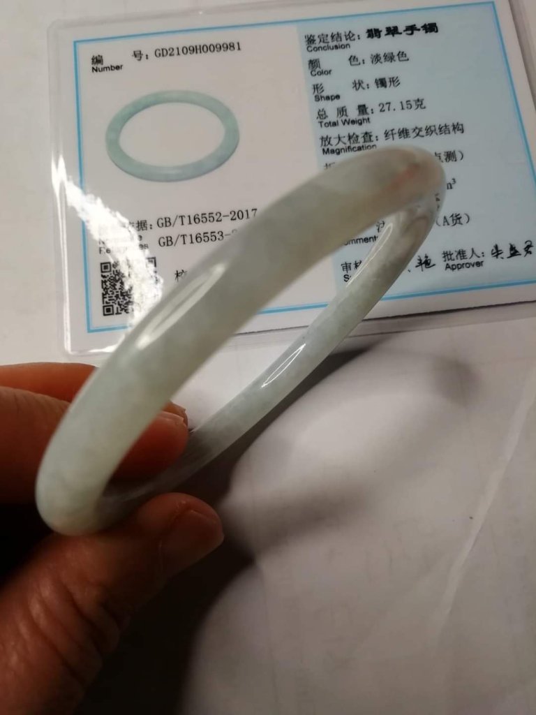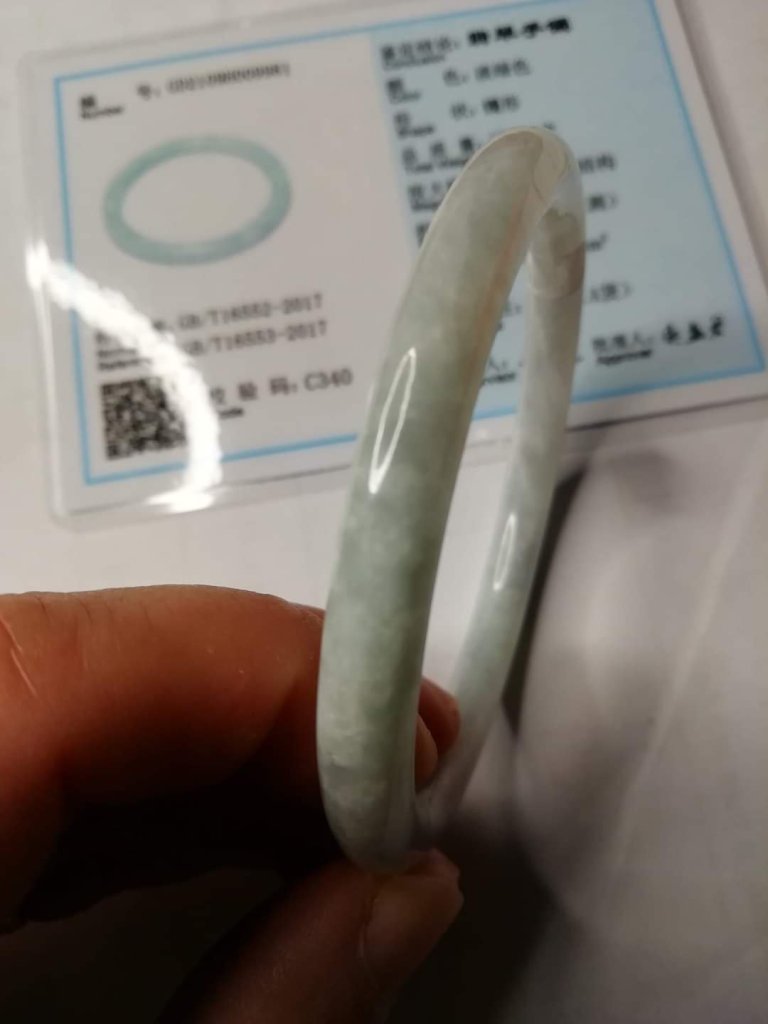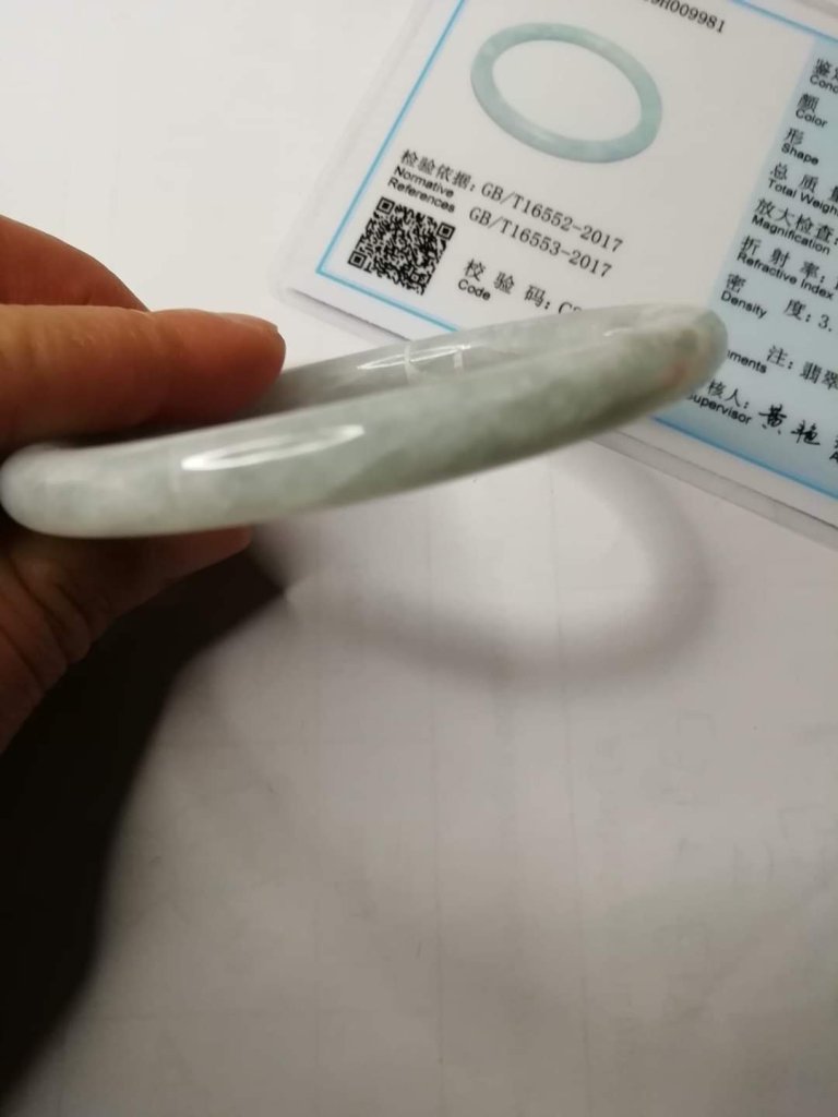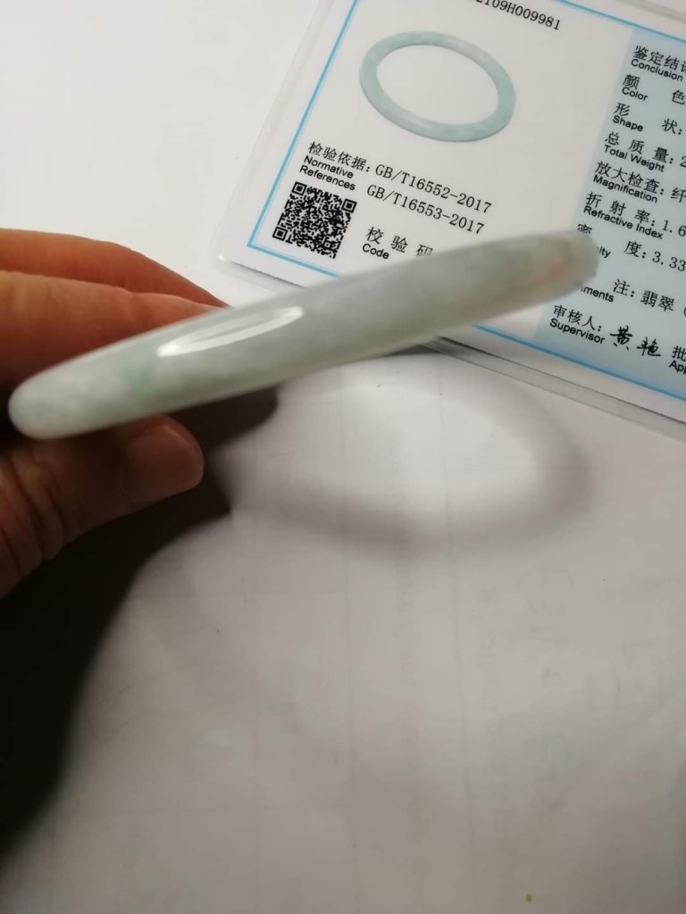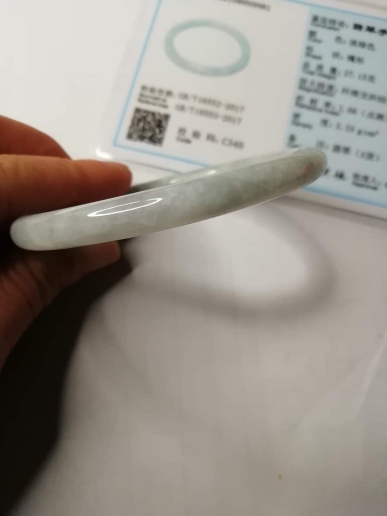 Lovely round slim bangle slightly bluish, measures 56.1 x 6.7 x 7.5mm, no. fits 58mm, comes with certificate of authenticity