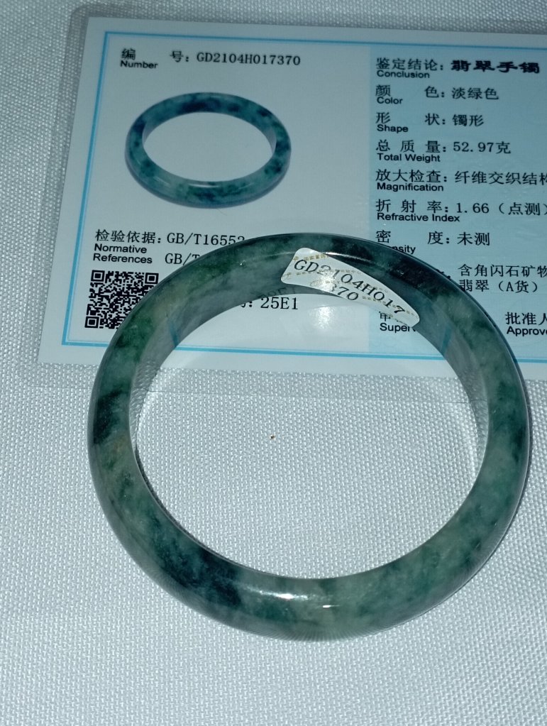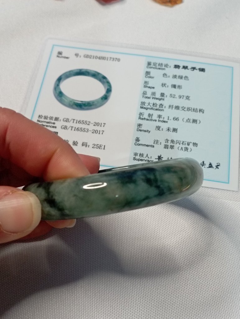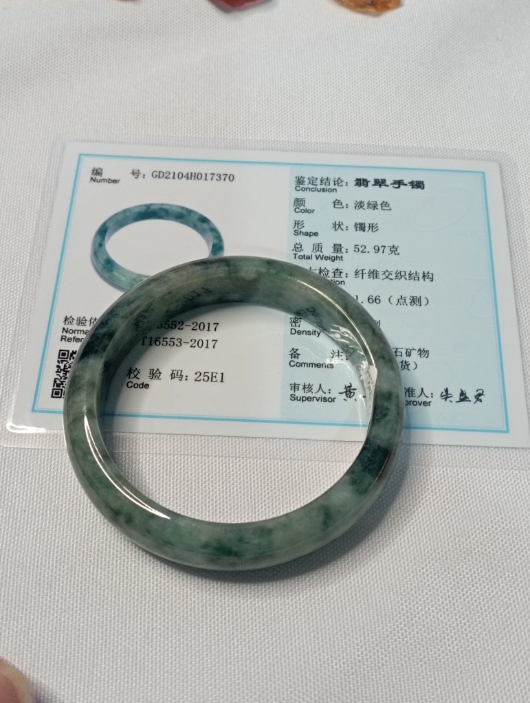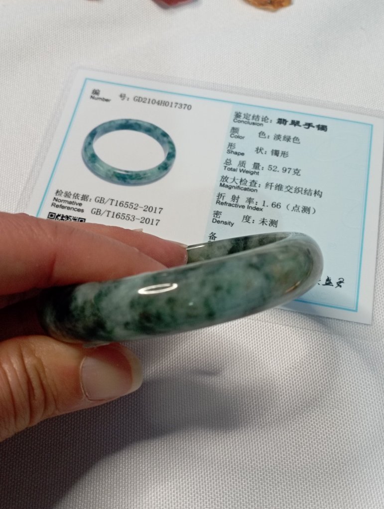 Premium icy 飘花 gorgeous green bangle with lovely blooms, 56.2 x 13.5 x 8.1mm, comes with a certificate of authenticity. £185