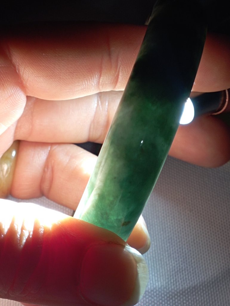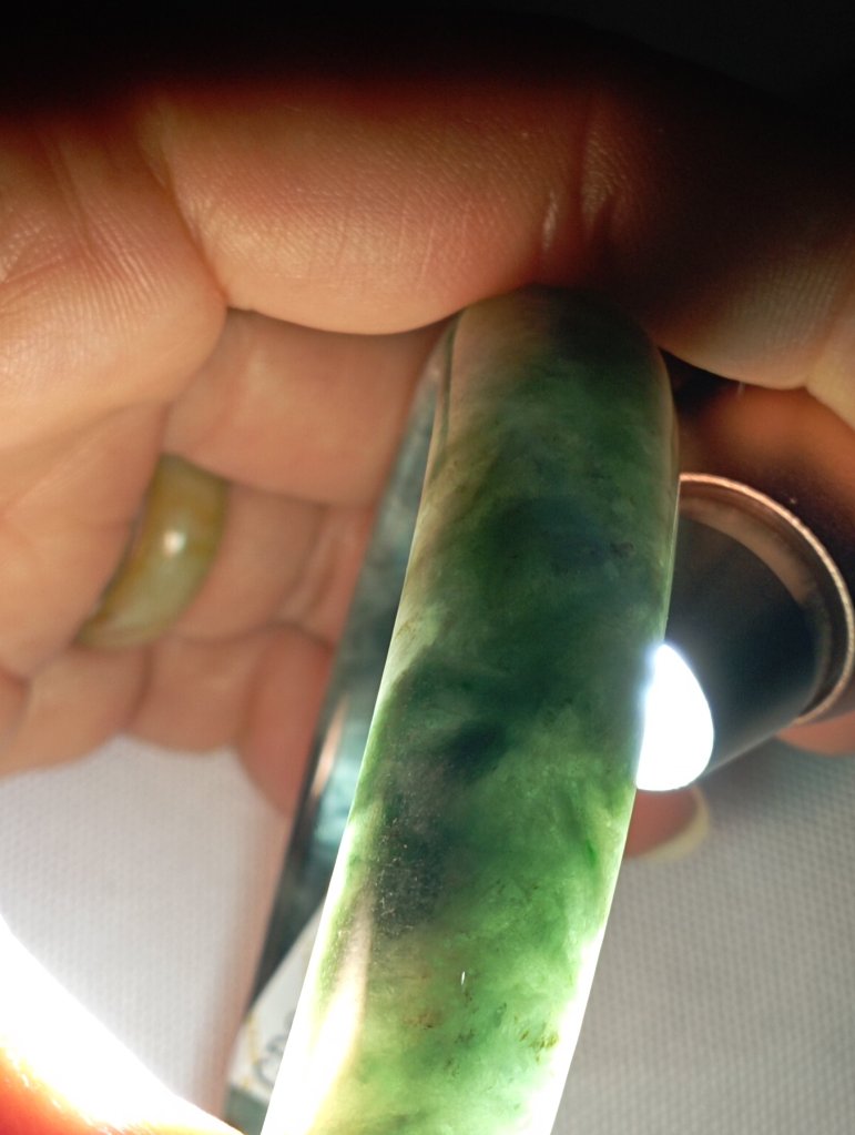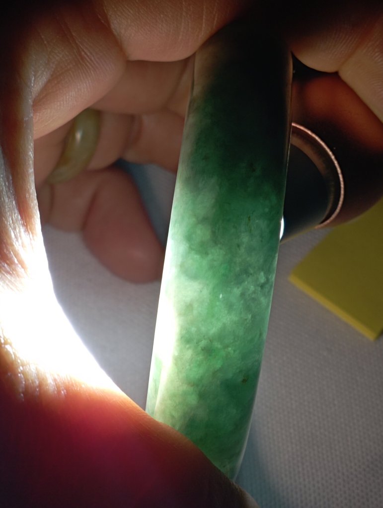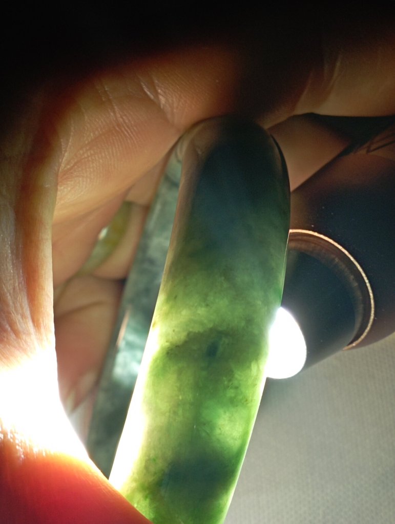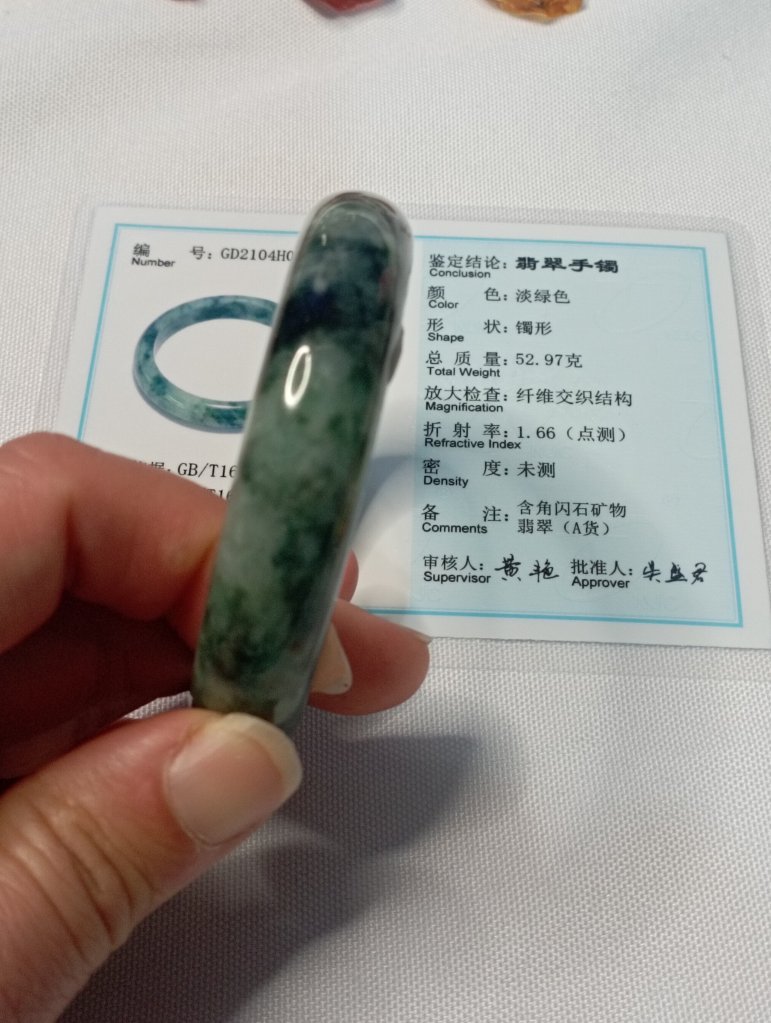 Premium icy 飘花 gorgeous green bangle with lovely blooms, 56.2 x 13.5 x 8.1mm, comes with a certificate of authenticity. £185