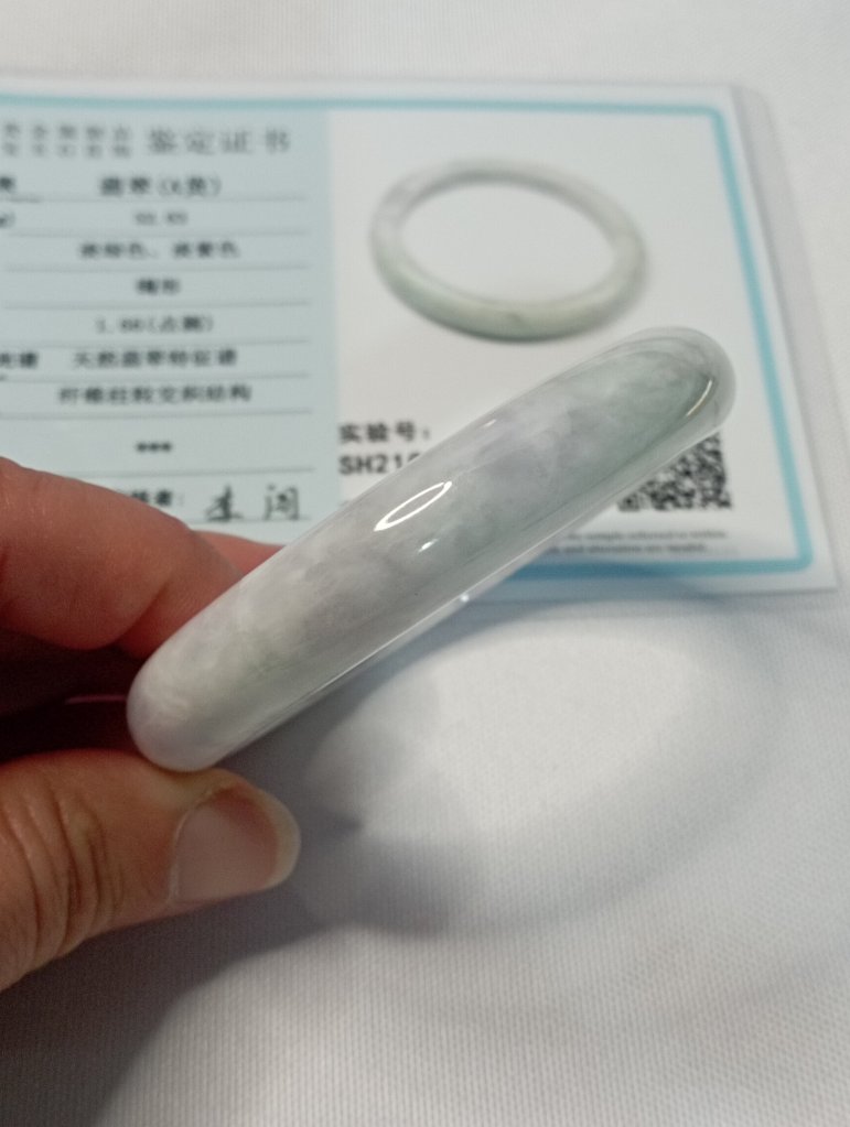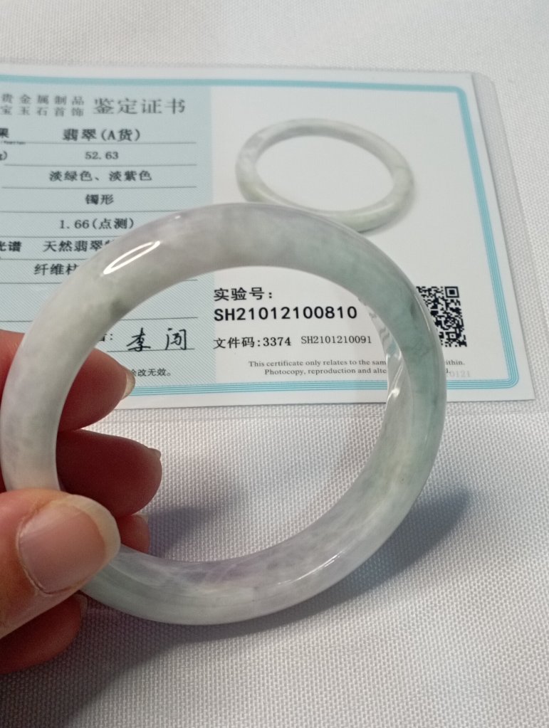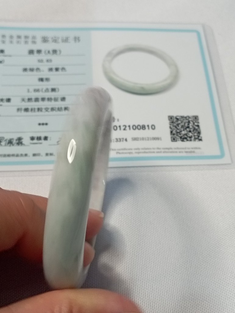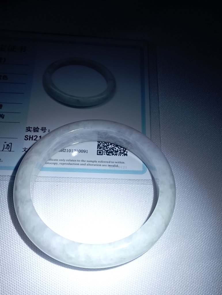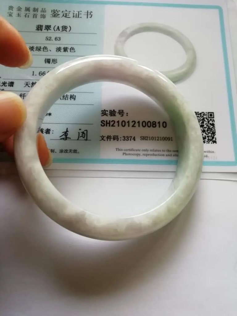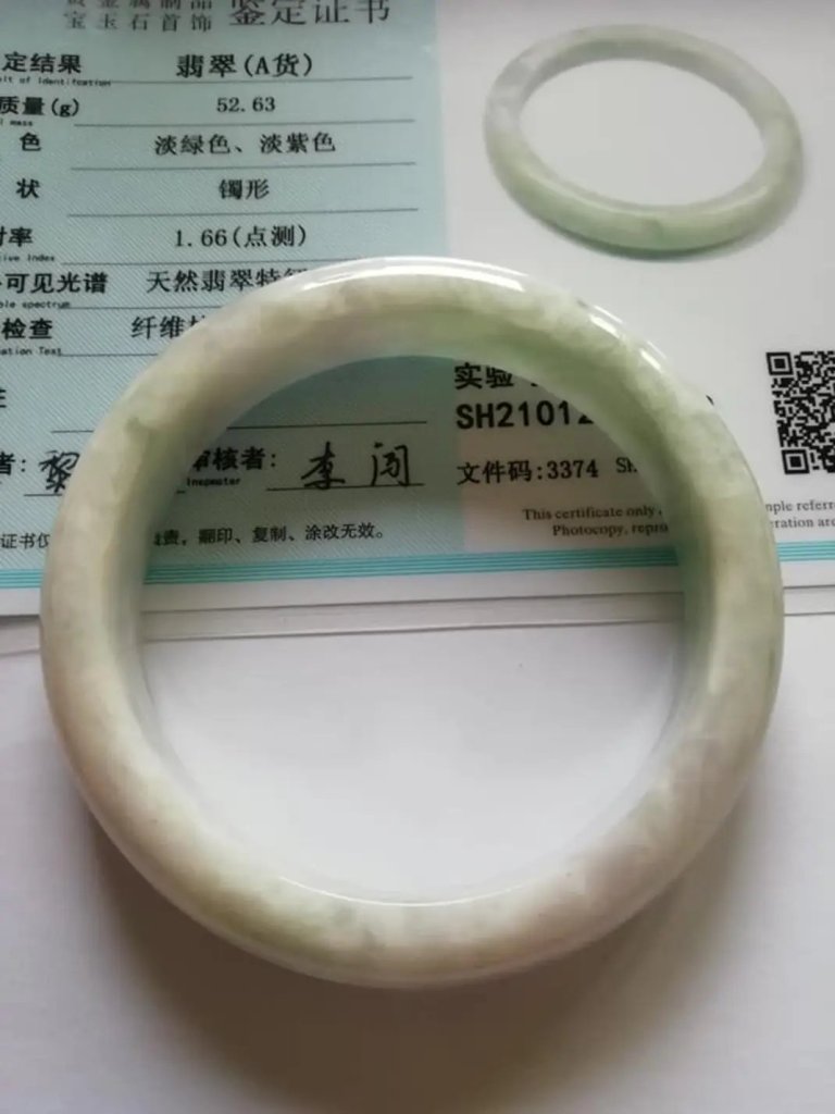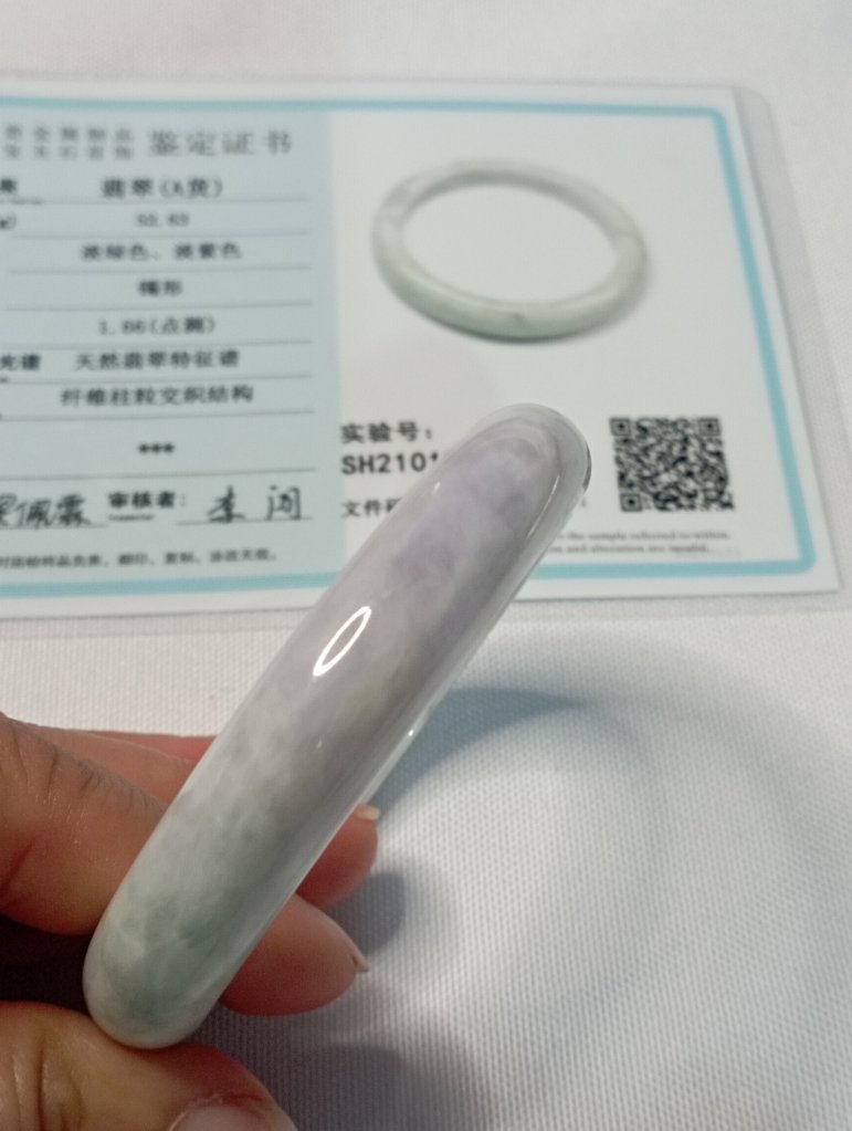 Jadeite bangle measures 56 x 12.1 x 7.6mm, in a lovely green and purple, comes with certificate of authenticity. £60
