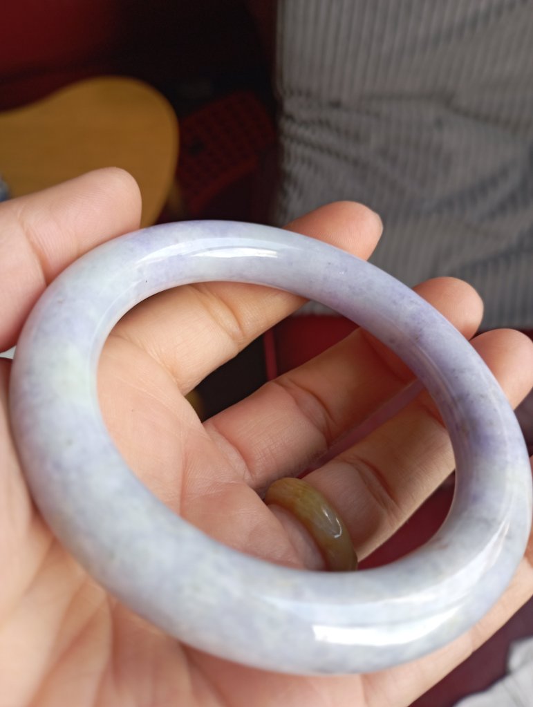 Gorgeous purple bangle with darker purple in places. Measures 55.7 x 9.5 x 9.8mm, fits up to 57mm due to its shape. Comes with a certificate of authenticity £599