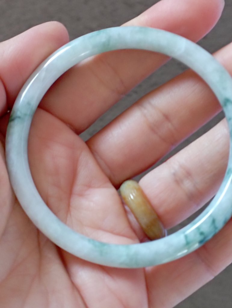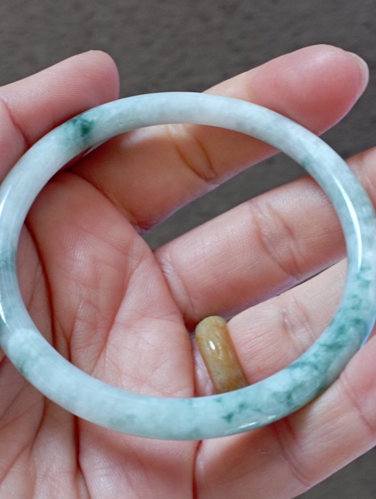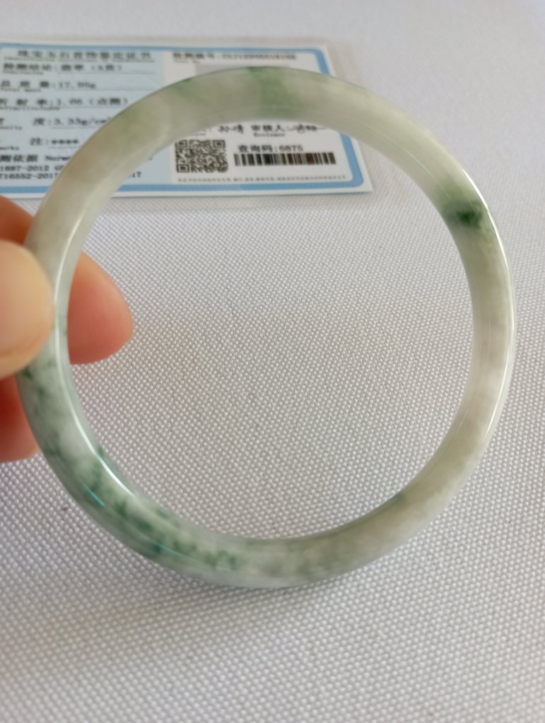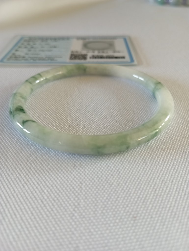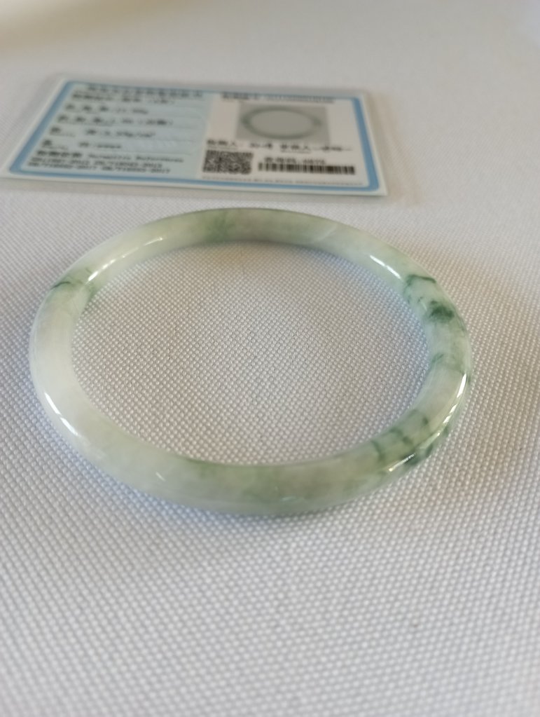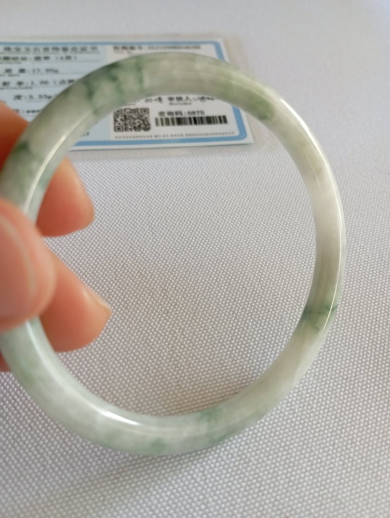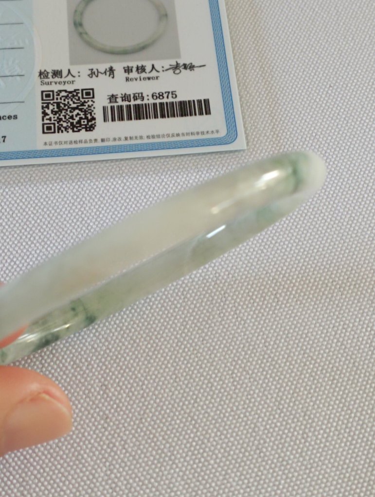Lovely slim white bangle with gorgeous green blooms measures 55.5 x 4.9 X 4.9mm, fits up to 57mm. Perfect to stack with other similar size and thickness. £69