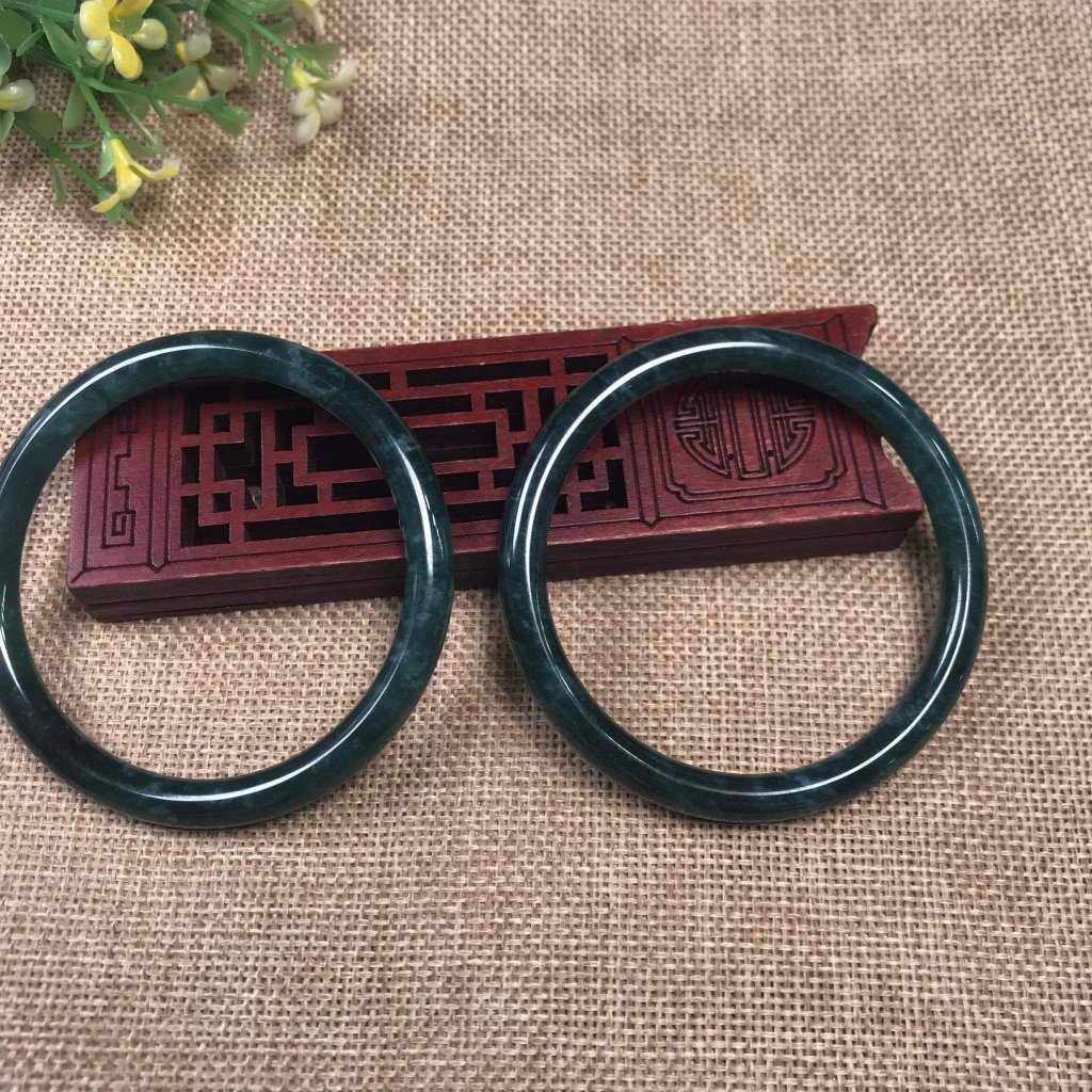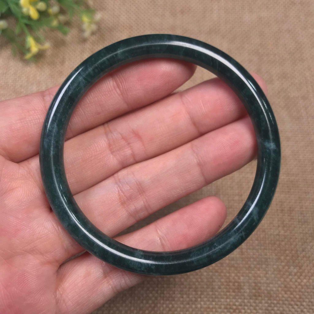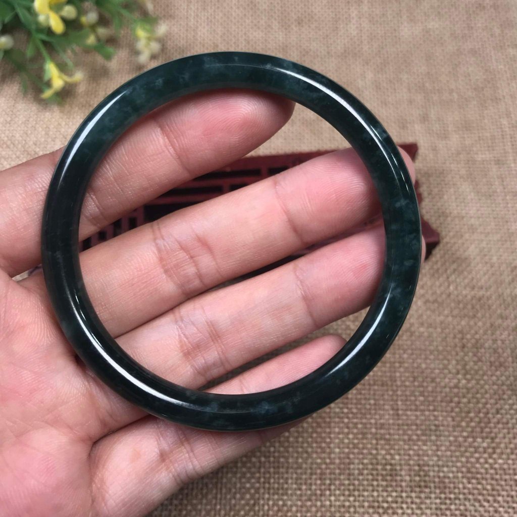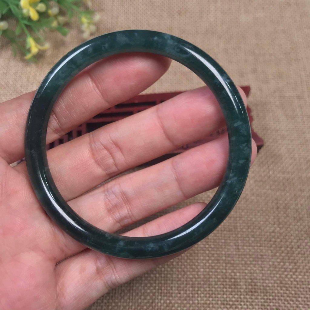 Bluish jadeite bangle measures 56mm fits up to 58mm. Look at how icy they are?