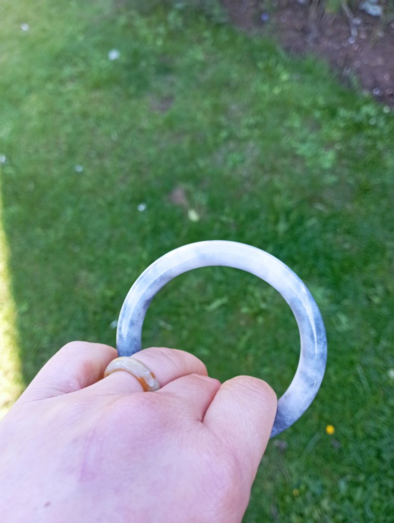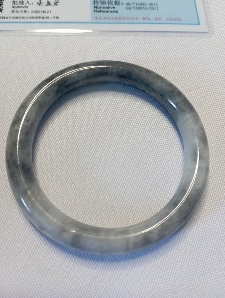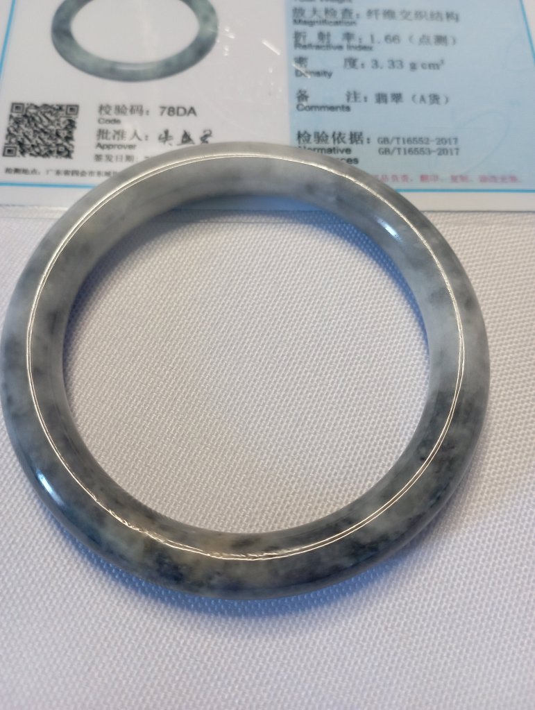 Lovely smoky grey colour, looks like a Chinese water painting. Because of the shape, it fits up to 57mm. Measures 55 x 7.9 X 7.9mm, comes with a certificate of authenticity. £69