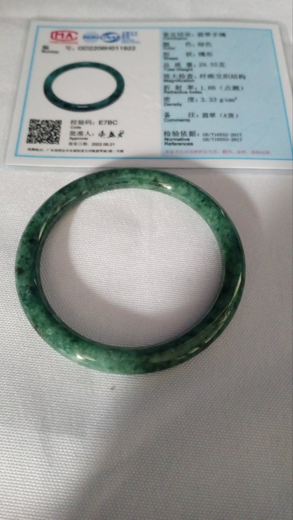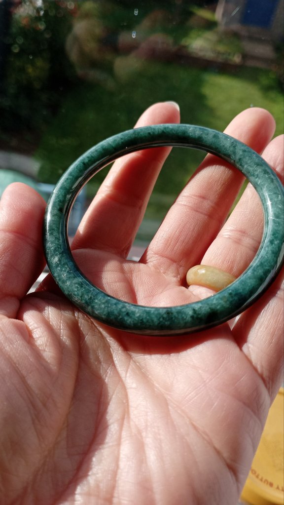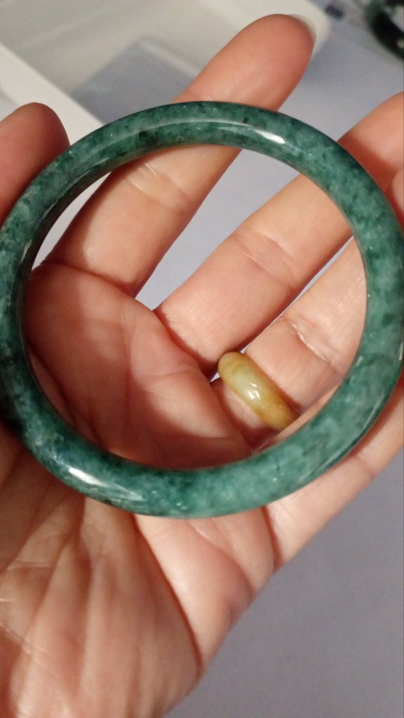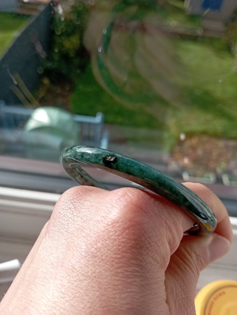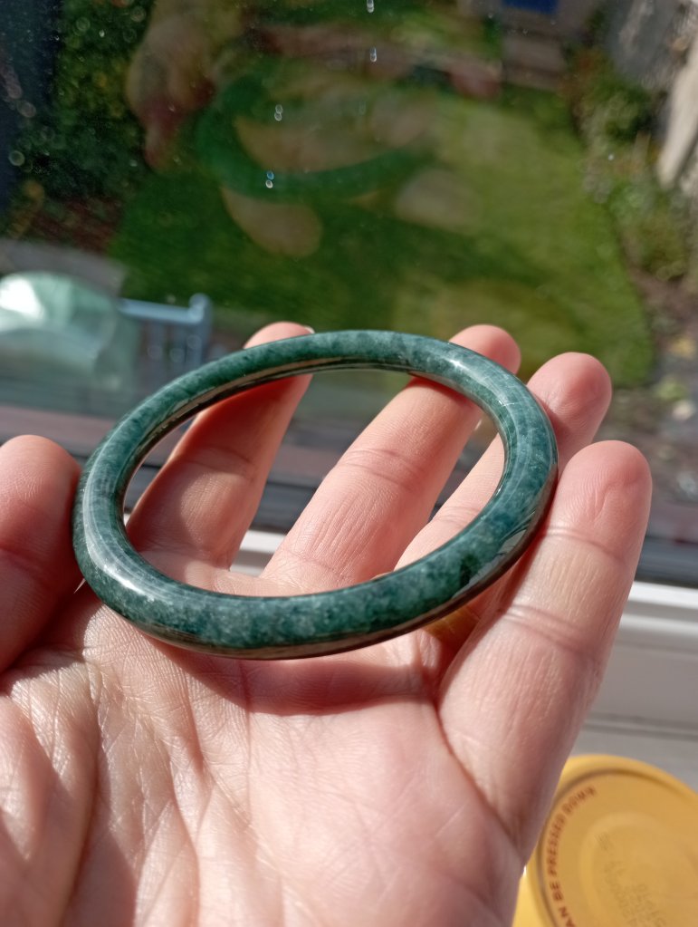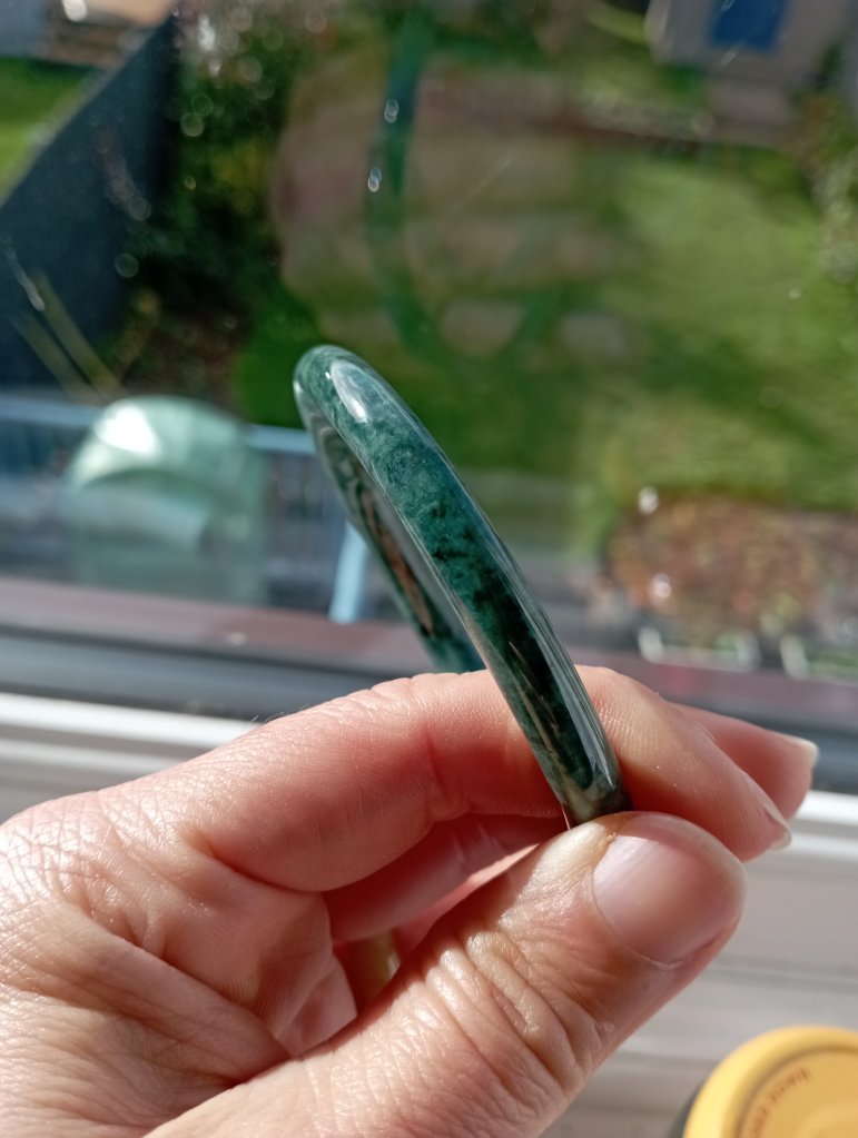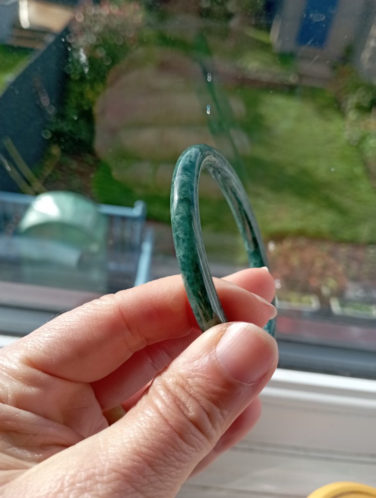 Lovely slim green bangle that fits up to 59mm due to its shape. Measures 57.4 x 7.1 X 7.6mm, comes with a certificate of authenticity £128