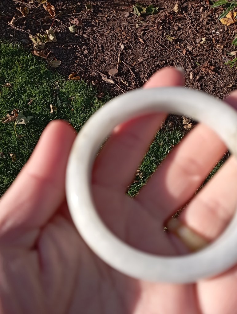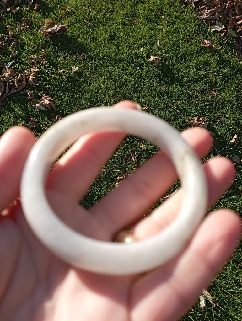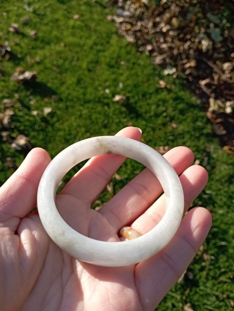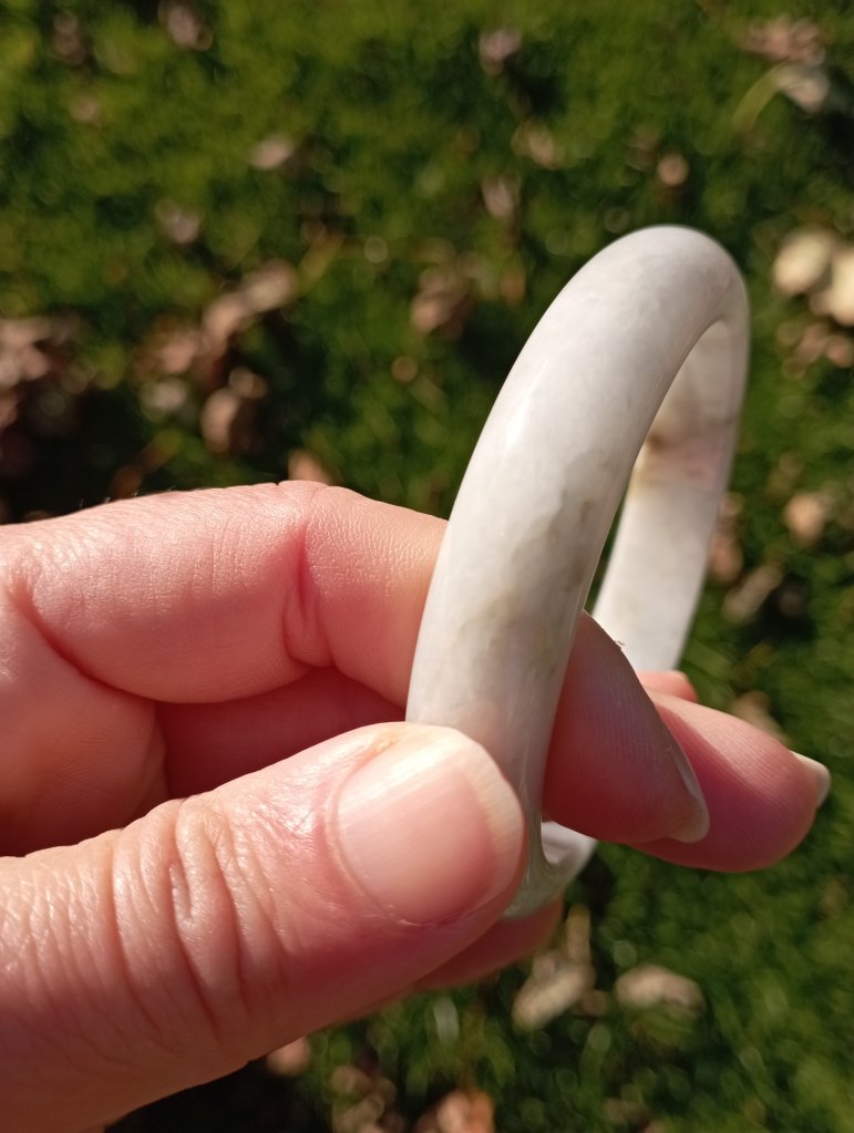 Light green with autumnal green patches. This is a fantastic price for the quality, measures 57 x 11.3 X 7.8mm, comes with a certificate of authenticity. £89