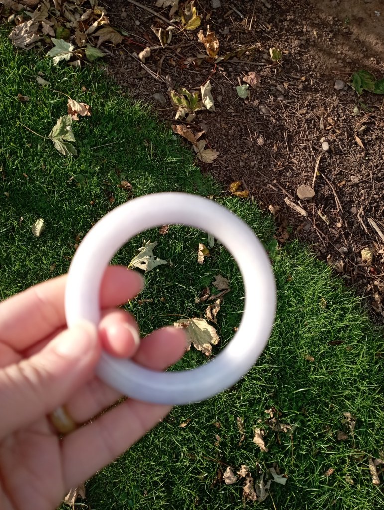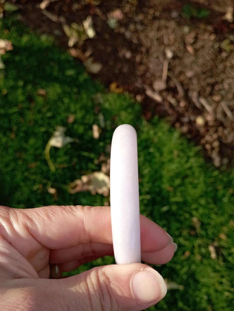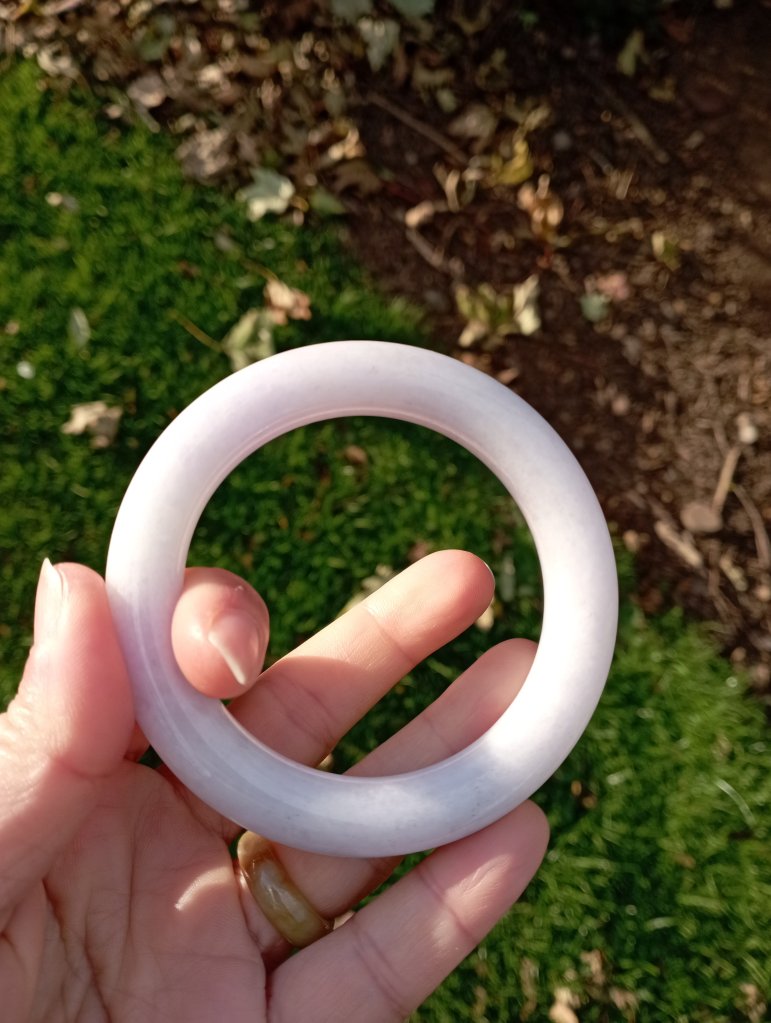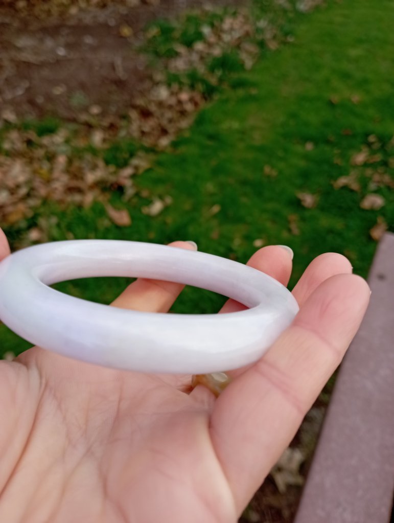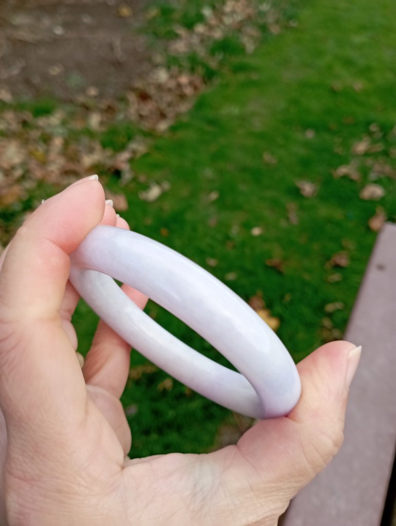 Very pretty light purple round bangle measures 56.7 X 10.9 X 10.7mm, fits up to 58mm, comes with a certificate of authenticity, £199