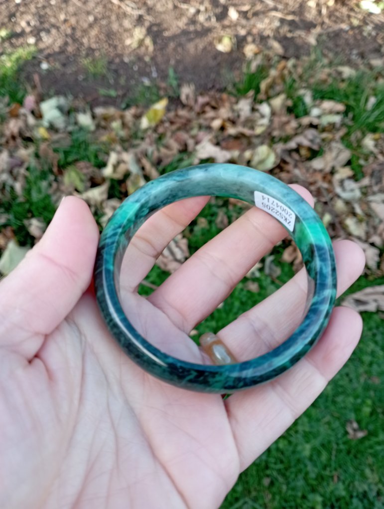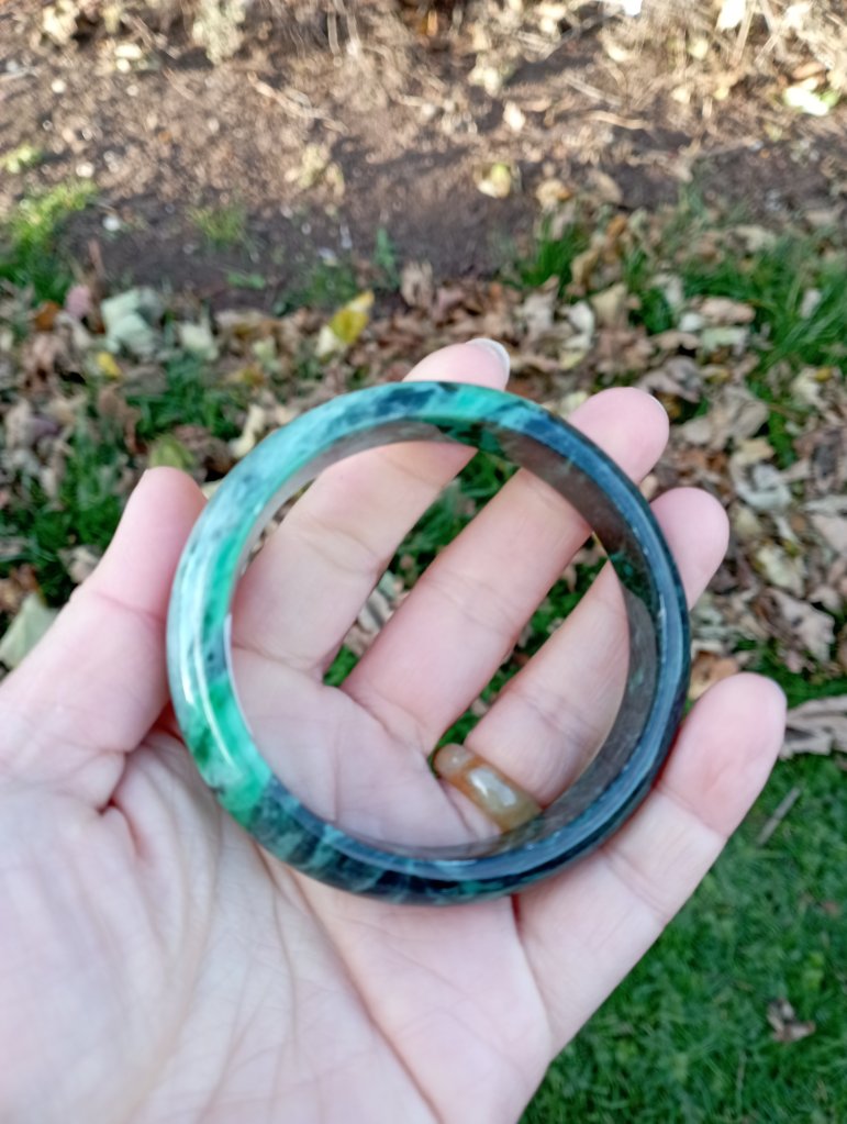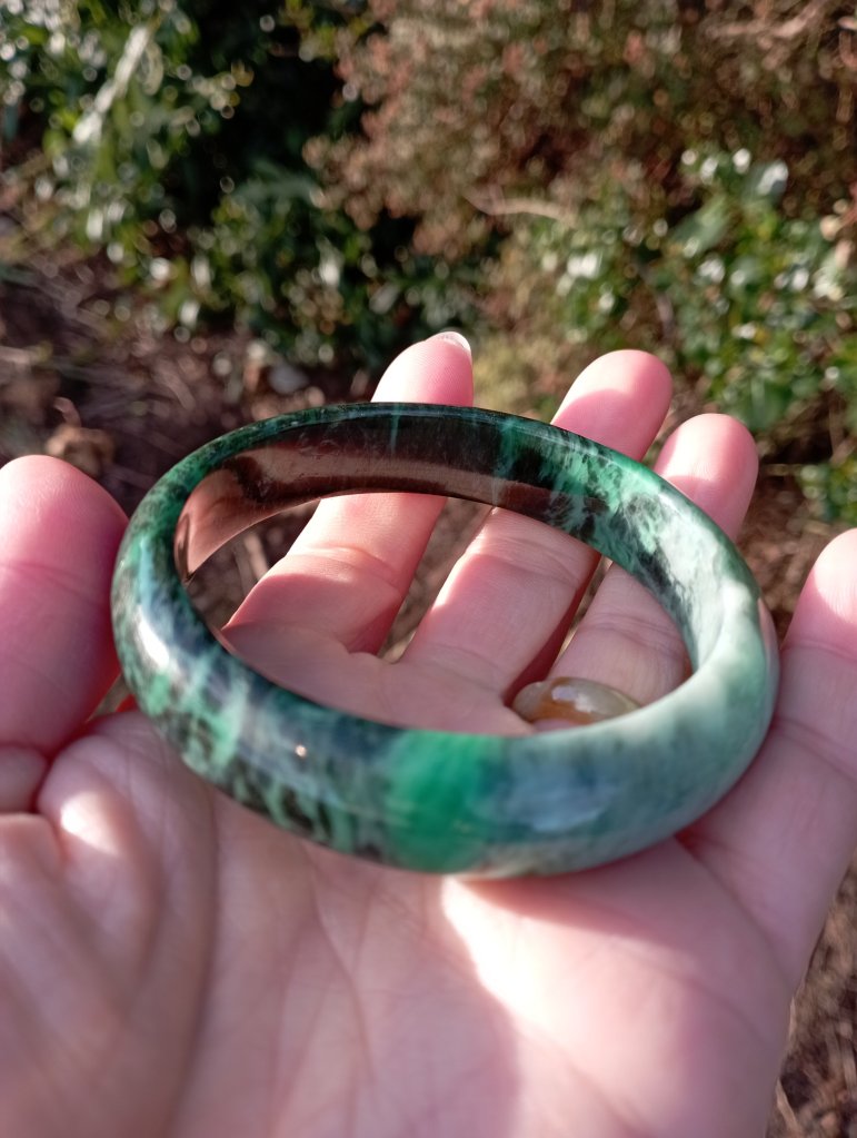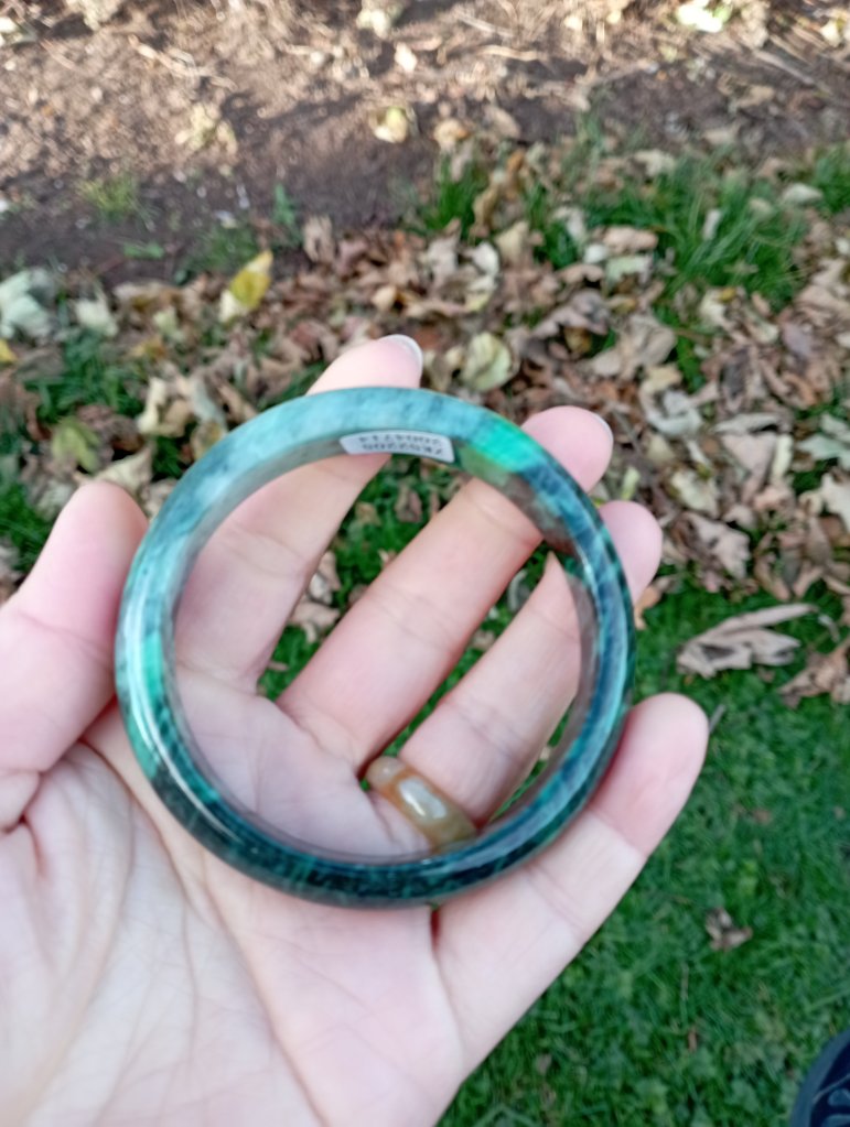 A very unusual bangle which is a vibrant green on one side and dark green on the other. Measures 58 x 12.6 X 7.7mm. It comes with a certificate of authenticity. £145