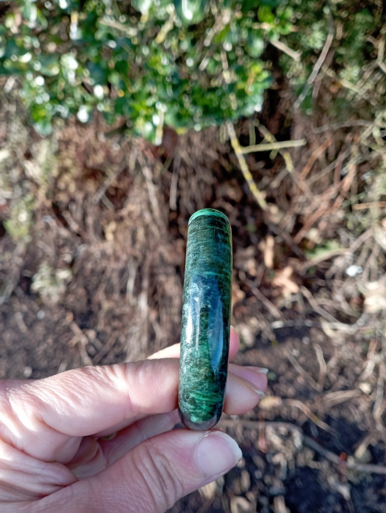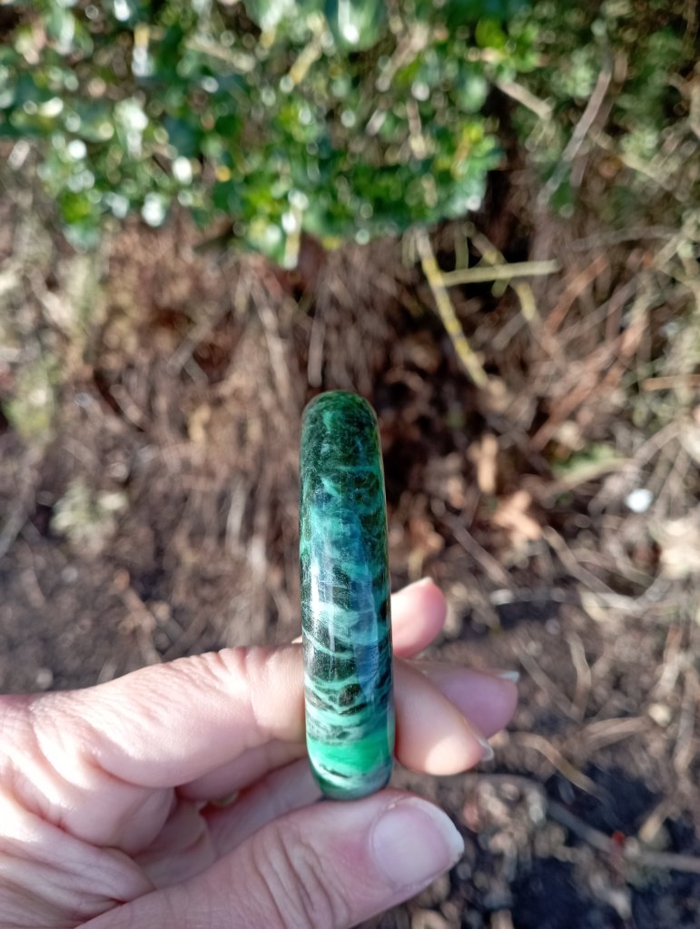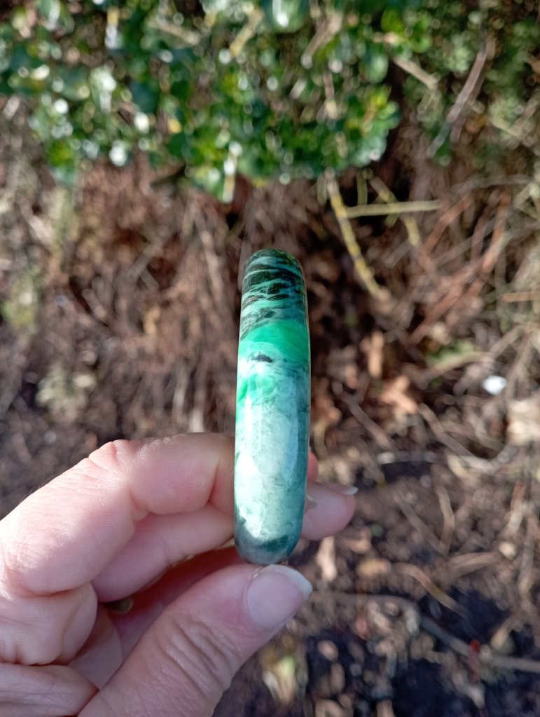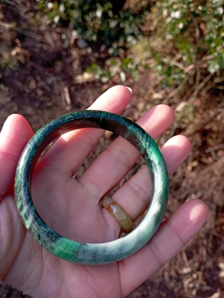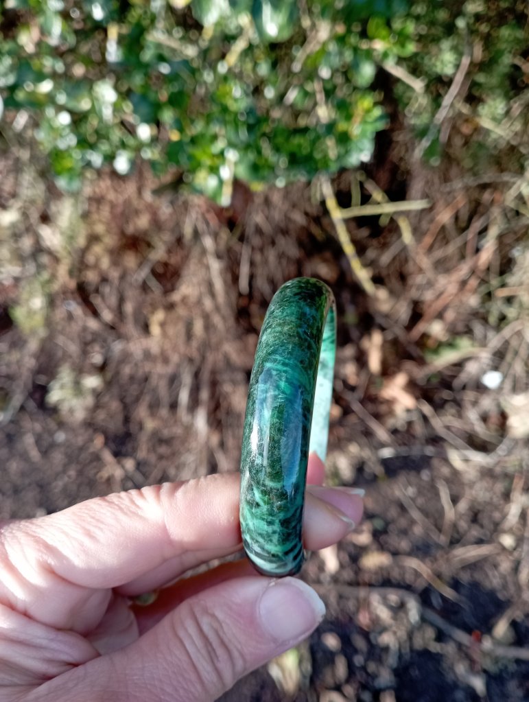 A very unusual bangle which is a vibrant green on one side and dark green on the other. Measures 58 x 12.6 X 7.7mm. It comes with a certificate of authenticity. £145