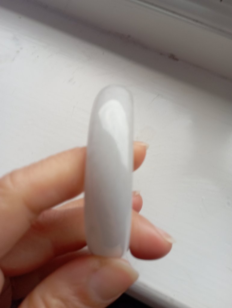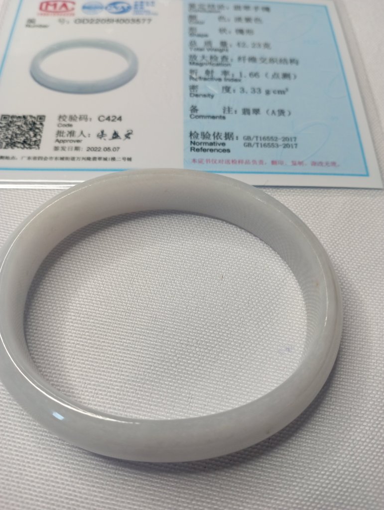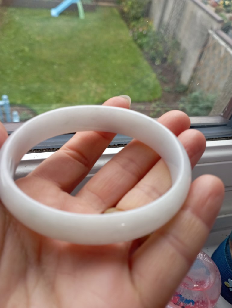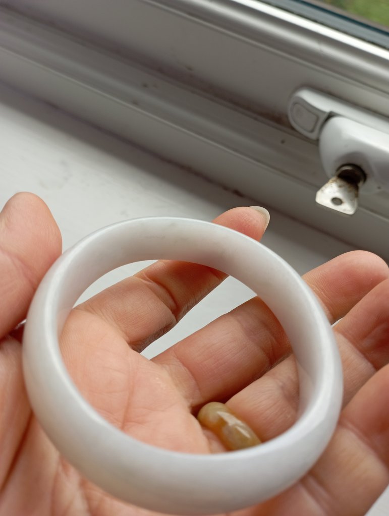 A very subtle purple jadeite bangle measures 61 x 50.6 X 13.3 X 7.3mm, due to its shape, fits up to 59mm only. Oval shape is popular with a lot of ladies who works in the office as it fits the wrist very well. £298