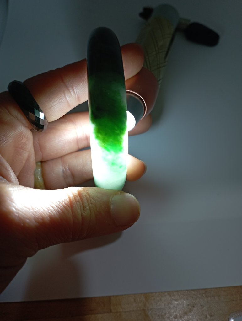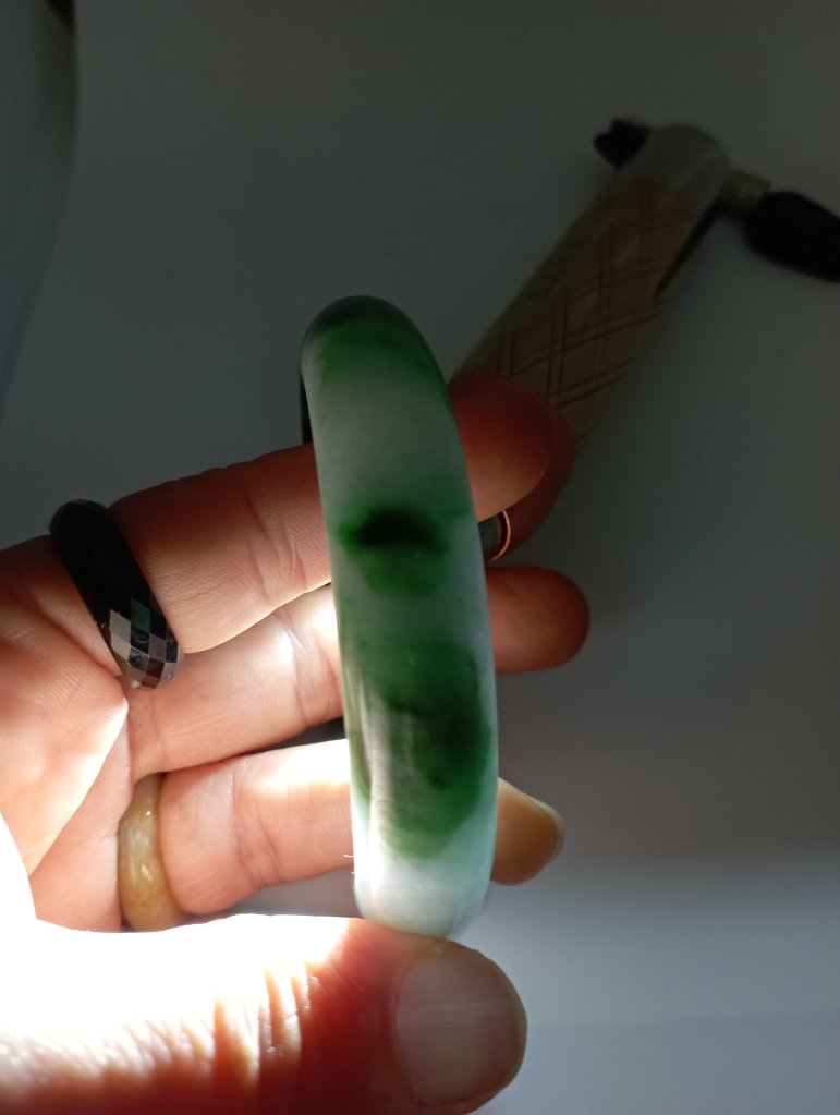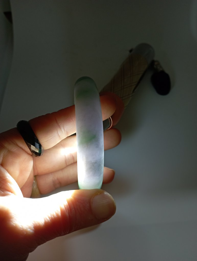 Stunning green blooms with purple jadeite bangle measures 62.4 X 13.6 X 9.1mm, this is a very attractive bangle and has no imperfections that I can see. Bangles of this quality are usually above £400 and this is just £339!!
