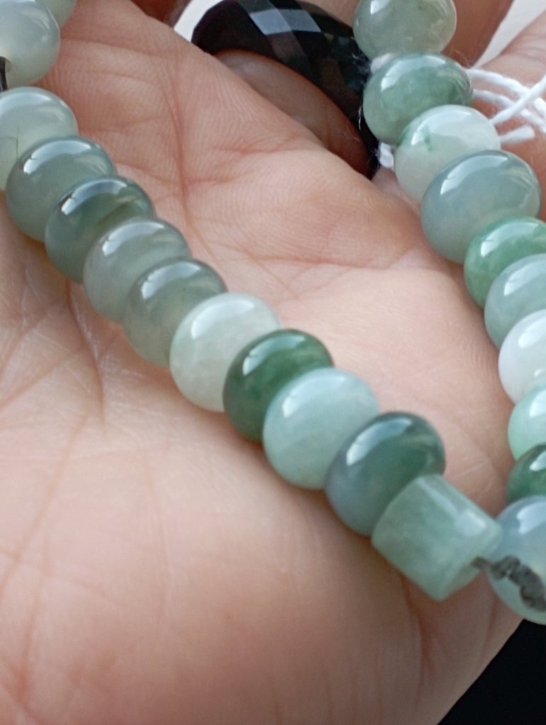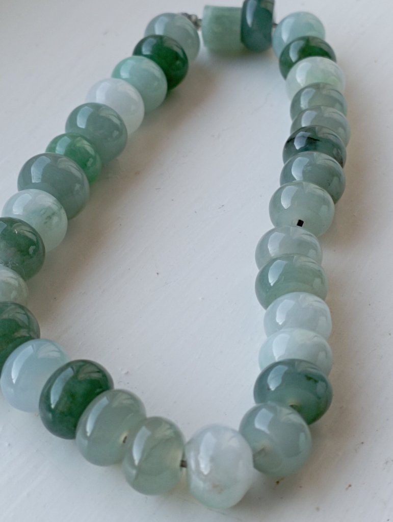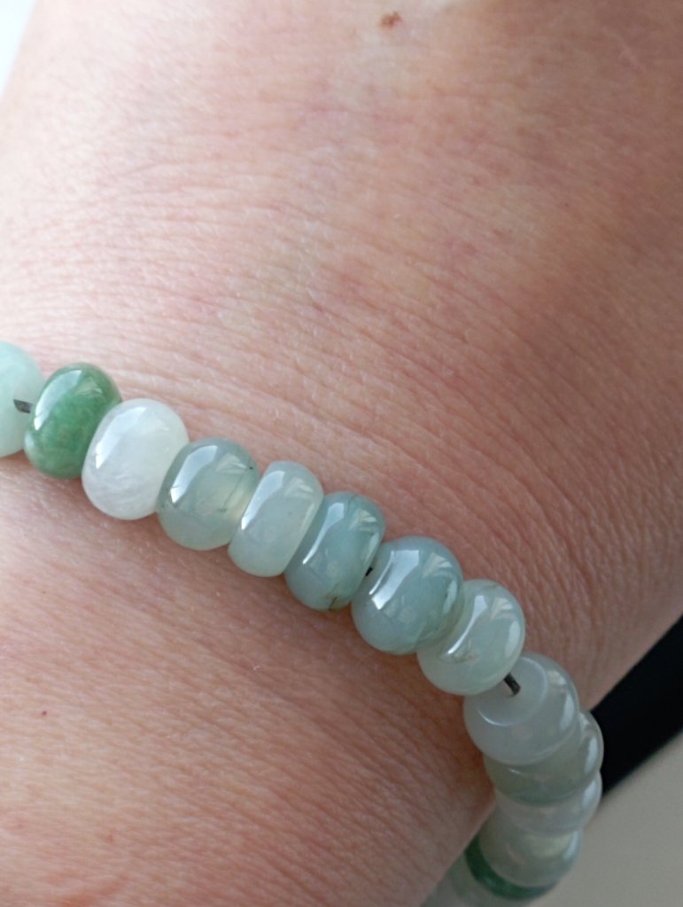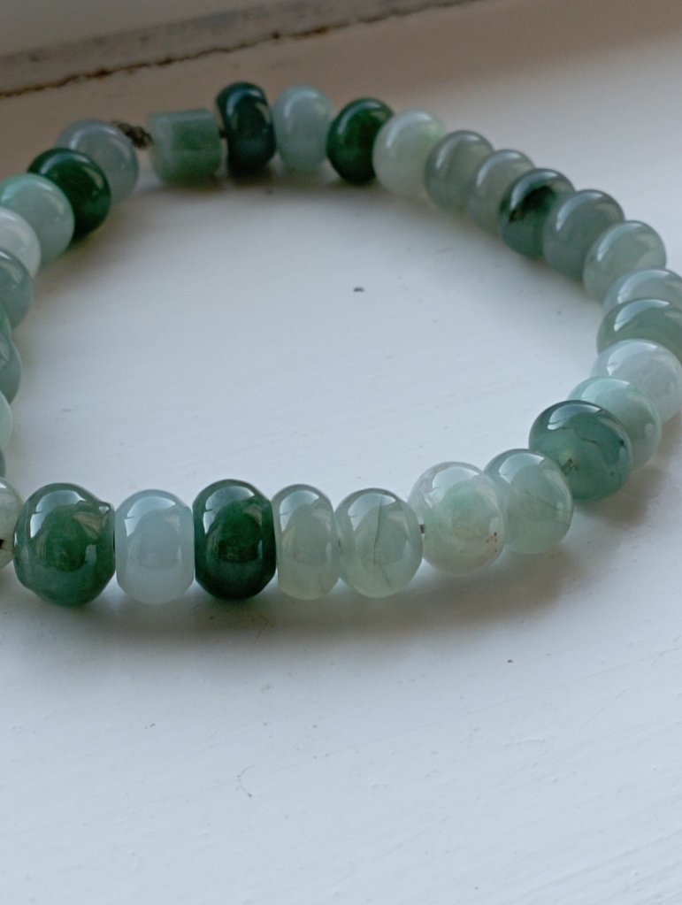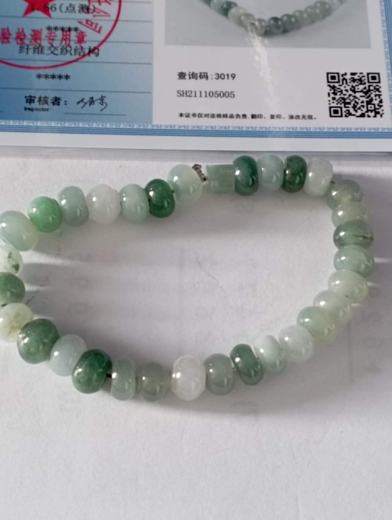 Translucent green beaded bracelet measuring 8.5 X 6mm on average. Comes with a certificate of authenticity. £68