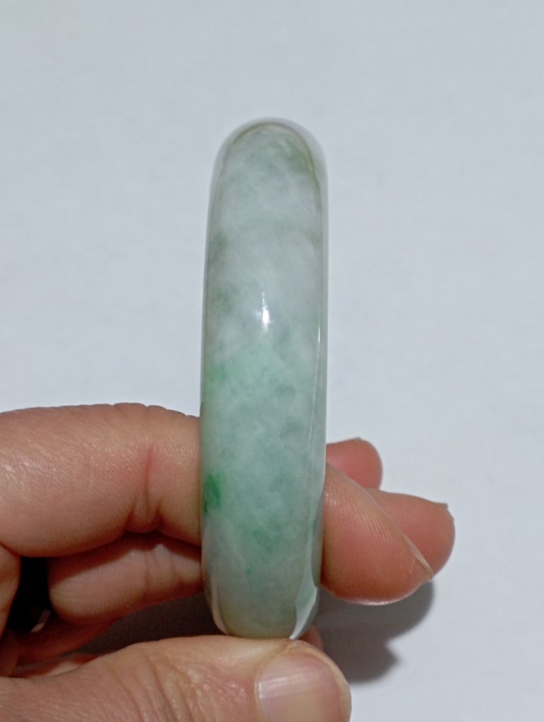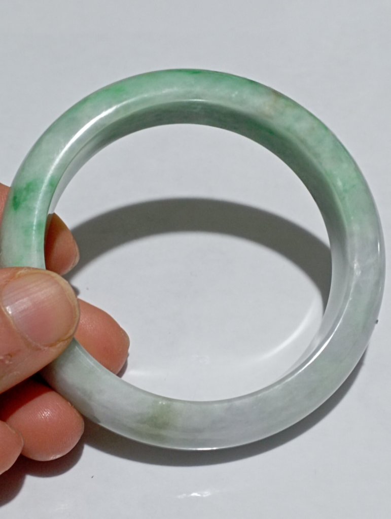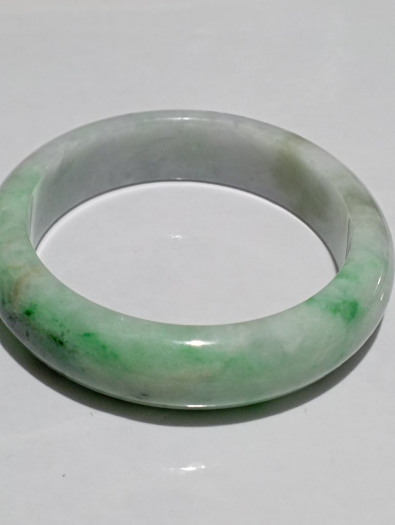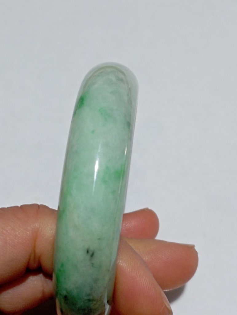 This lovely green and purple bangle with smoky grey(ward off evil) measures 56.6 X 15 x 8.6mm, comes with a certificate of authenticity. £288
