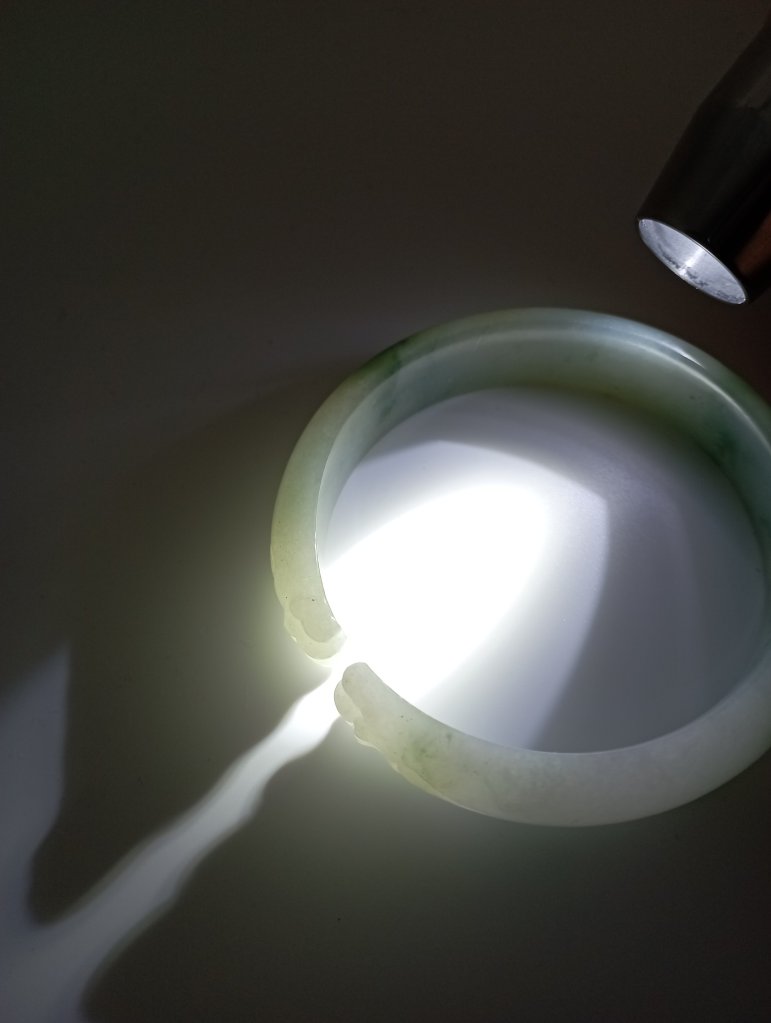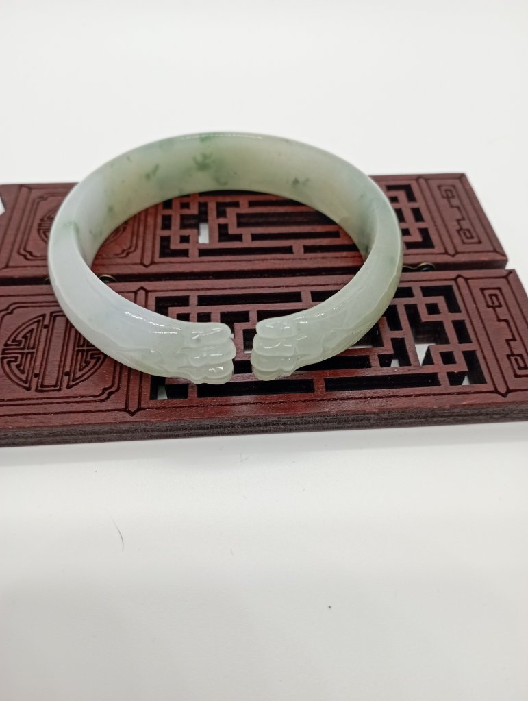 This lovely car paw bangle has collagen起胶 meaning the texture of the bangle looks gluelike which generally mean the stone is old and has translucency. Measures 57.8 X 15.3 X 7.3mm, comes with a certificate of authenticity, this is a great buy for the quality. £688