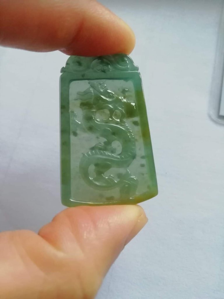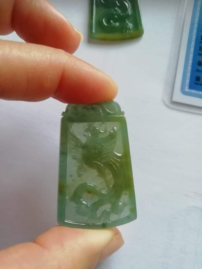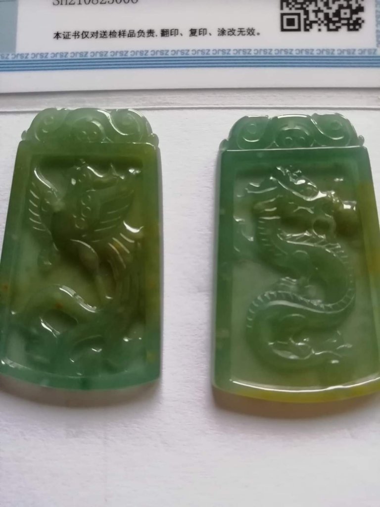 Lovely pair of certified dragon and phoenix made of Guatemala jadeite,