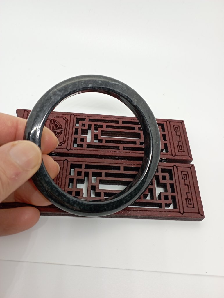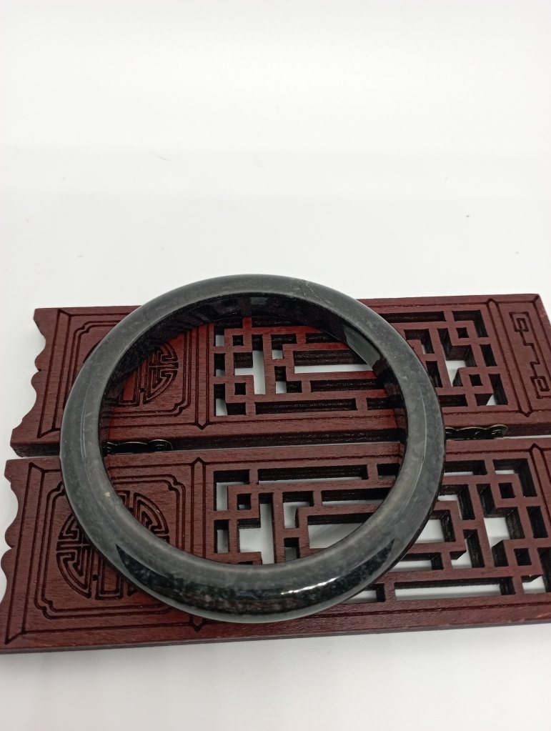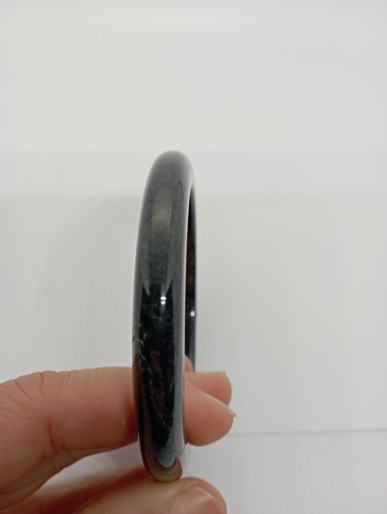 This gorgeous smoky grey jadeite bangle measures 58.7 X 9 x 9. Comes with a certificate of authenticity. £89
