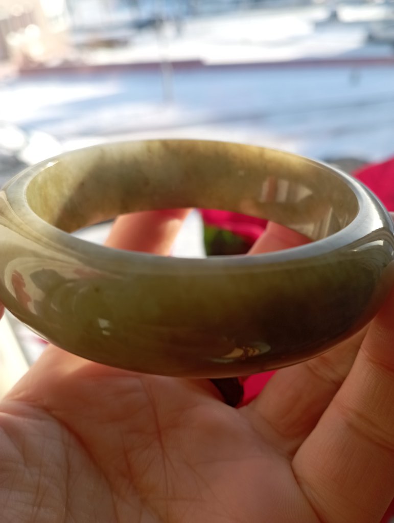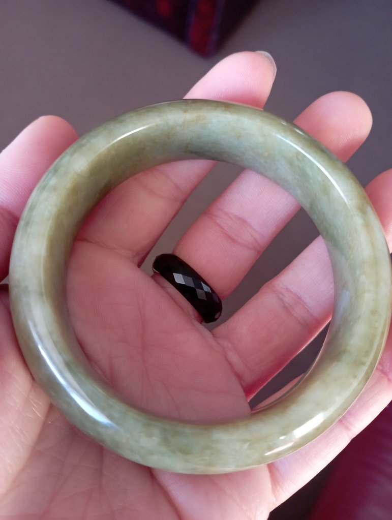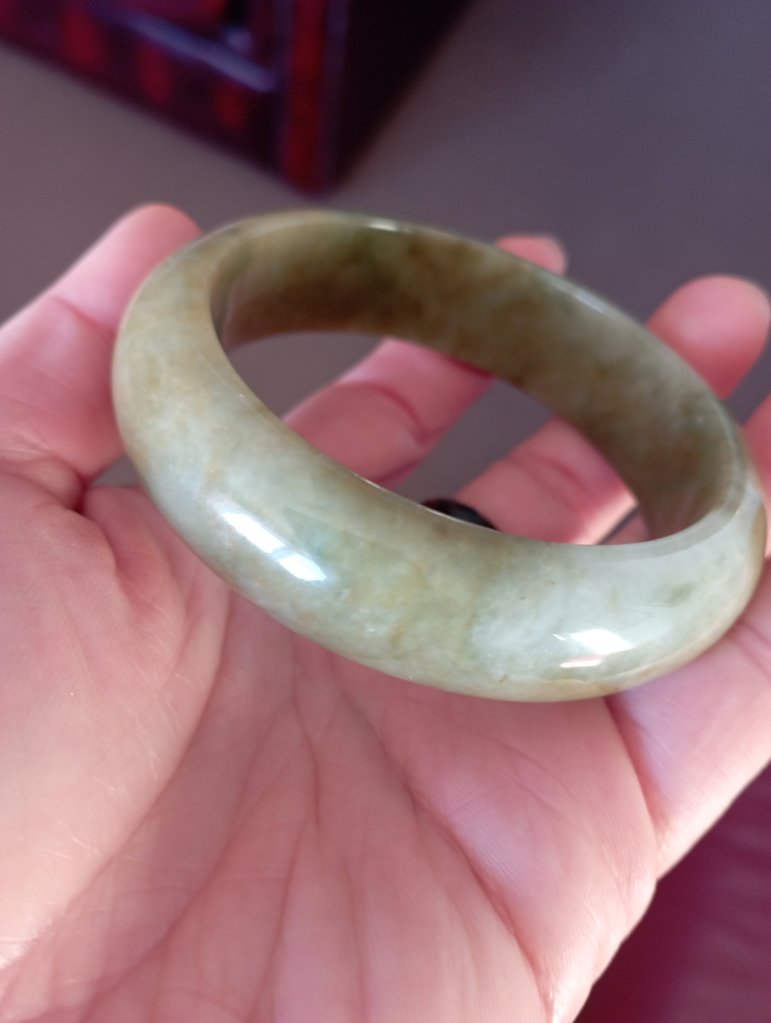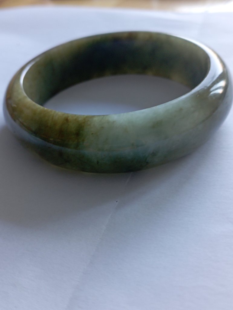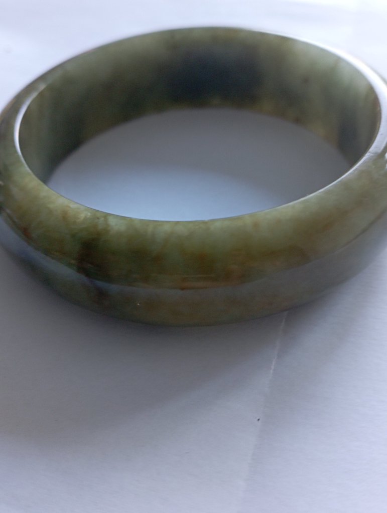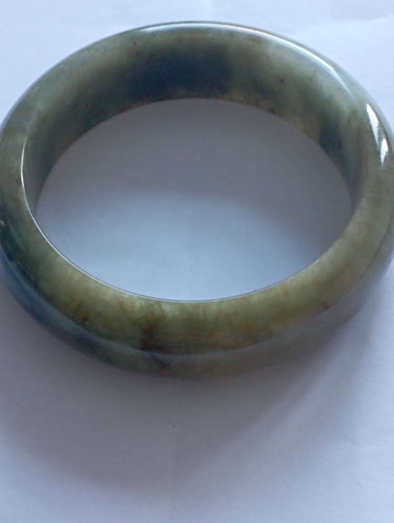 With a width of 17.6mm, this Burmese jadeite bangle measures 58.4mm in internal diameter and 9.3mm thick, the colour is a rich tea green colour that is very attractive. Comes with a certificate of authenticity. £398
