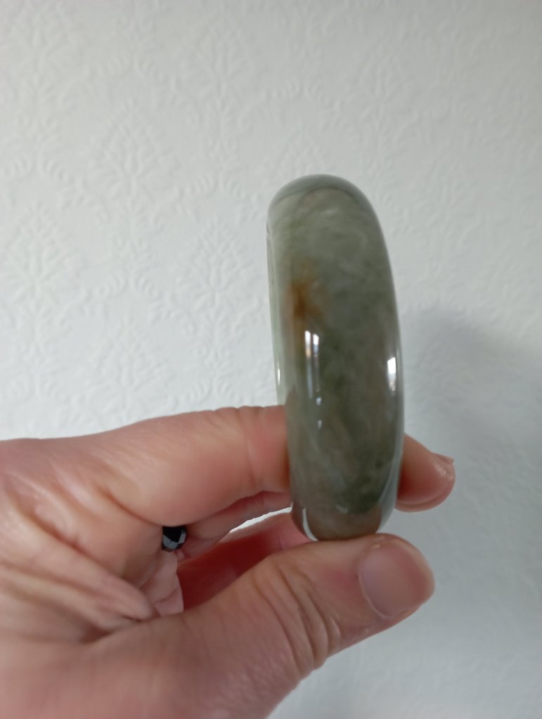 At a whooping 19.4mm in width, this green bangle is made of Burmese jadeite with an internal diameter of 57.8mm and a thickness of 8.9, comes with a certificate of authenticity £169