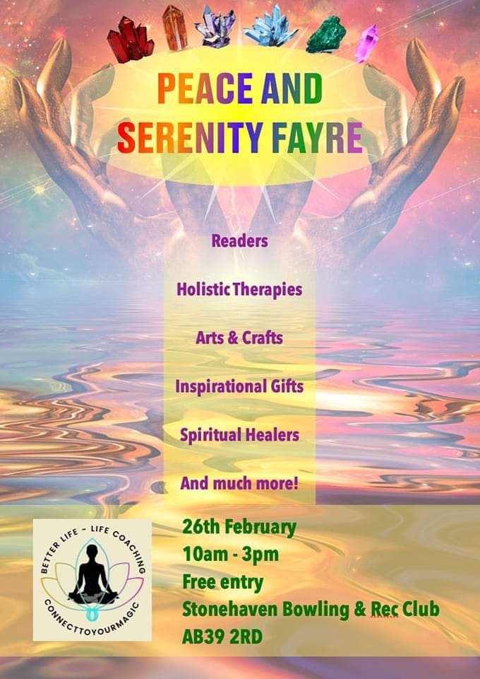 We are excited to be attending our first fair this year, at the Peace and Serenity Fair on 26th February, 10am to 3pm at Stonehaven Bowling Club. Do come for a browse, lots of lovely stalls.