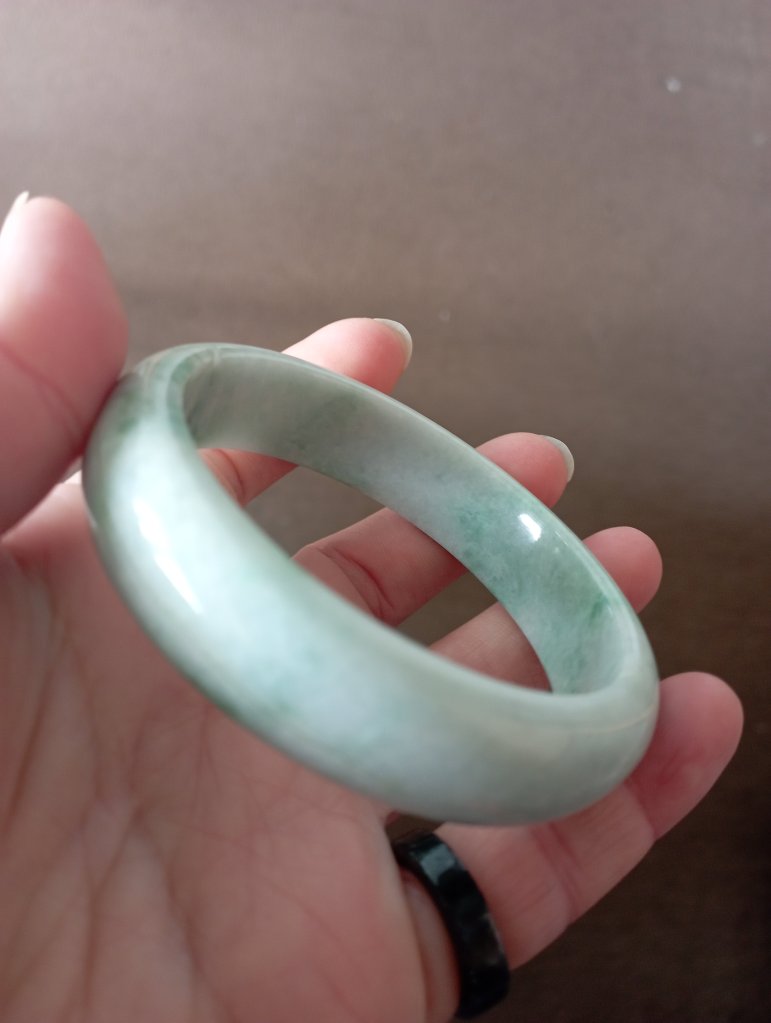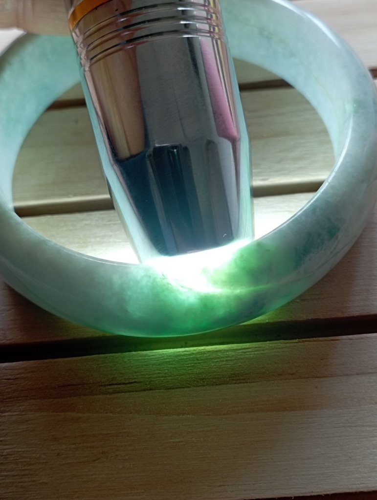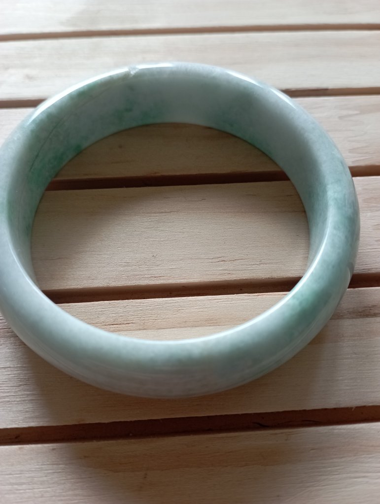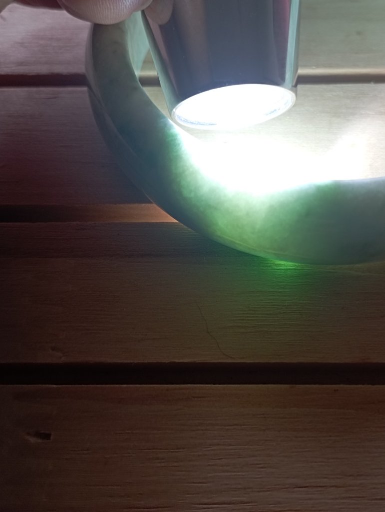 Another bargain bangle with lovely colour. Unfortunately, the imperfections include a colour line and dent at the edge of the bangle. Please feel free to ask for more photos and videos.