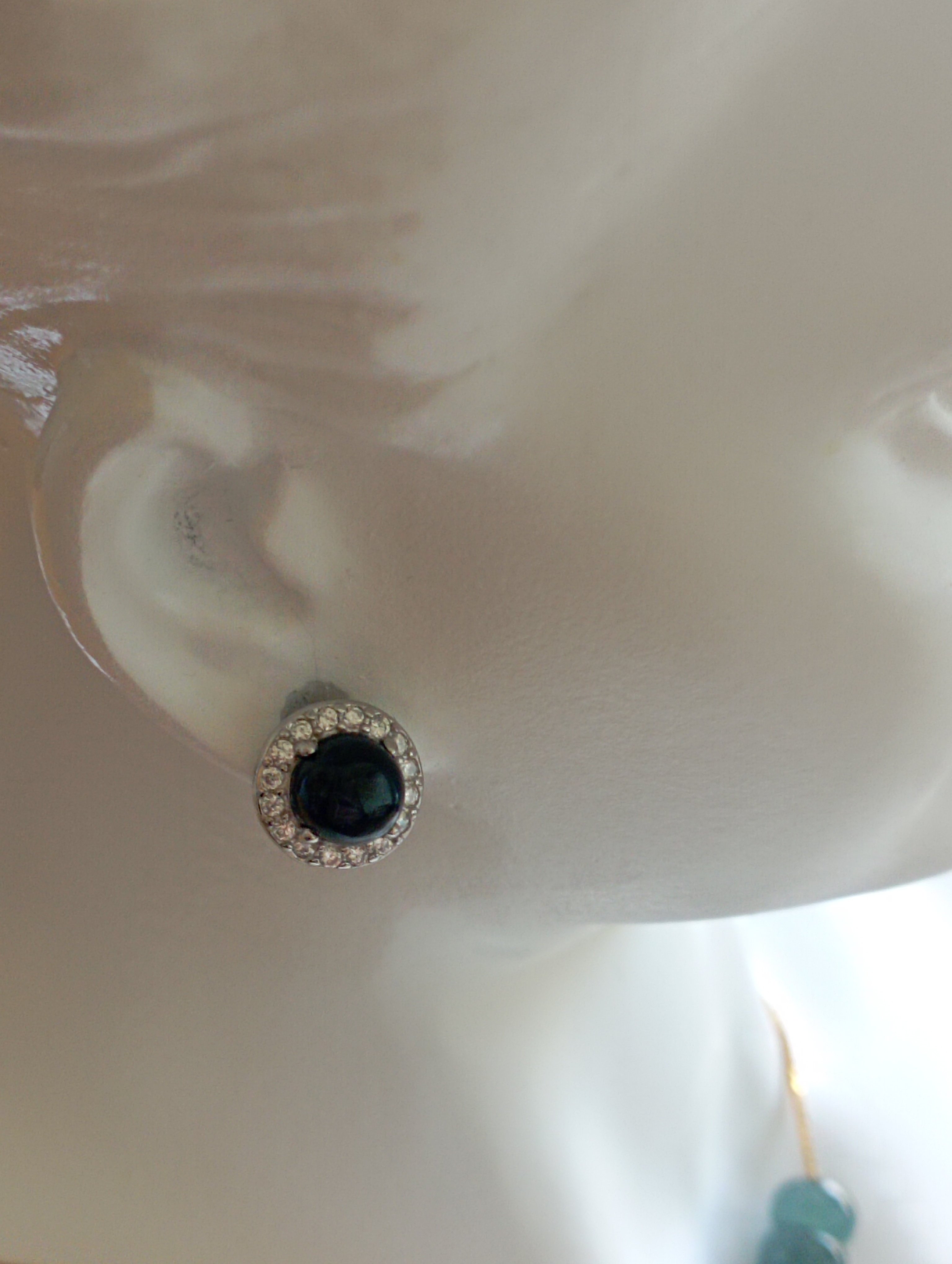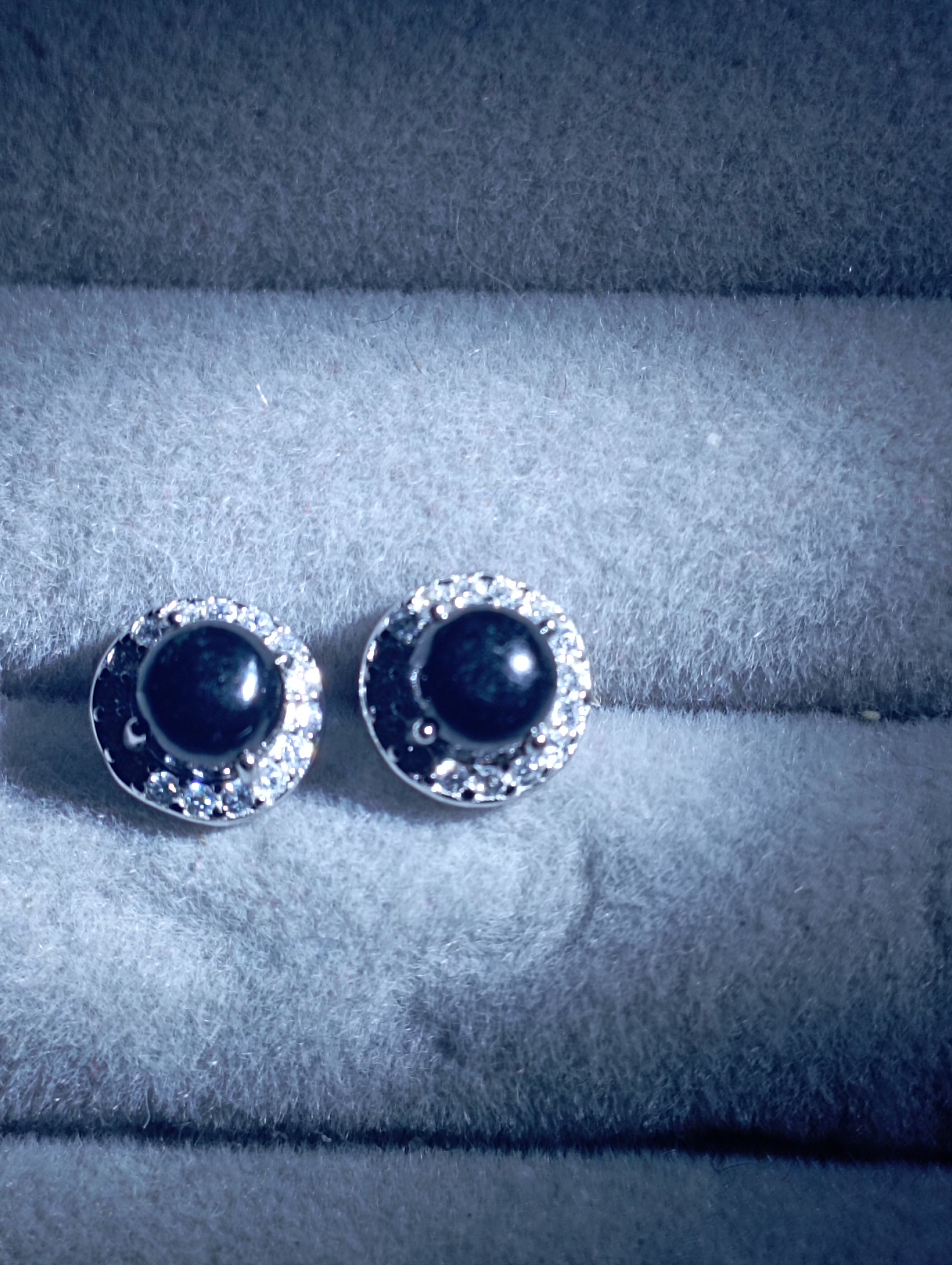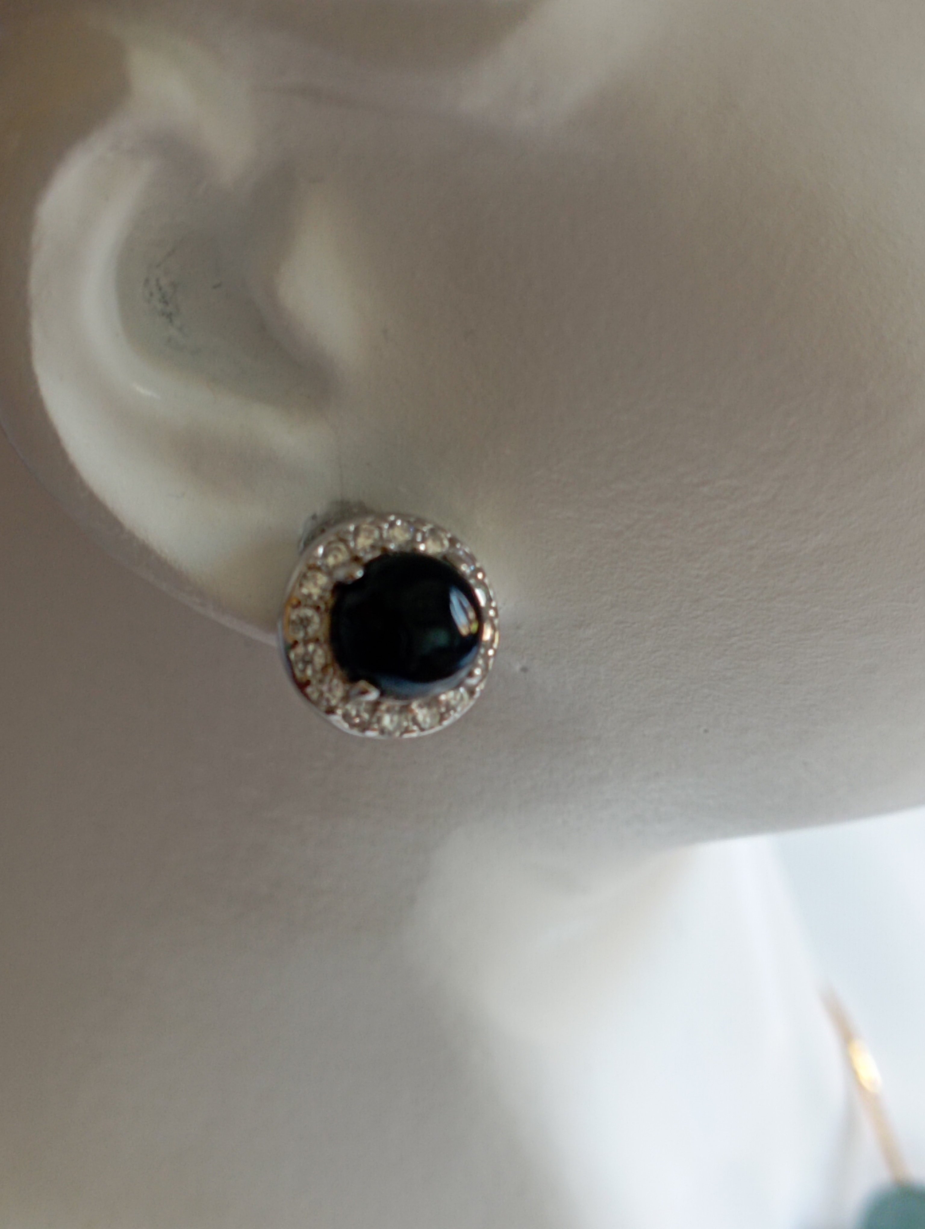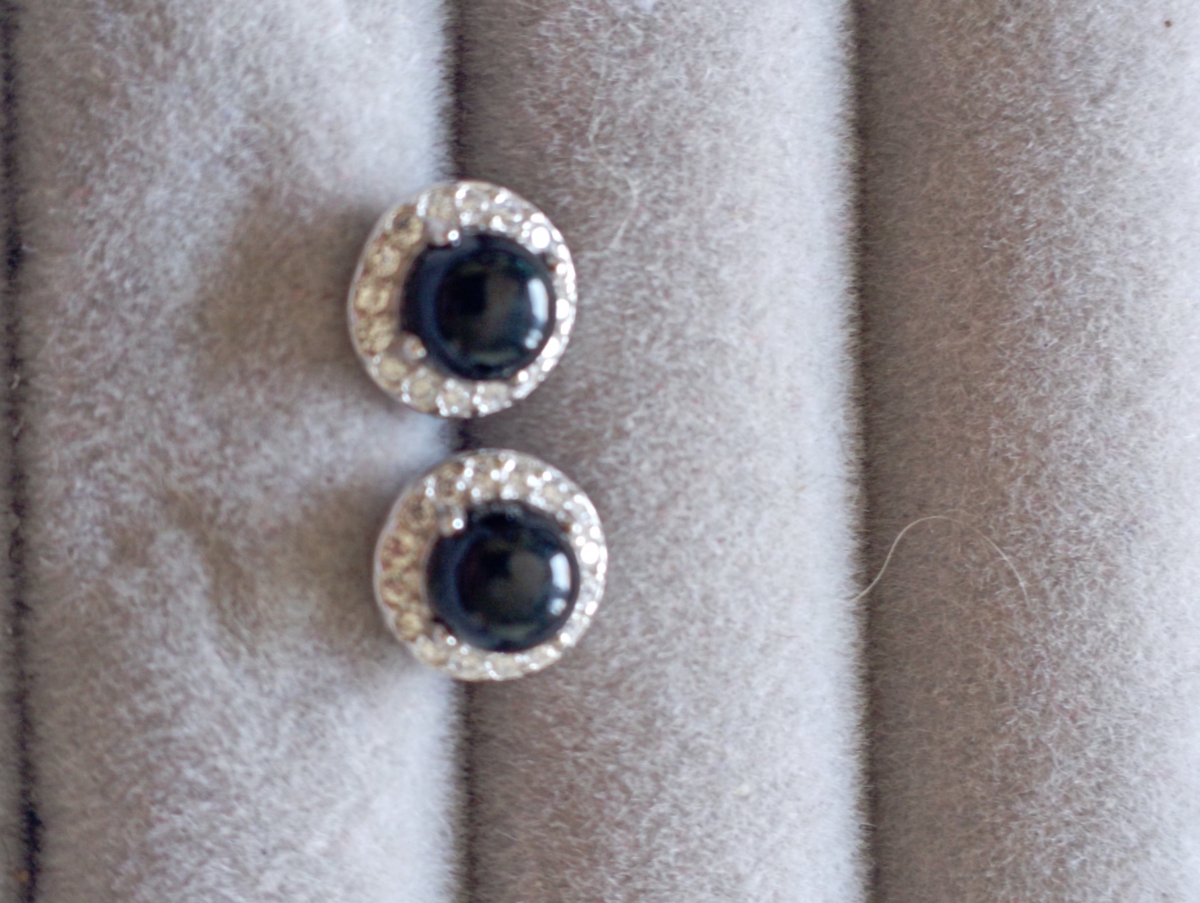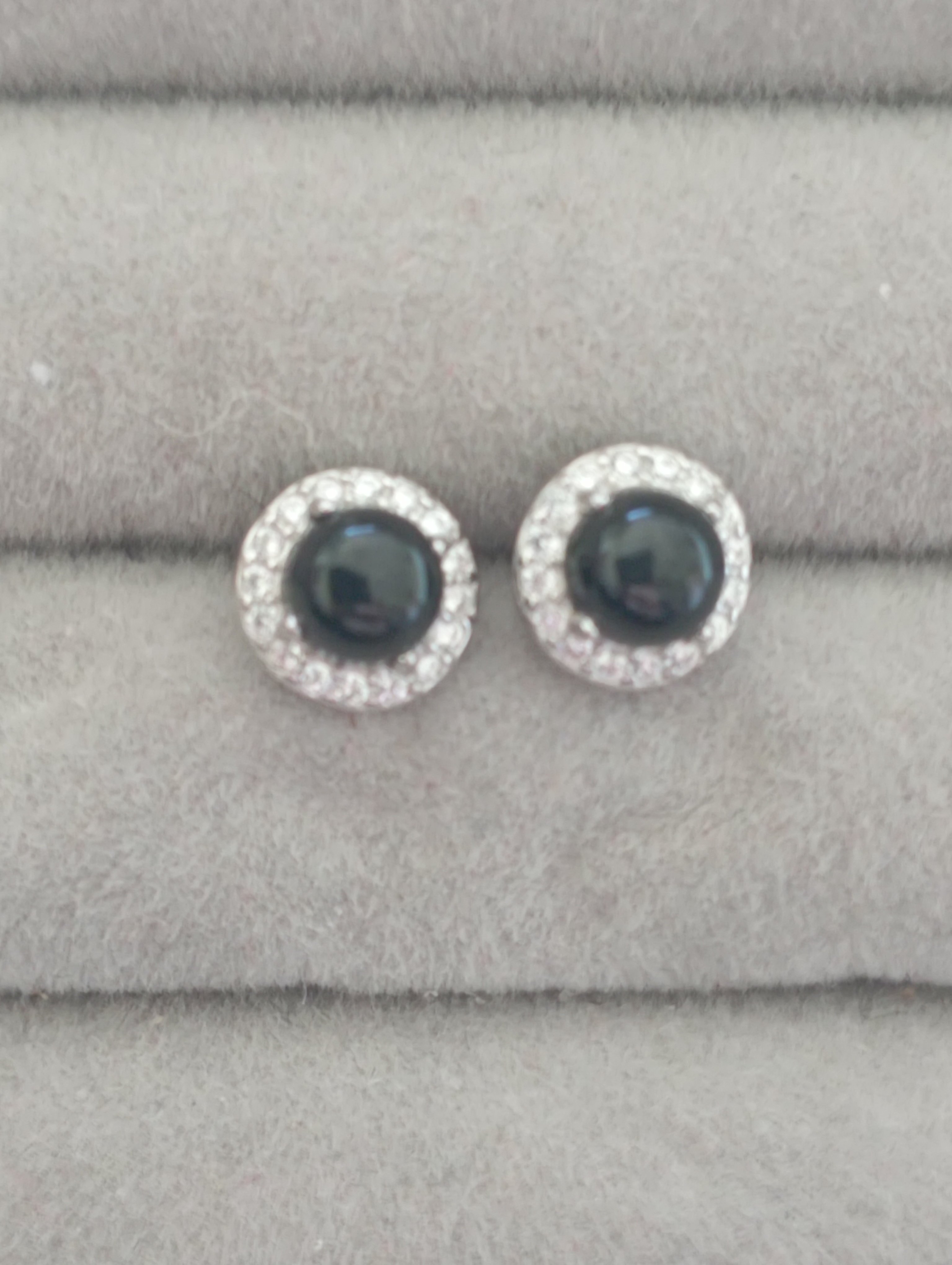 The black Jadeite measures approx 5mm each, set in a halo of cubic zirconia, the earrings and backings are made of sterling silver. Comes with a certificate of authenticity £30