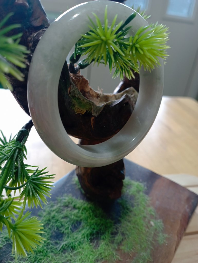 Aka spring 淡春彩 colour, this lovely bangle measures 55.6 X 13.3 X 9.6mm, comes with a certificate of authenticity £138