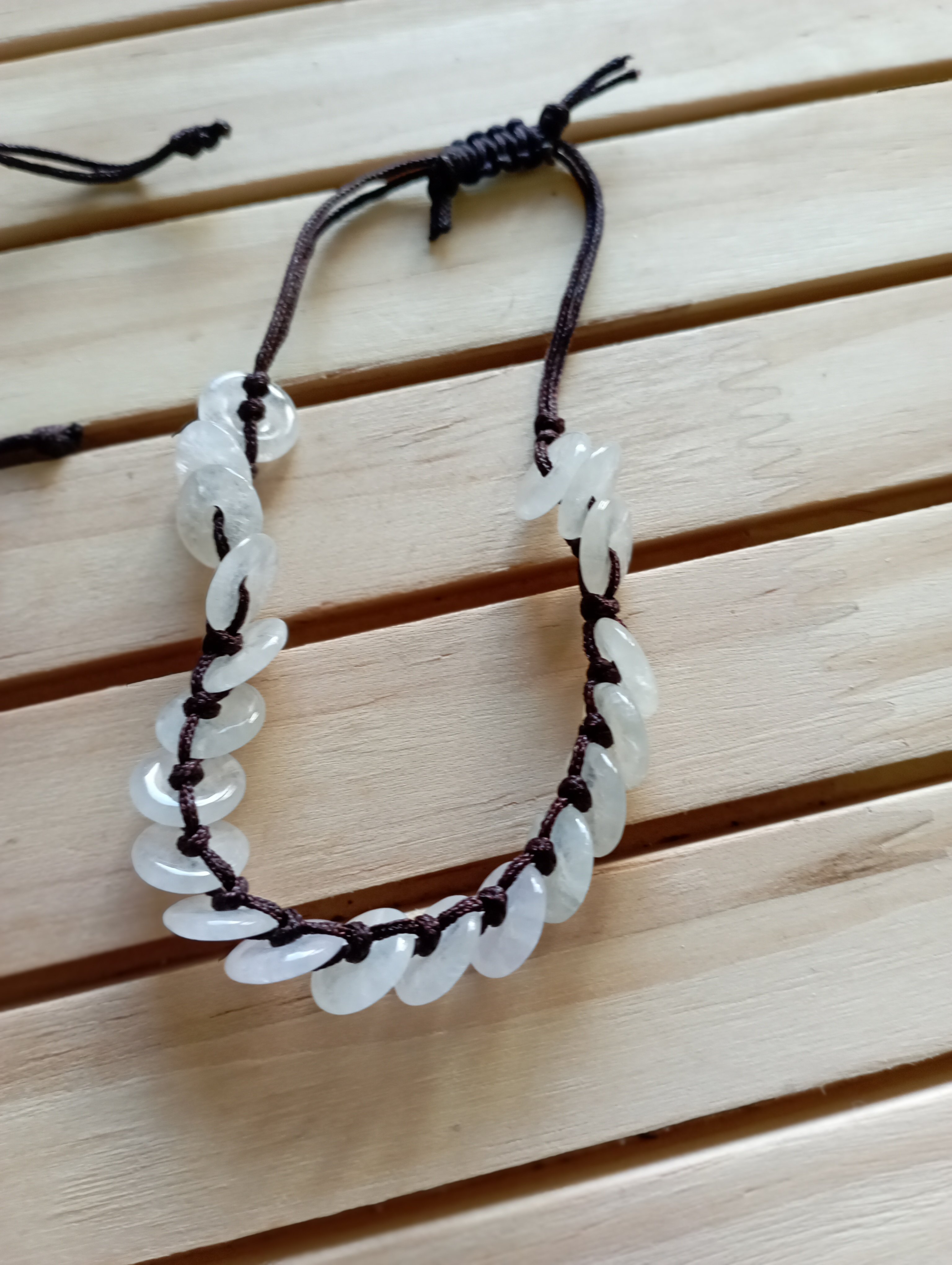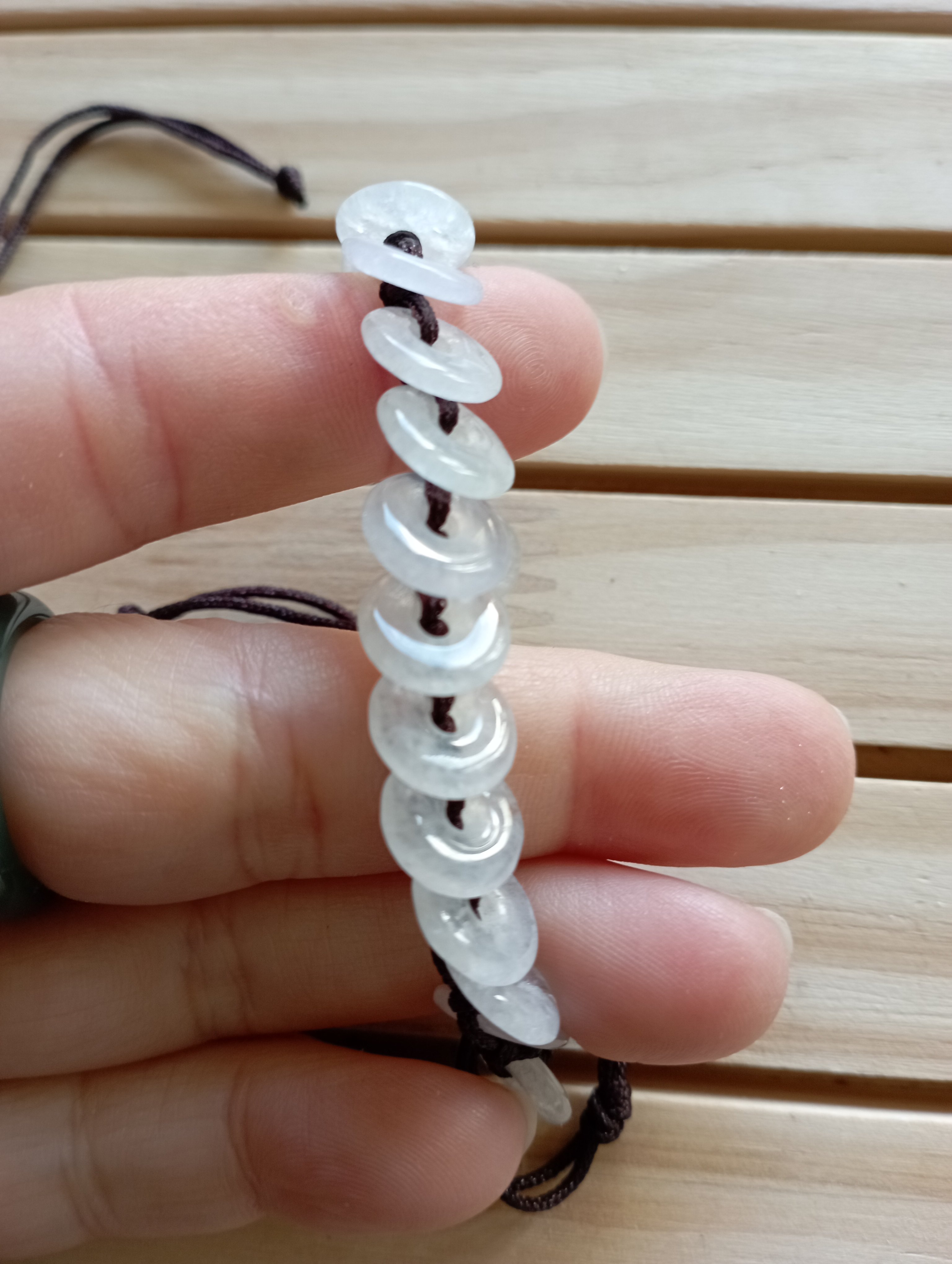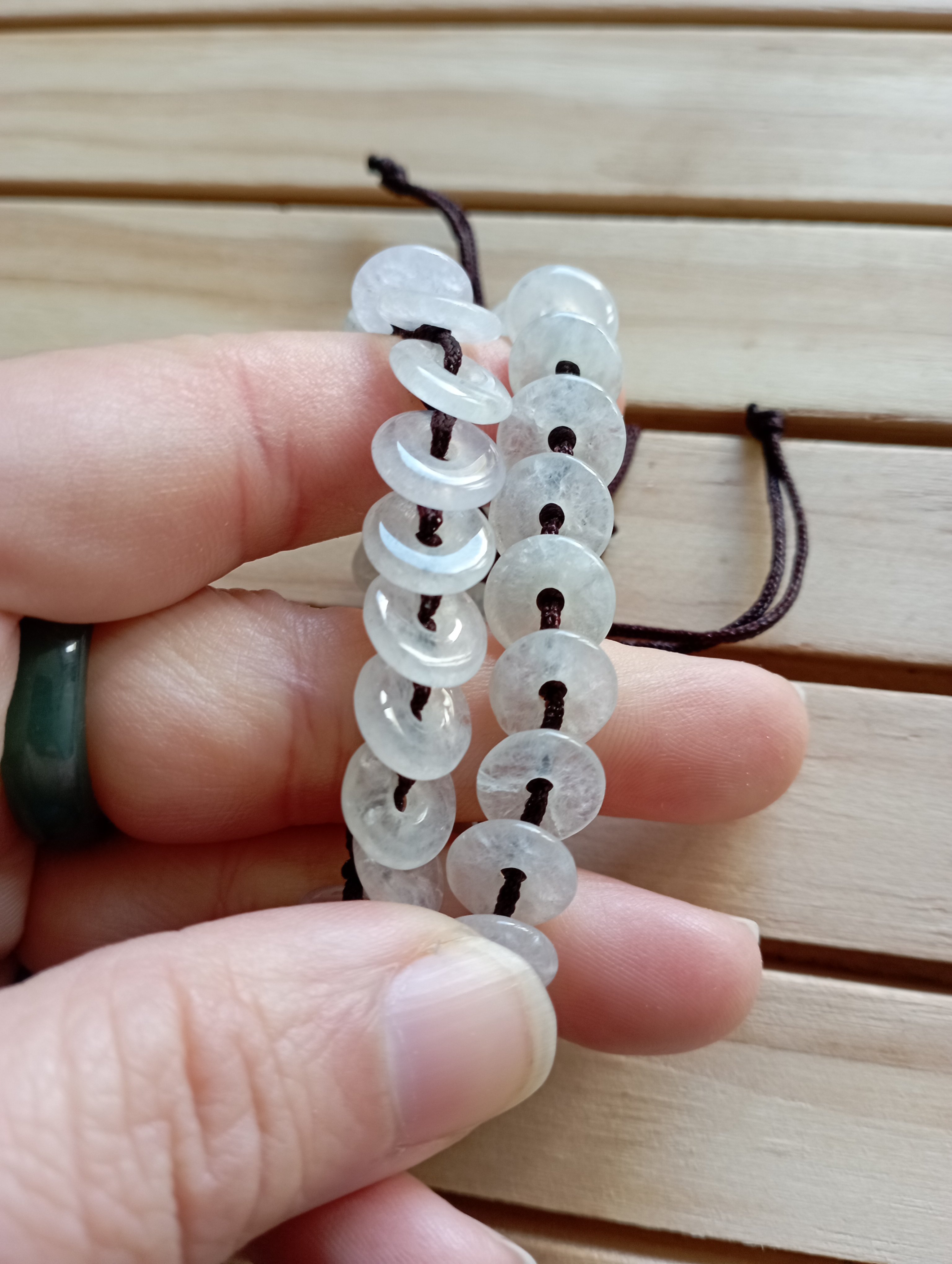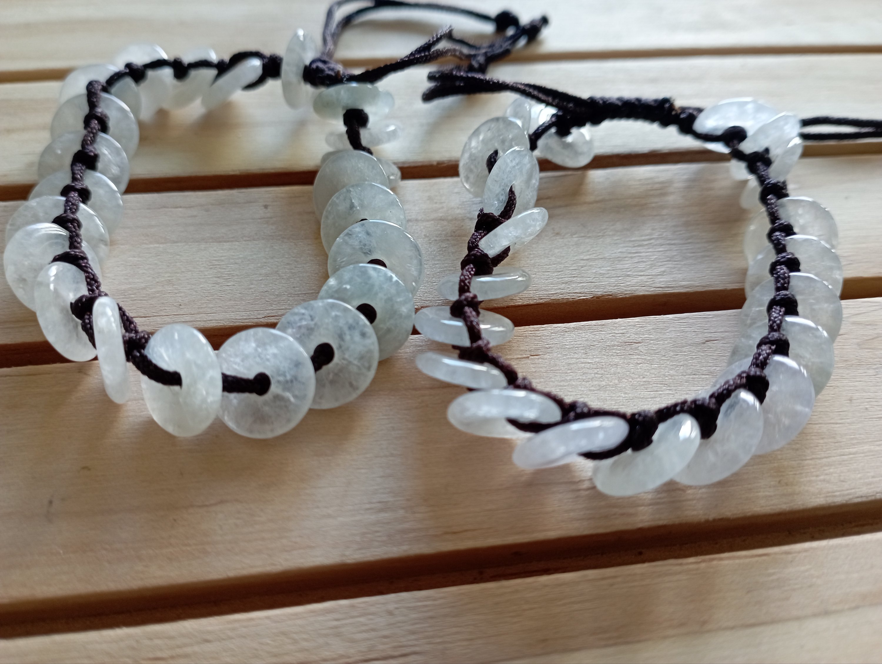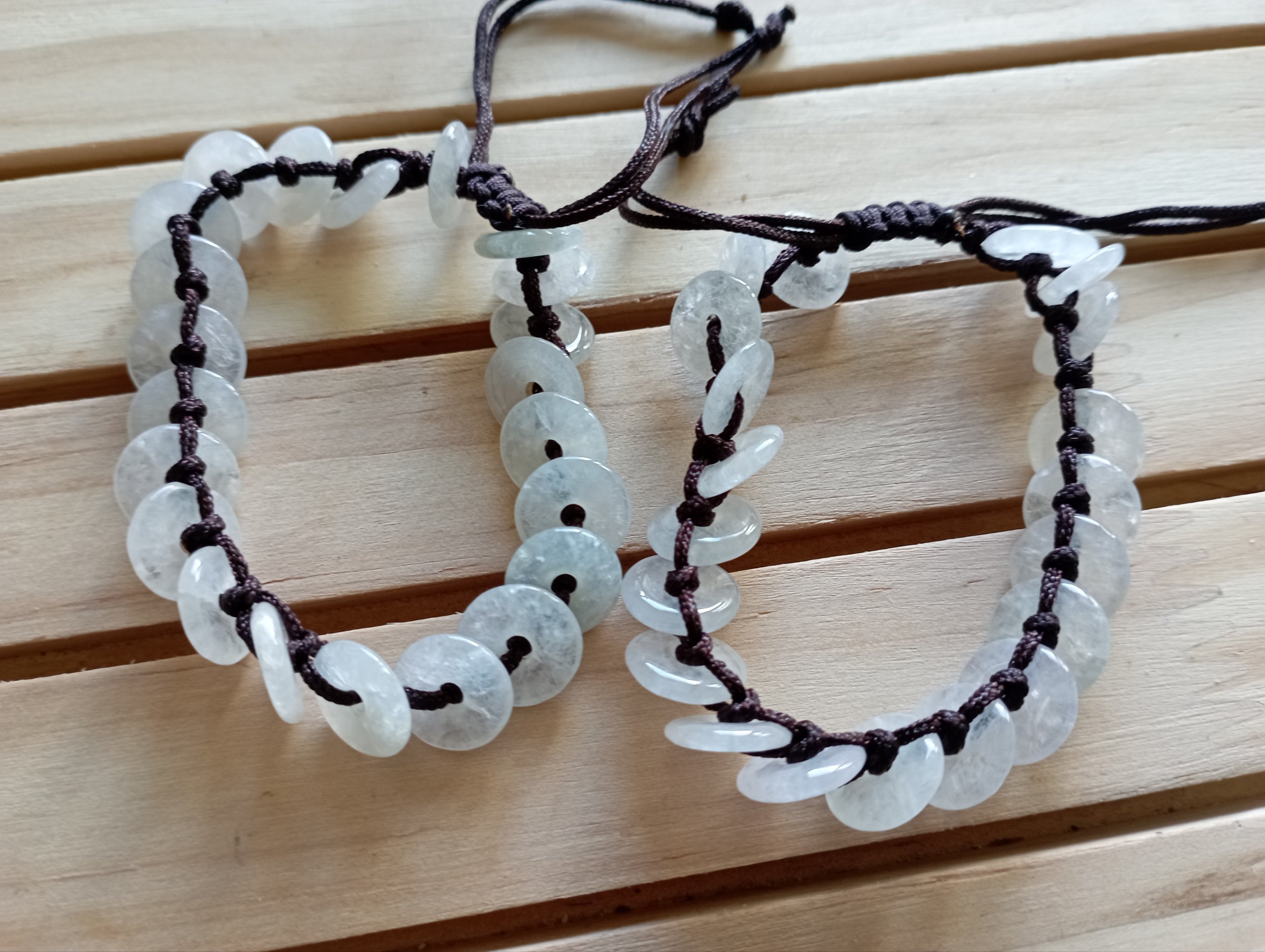 These bracelets are made up of 22 donuts, each donut measures 10 x 2mm, they are all very translucent. The bracelets are made of string and handmade, can fit child and adult, it can be worn in the shower but not in the swimming pool as it might discolour.