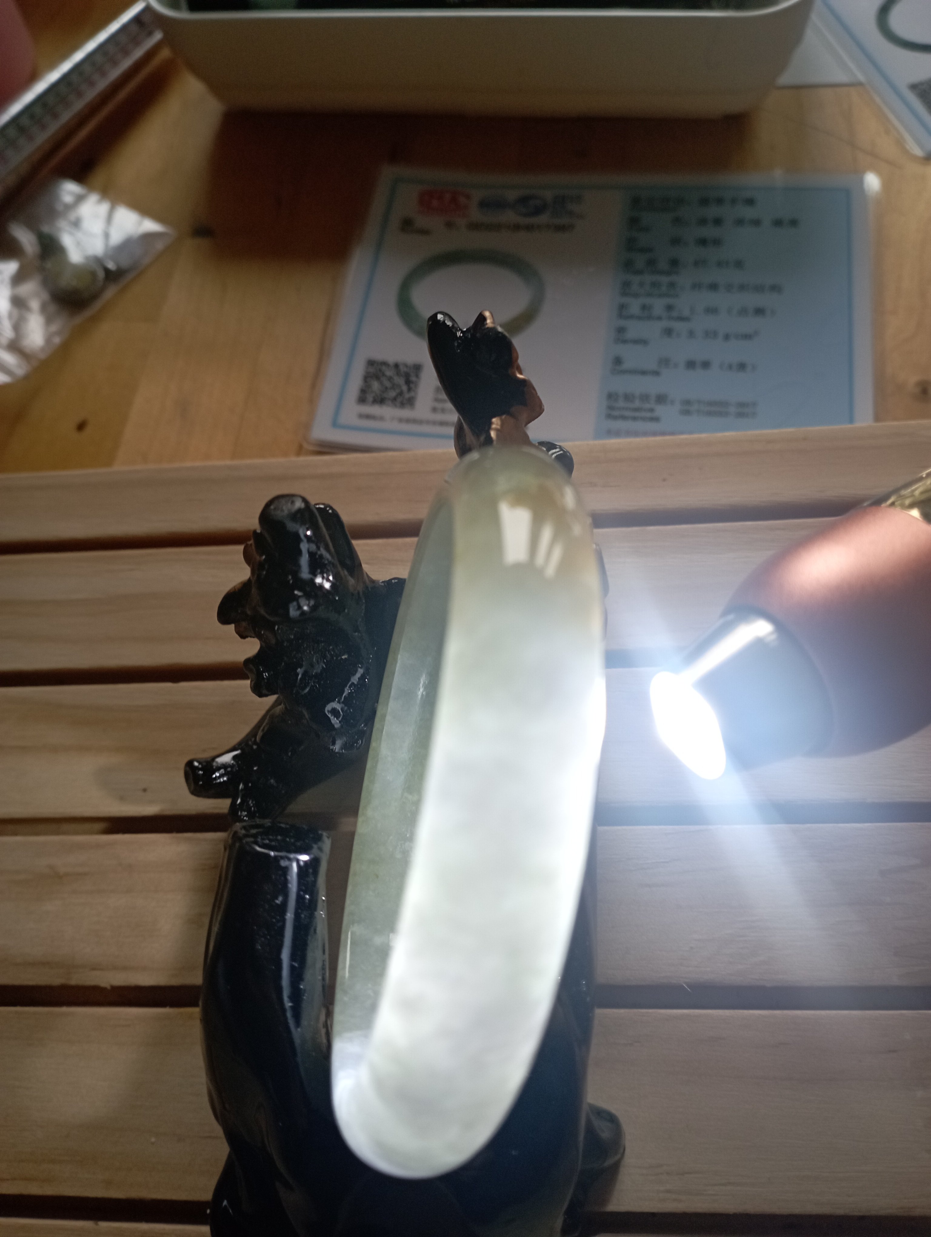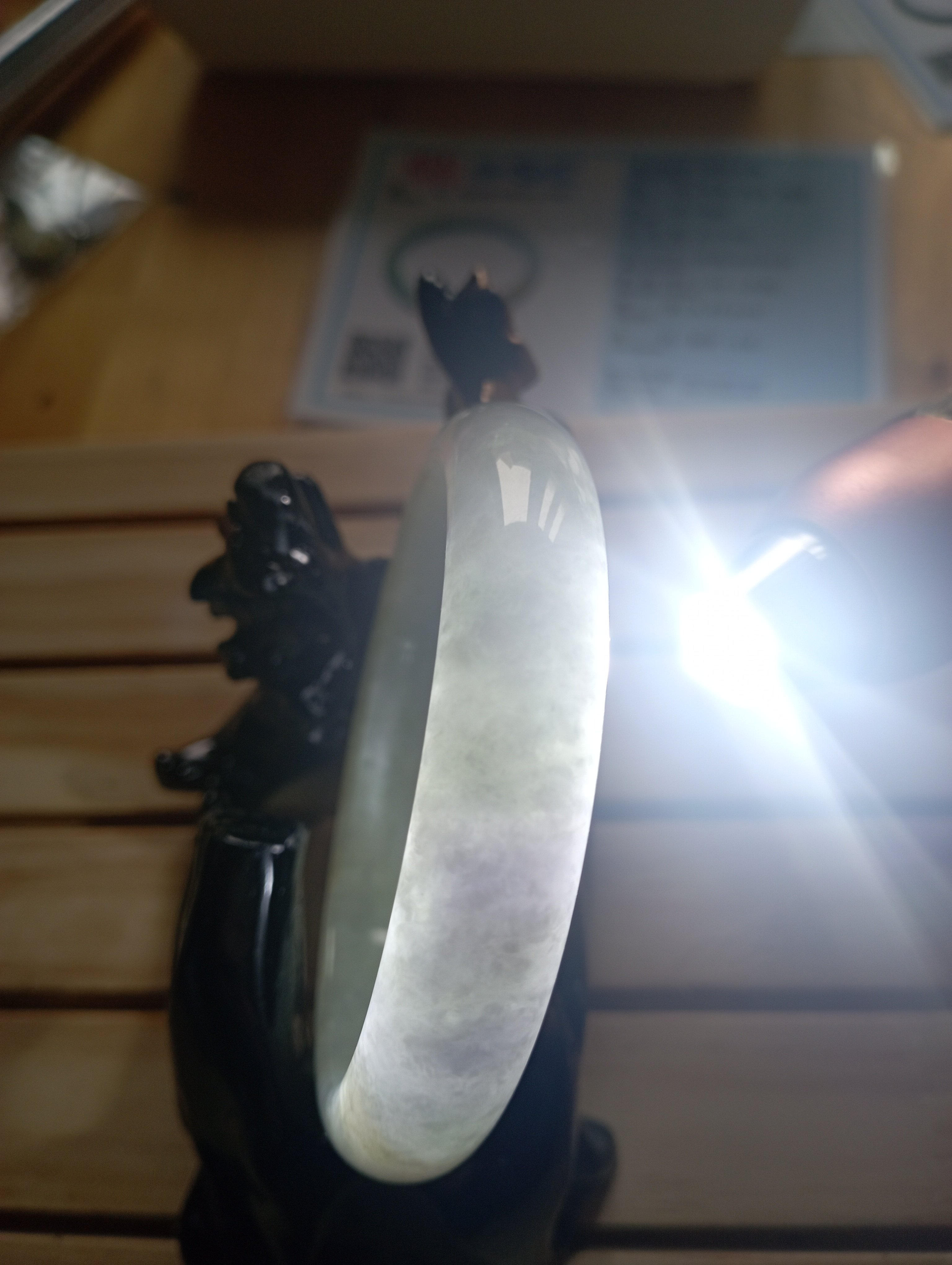 Due to its colour combination (green, purple yellow) and the translucency, the value of this bangle will increase as time goes by. Measures 57.2 X 11.9 X 7.3mm, comes with a certificate of authenticity and is priced at £488 which is much lower than the current market price.