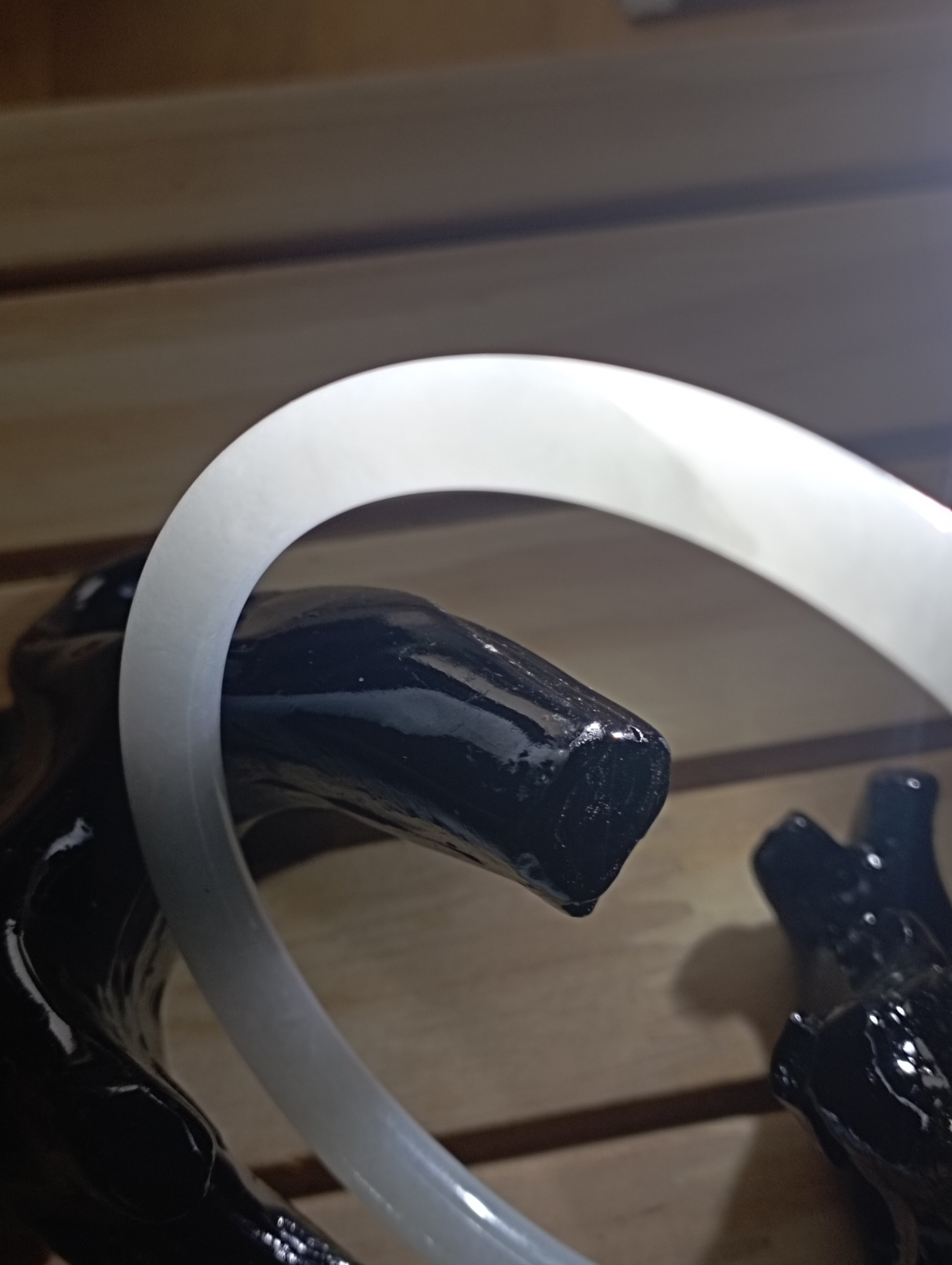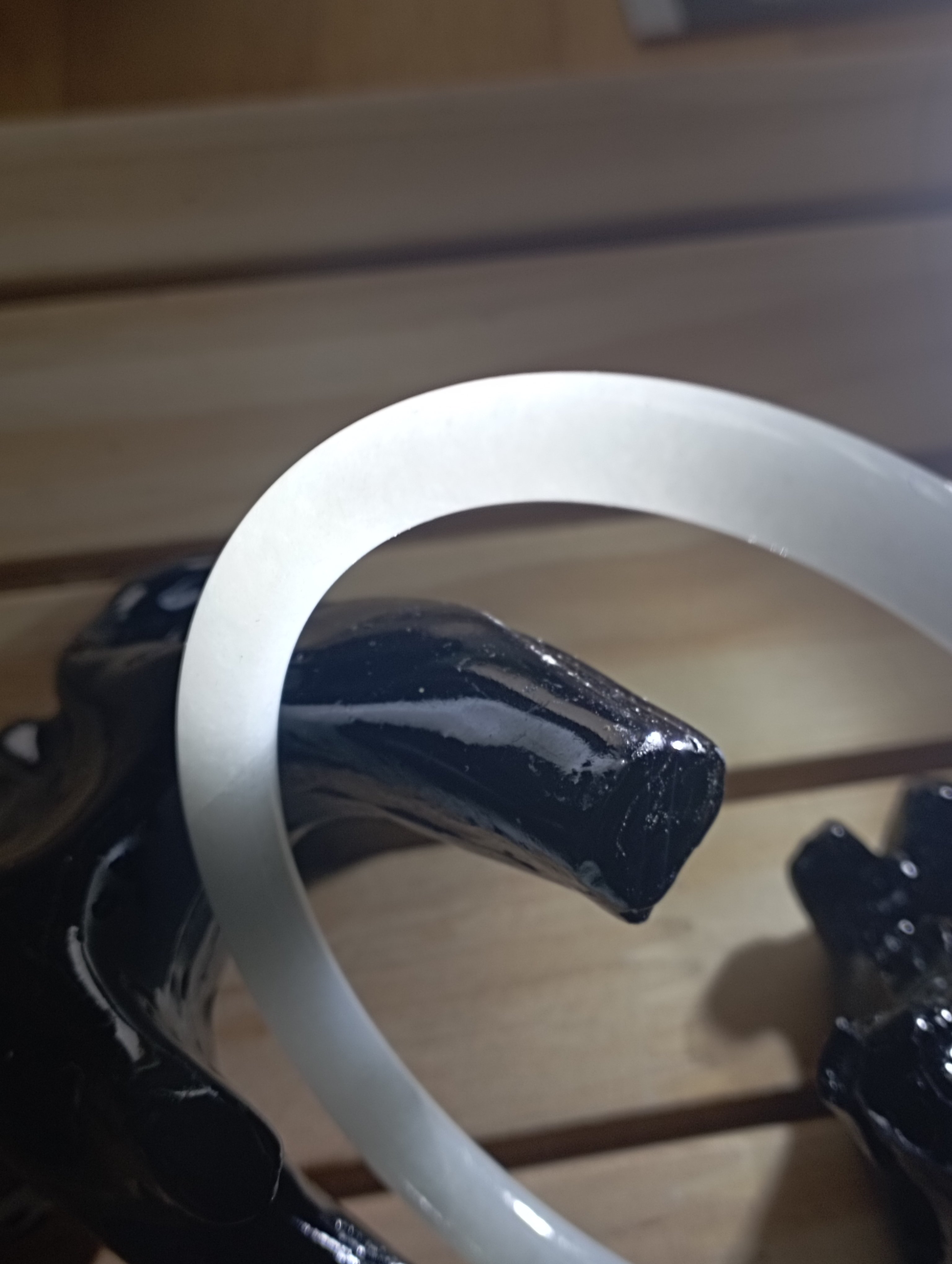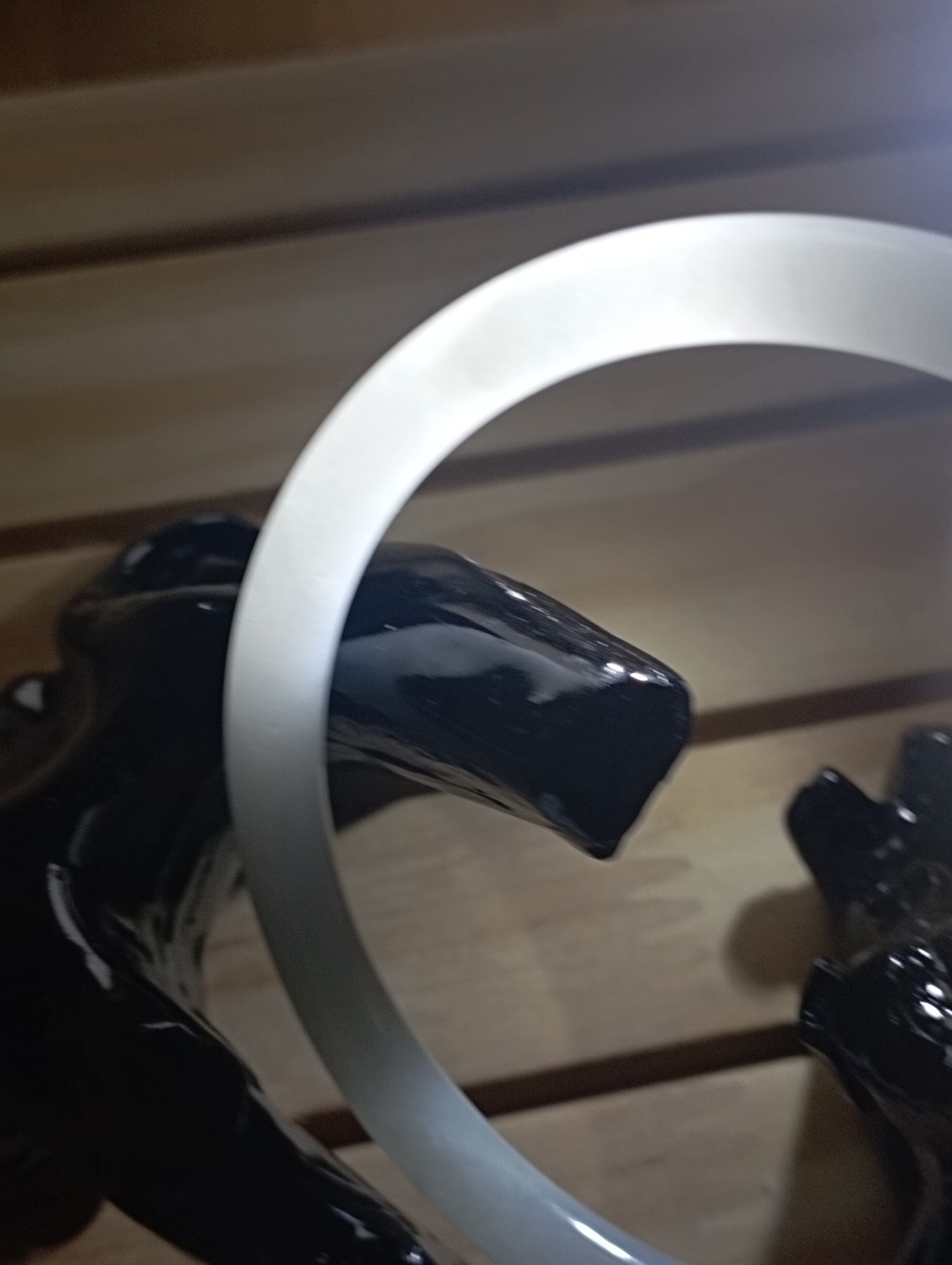 A beautiful round bangle that fits up to 57mm, it is a moonstone colour with 2 formations as per pictures. Measures 55.6 X 5.8 X 6mm, will make a pair of ding dang( referring to the sound they makes , the tinkle when two bangles bang together)