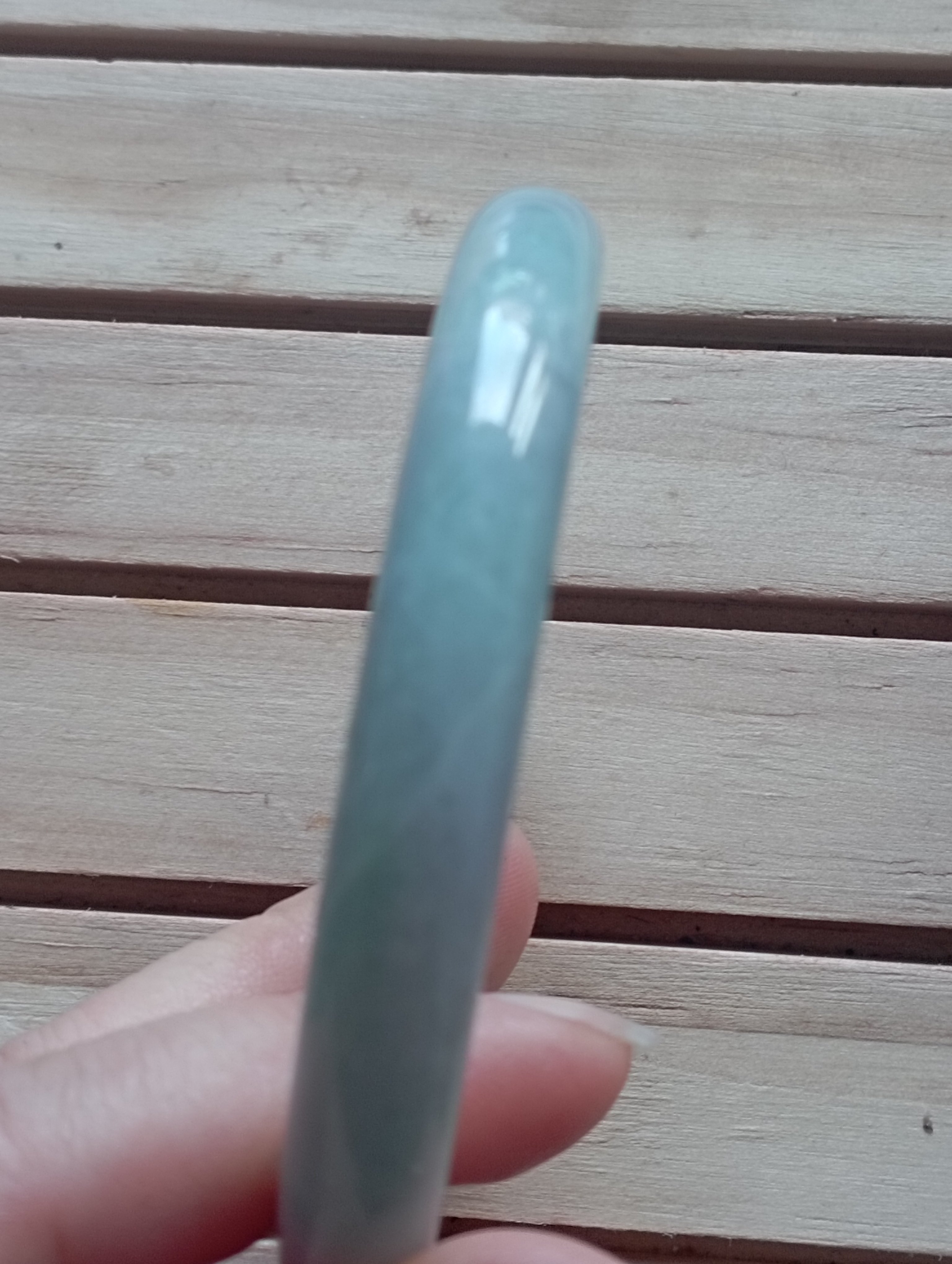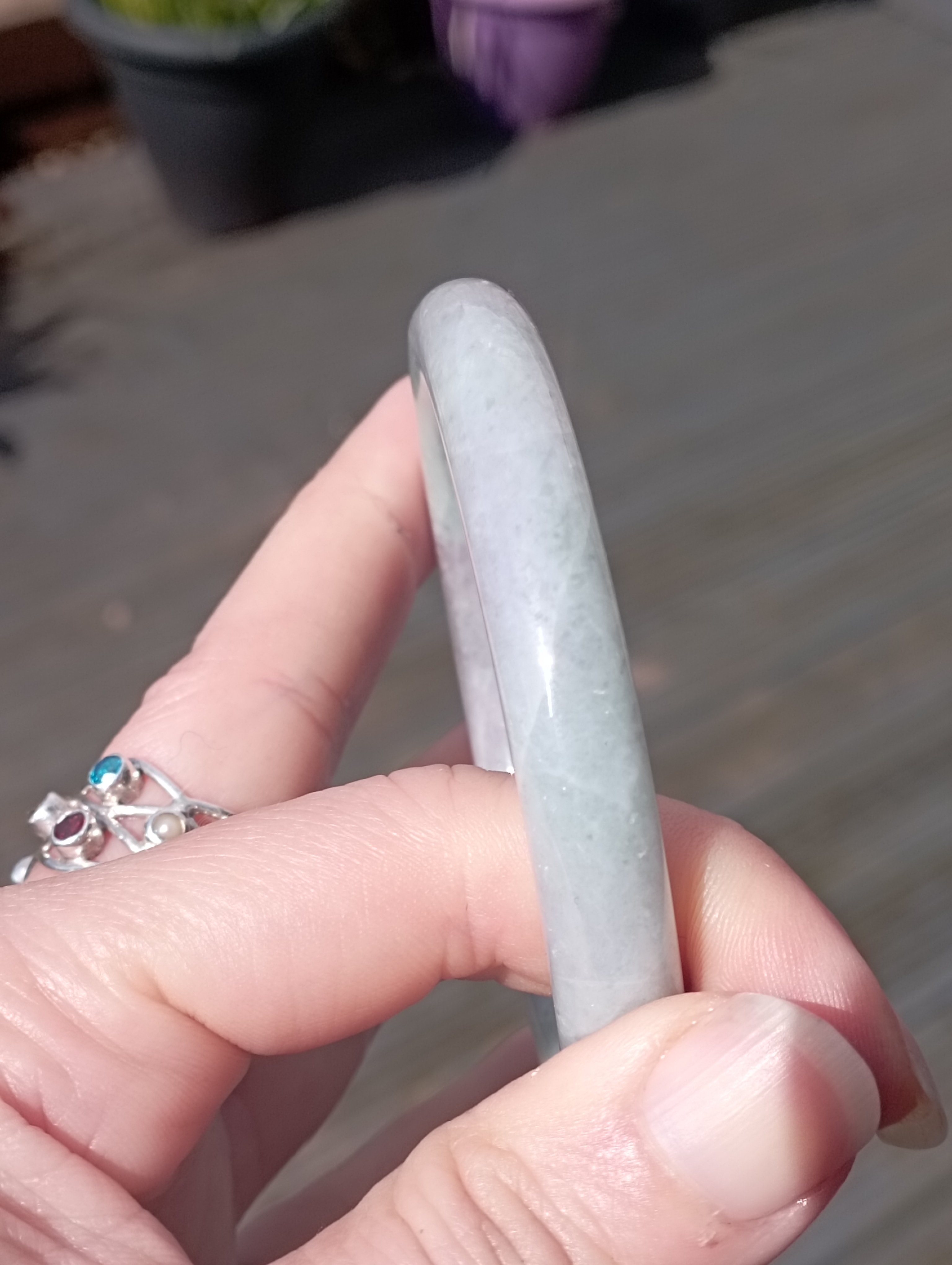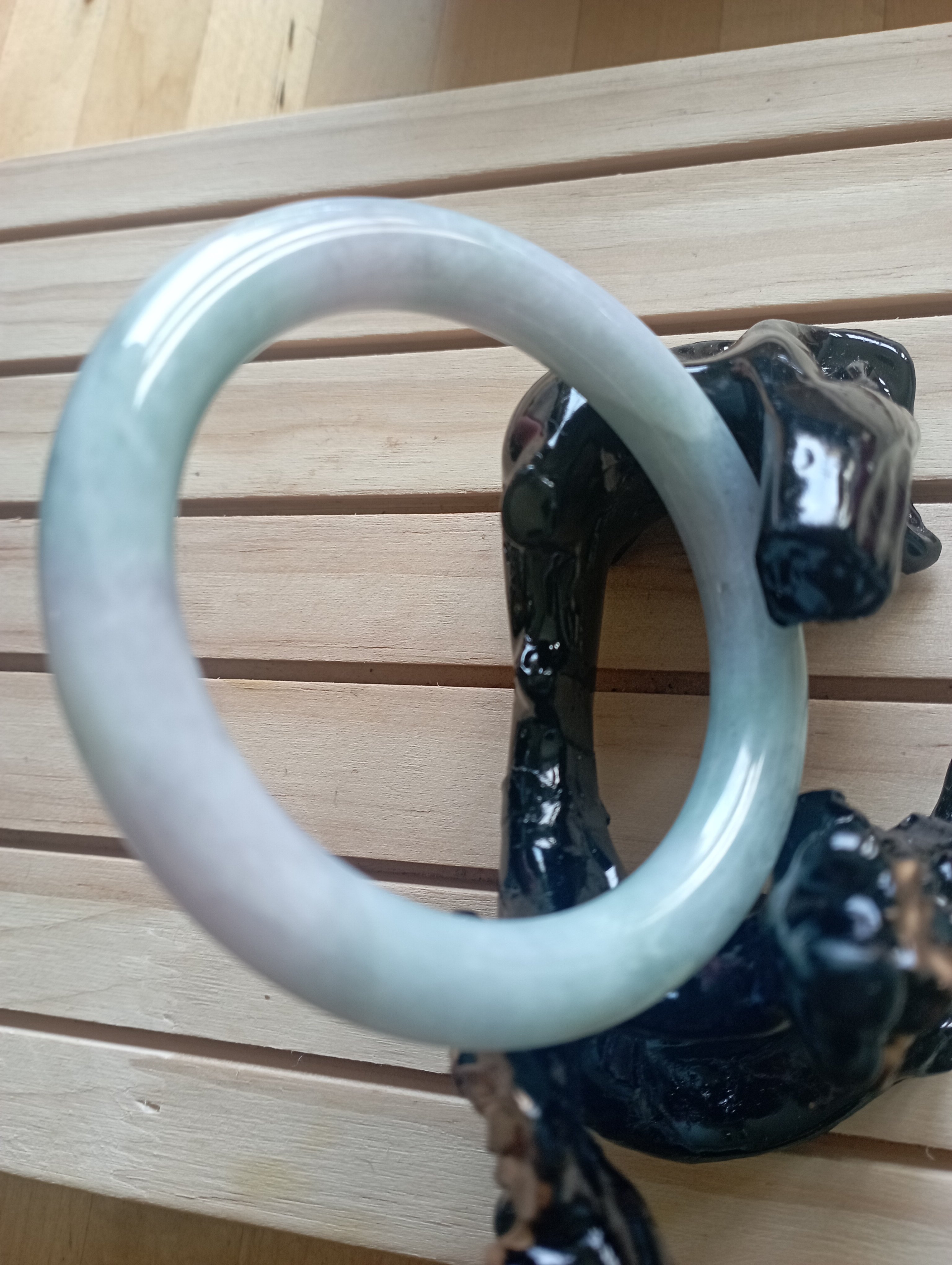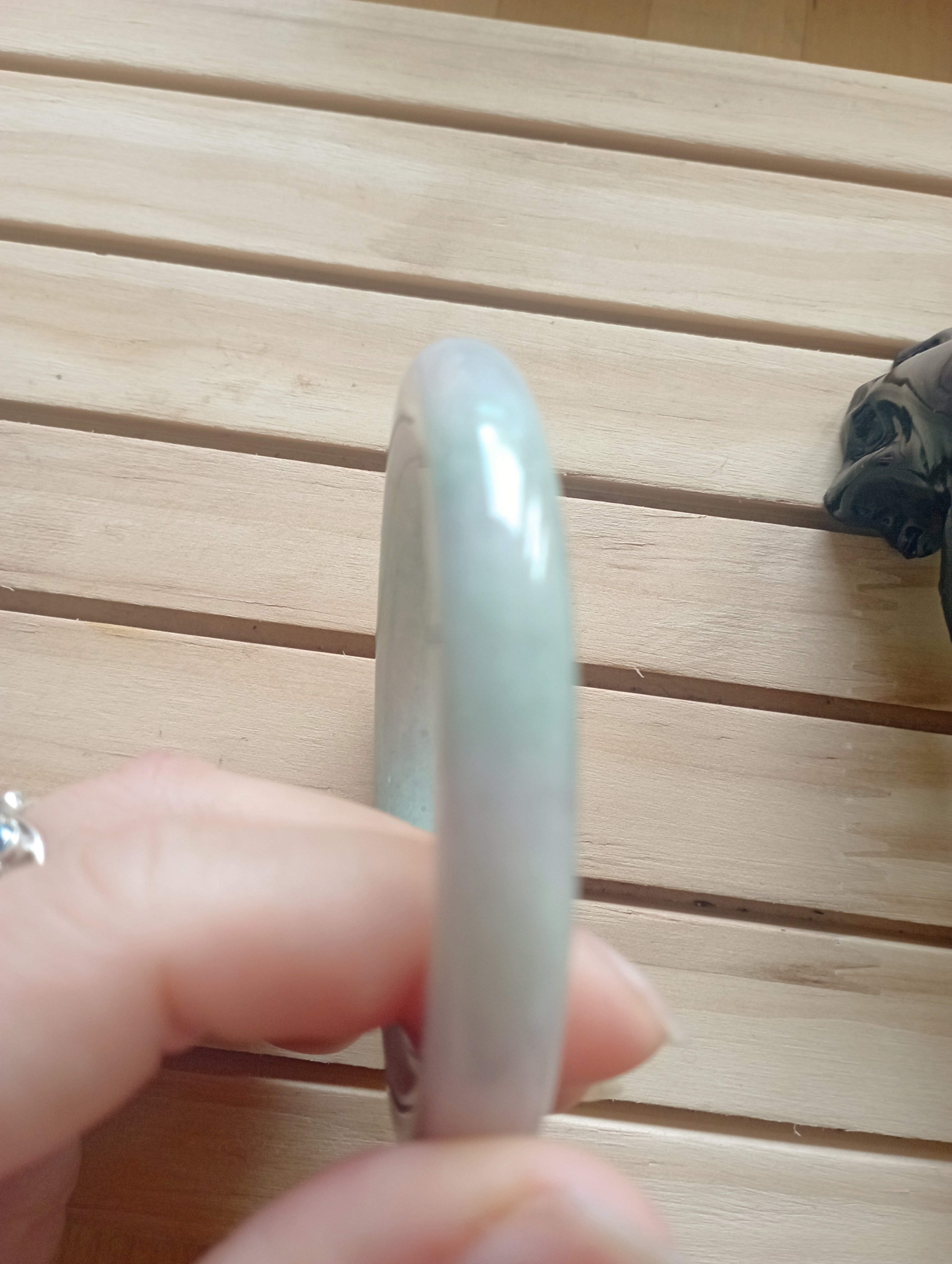 Due to its shape, size and weight, it is very comfortable to wear, this round bangle fits up to 57mm, weighs 48.22g and measures 55.5 X 9.1 X 10mm.it has internal lines and cracks that do not affect usage. The colour is beautiful and although points have been taken due to its imperfections, it is nevertheless a lovely one. Comes with a certificate of authenticity, £149