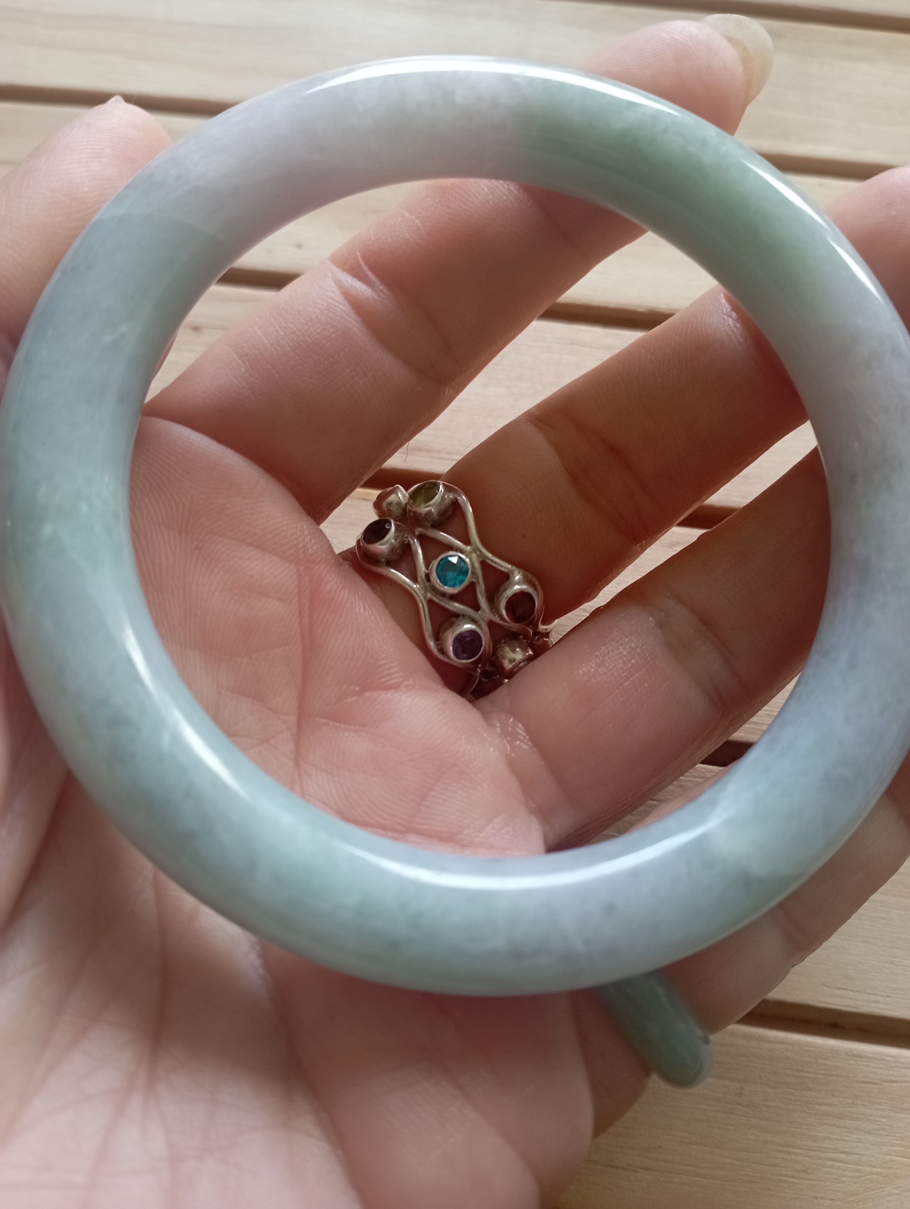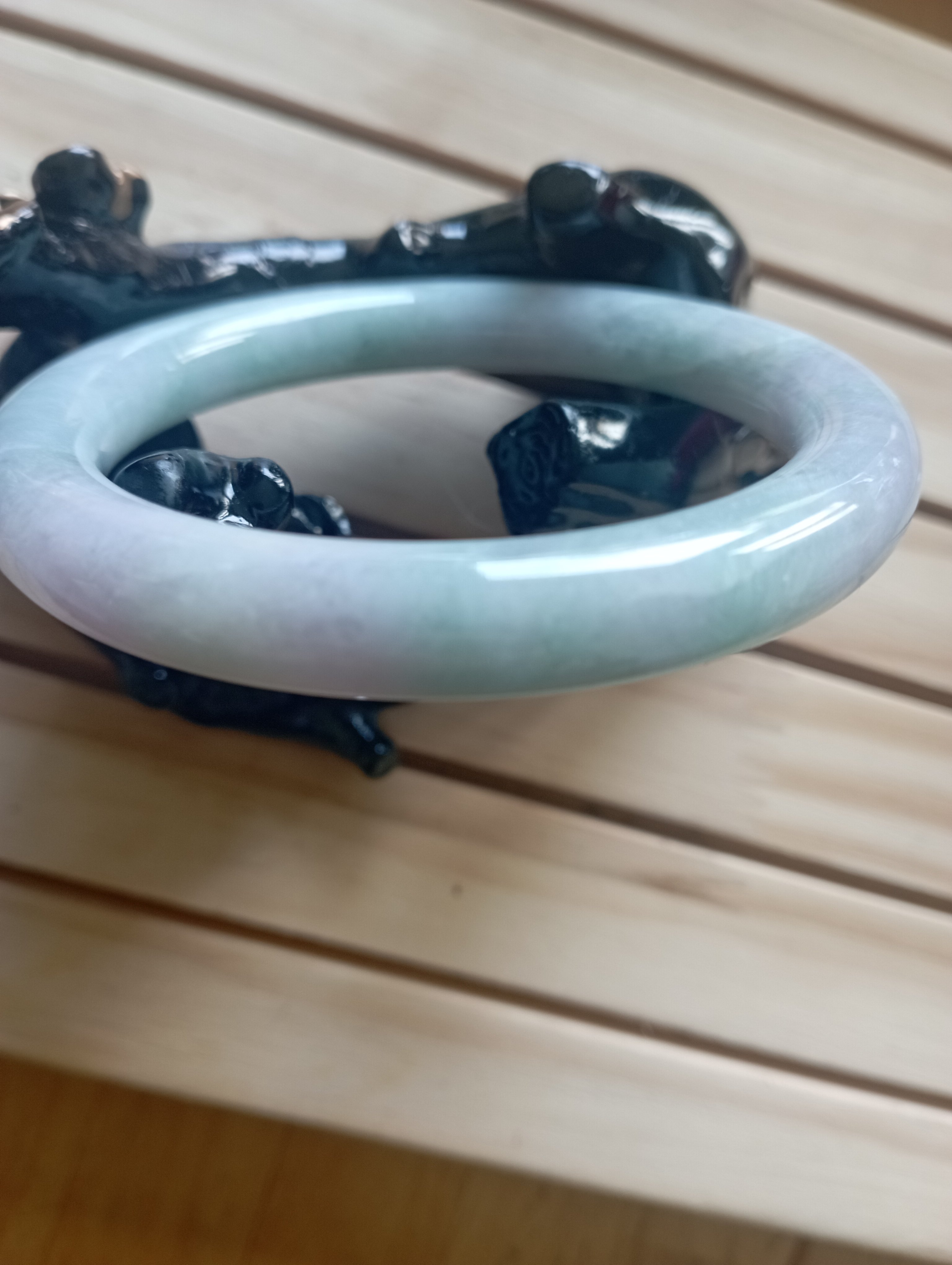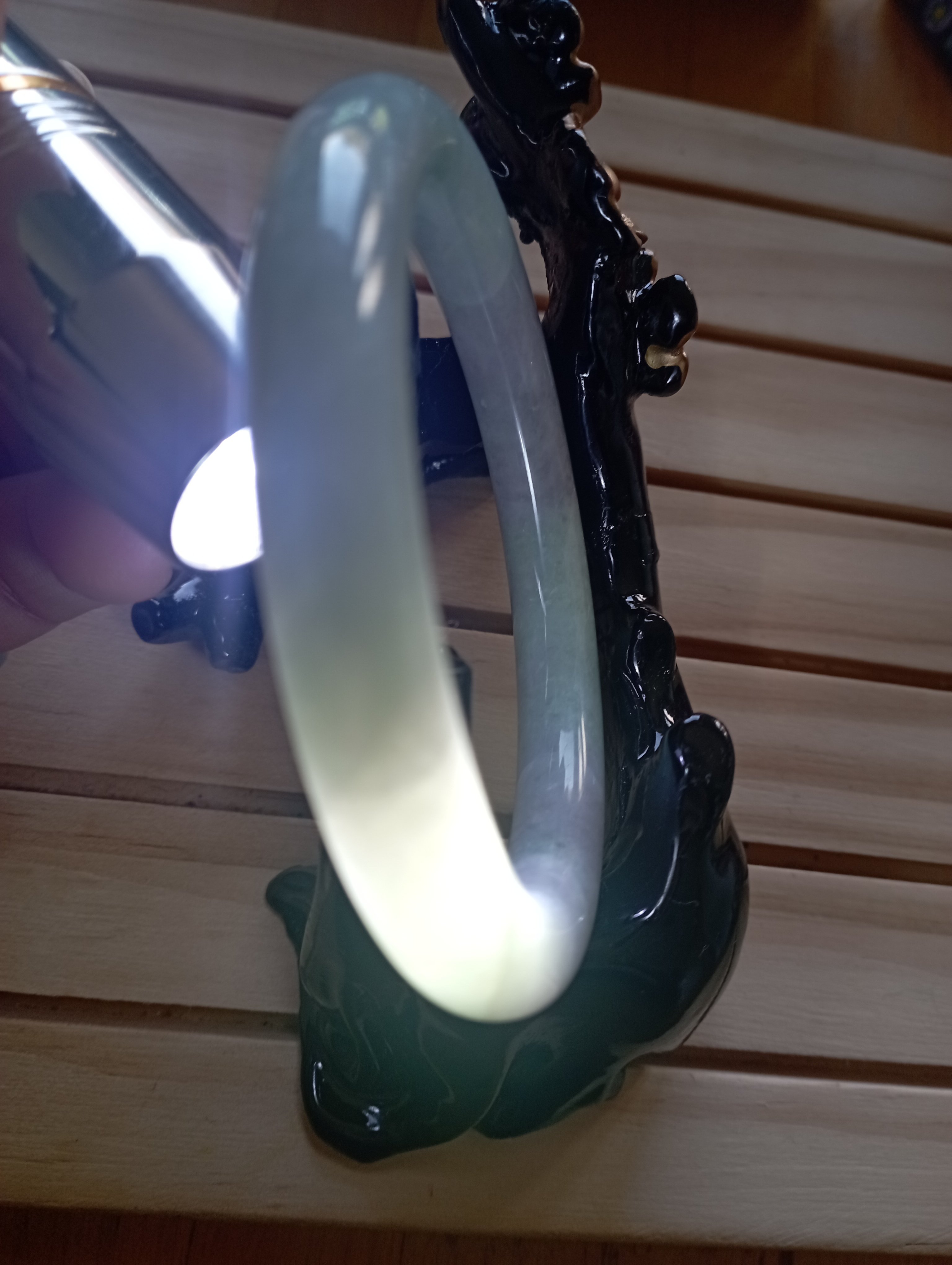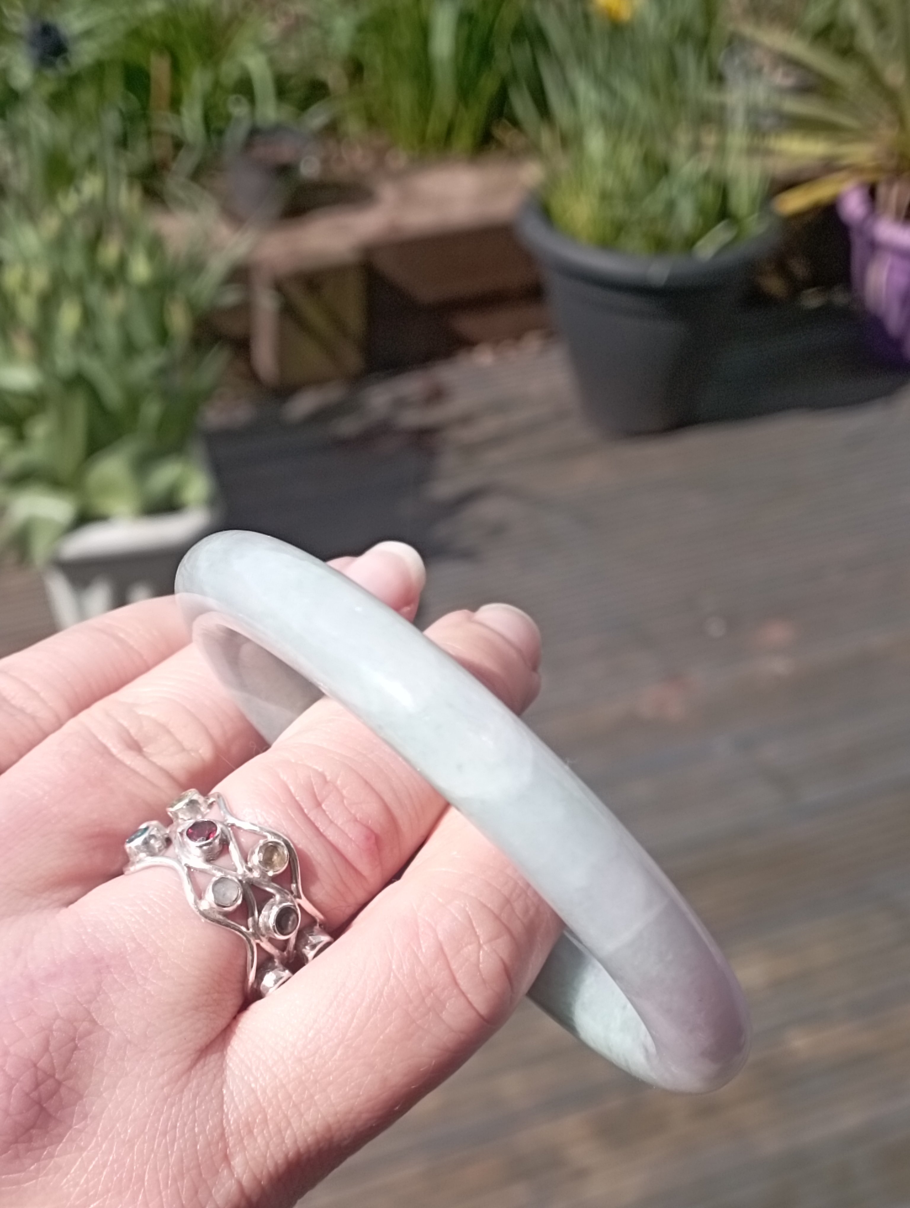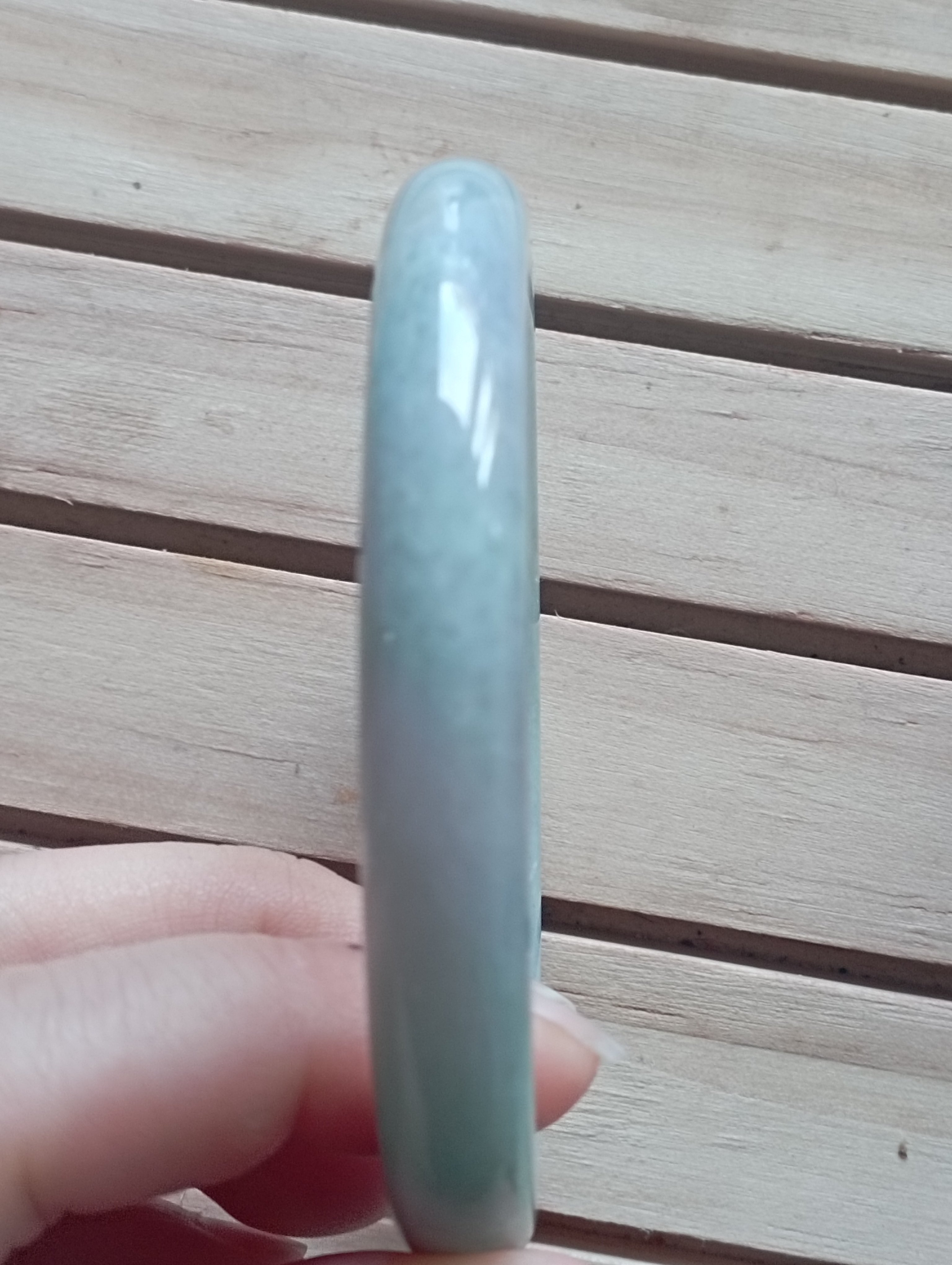 Due to its shape, size and weight, it is very comfortable to wear, this round bangle fits up to 57mm, weighs 48.22g and measures 55.5 X 9.1 X 10mm.it has internal lines and cracks that do not affect usage. The colour is beautiful and although points have been taken due to its imperfections, it is nevertheless a lovely one. Comes with a certificate of authenticity, £149
