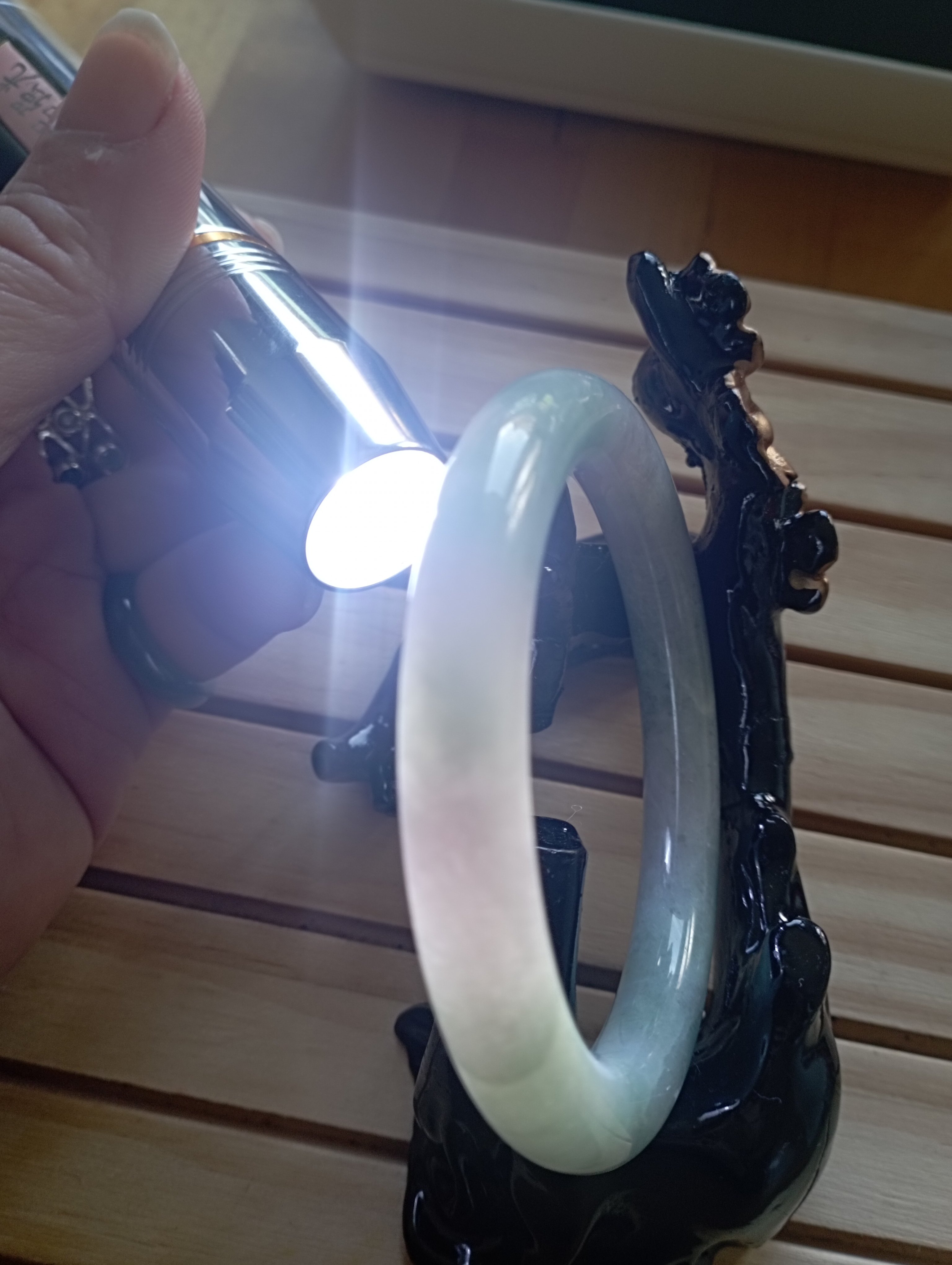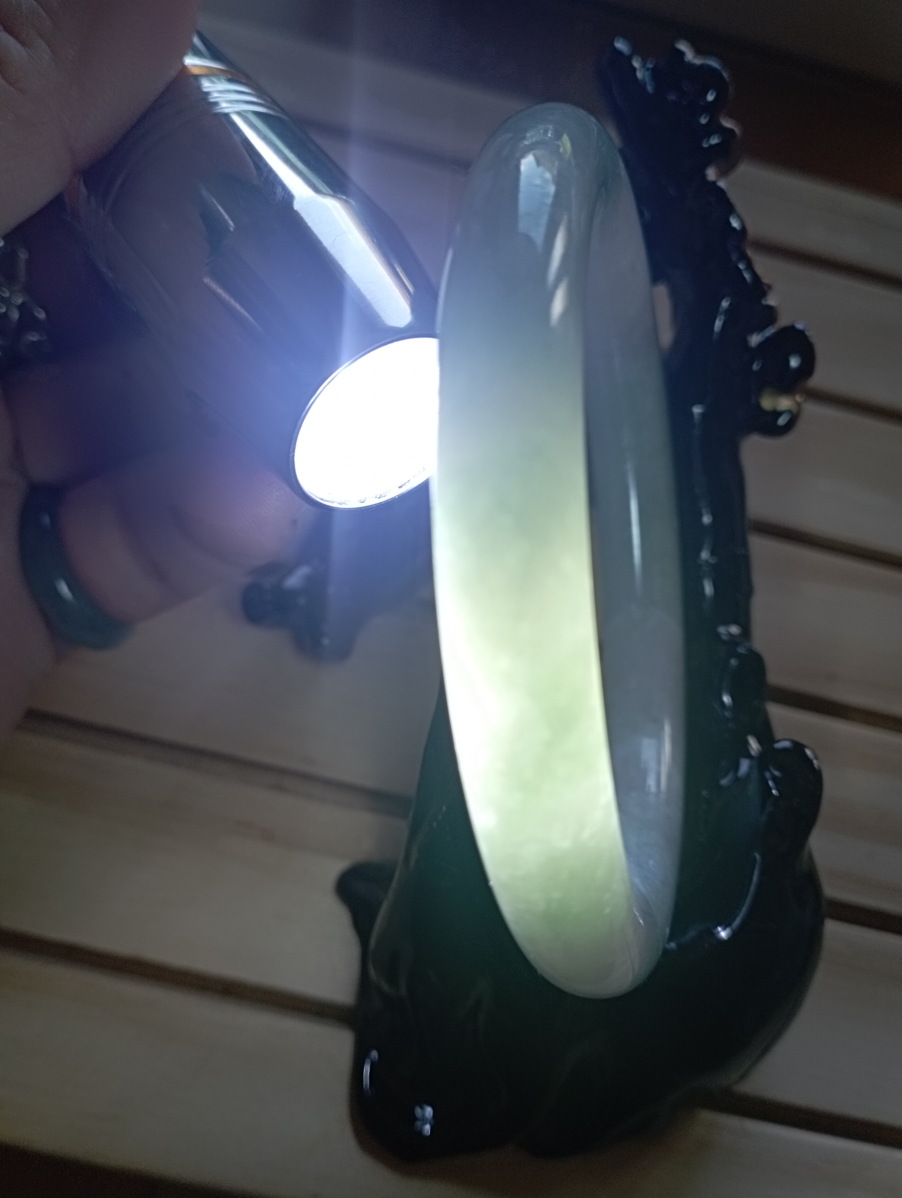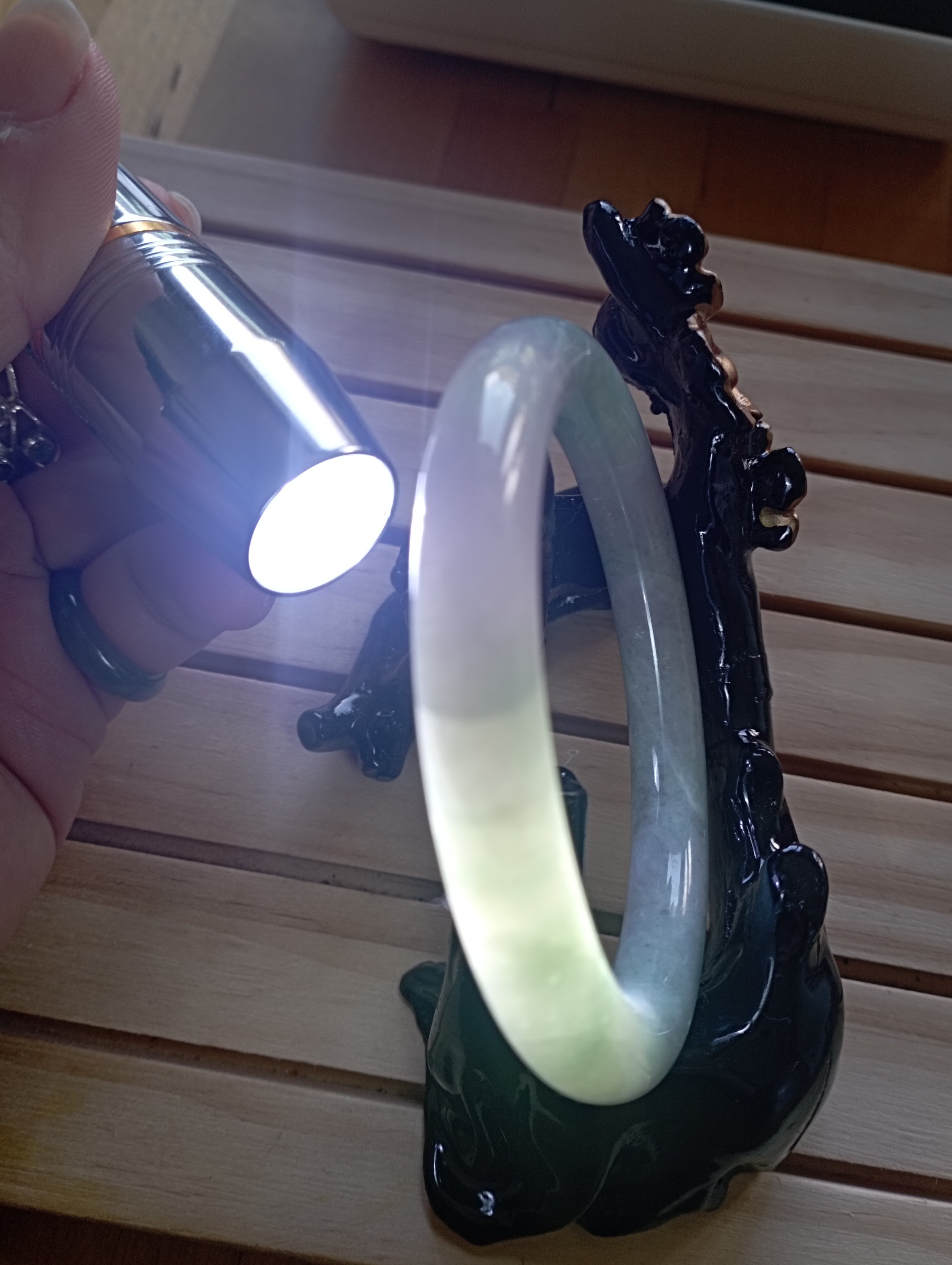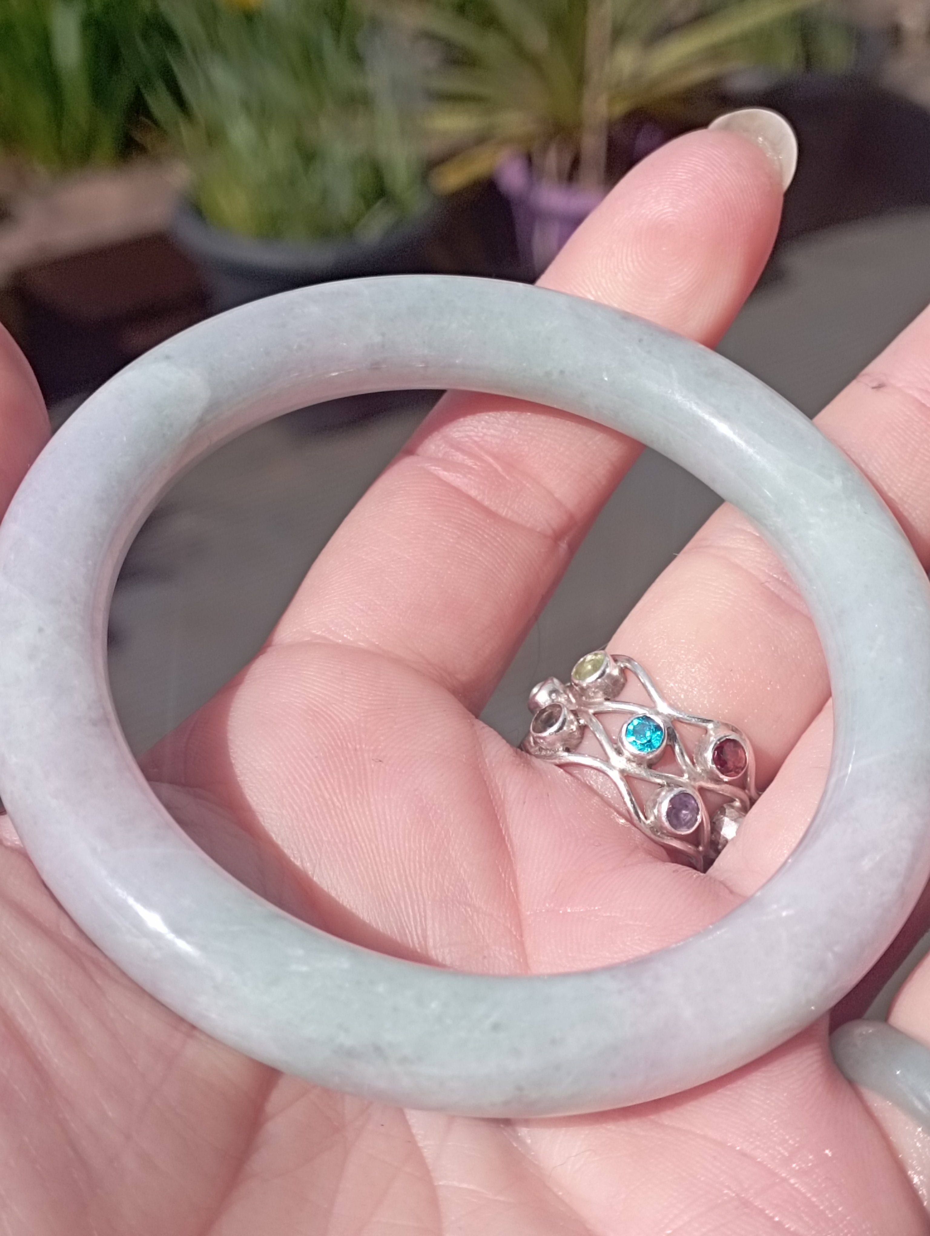 Due to its shape, size and weight, it is very comfortable to wear, this round bangle fits up to 57mm, weighs 48.22g and measures 55.5 X 9.1 X 10mm.it has internal lines and cracks that do not affect usage. The colour is beautiful and although points have been taken due to its imperfections, it is nevertheless a lovely one. Comes with a certificate of authenticity, £149