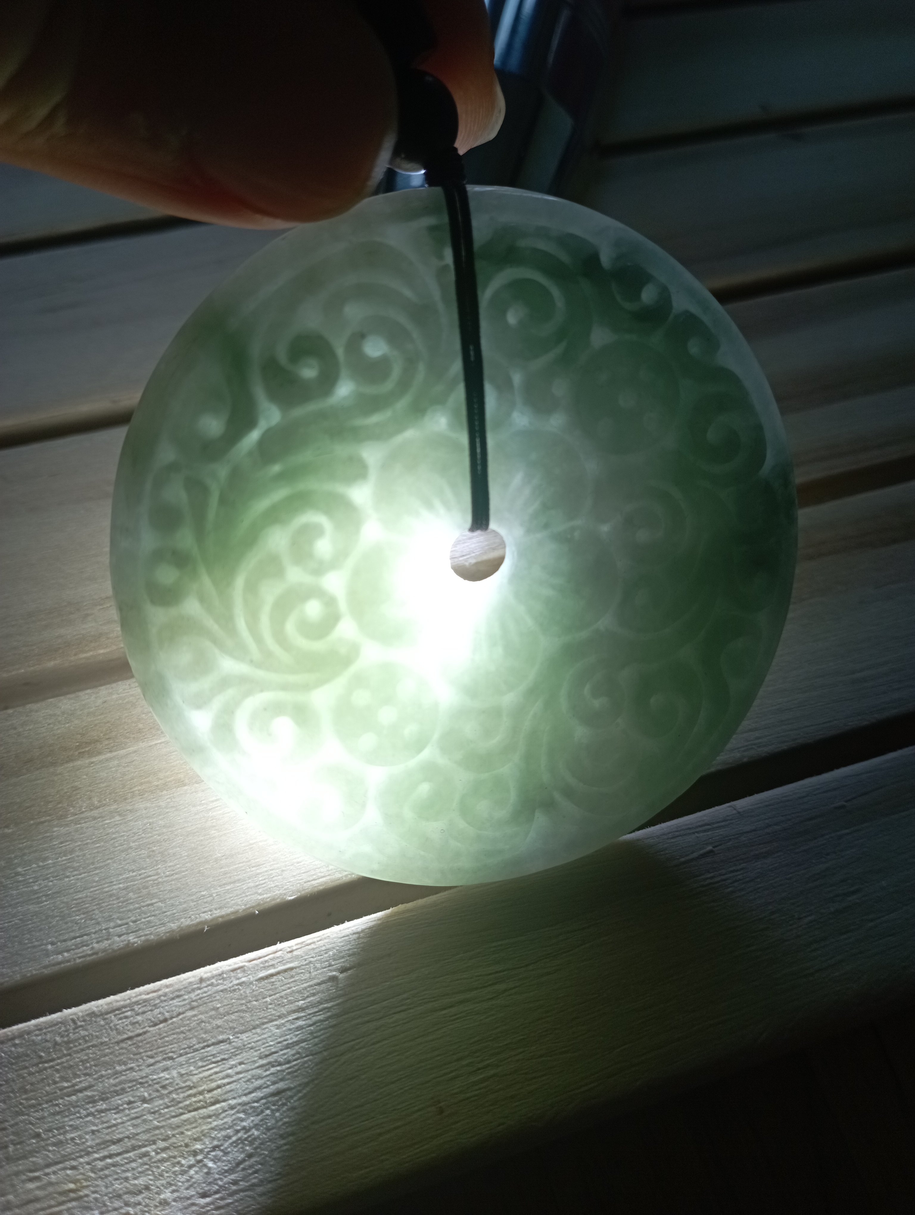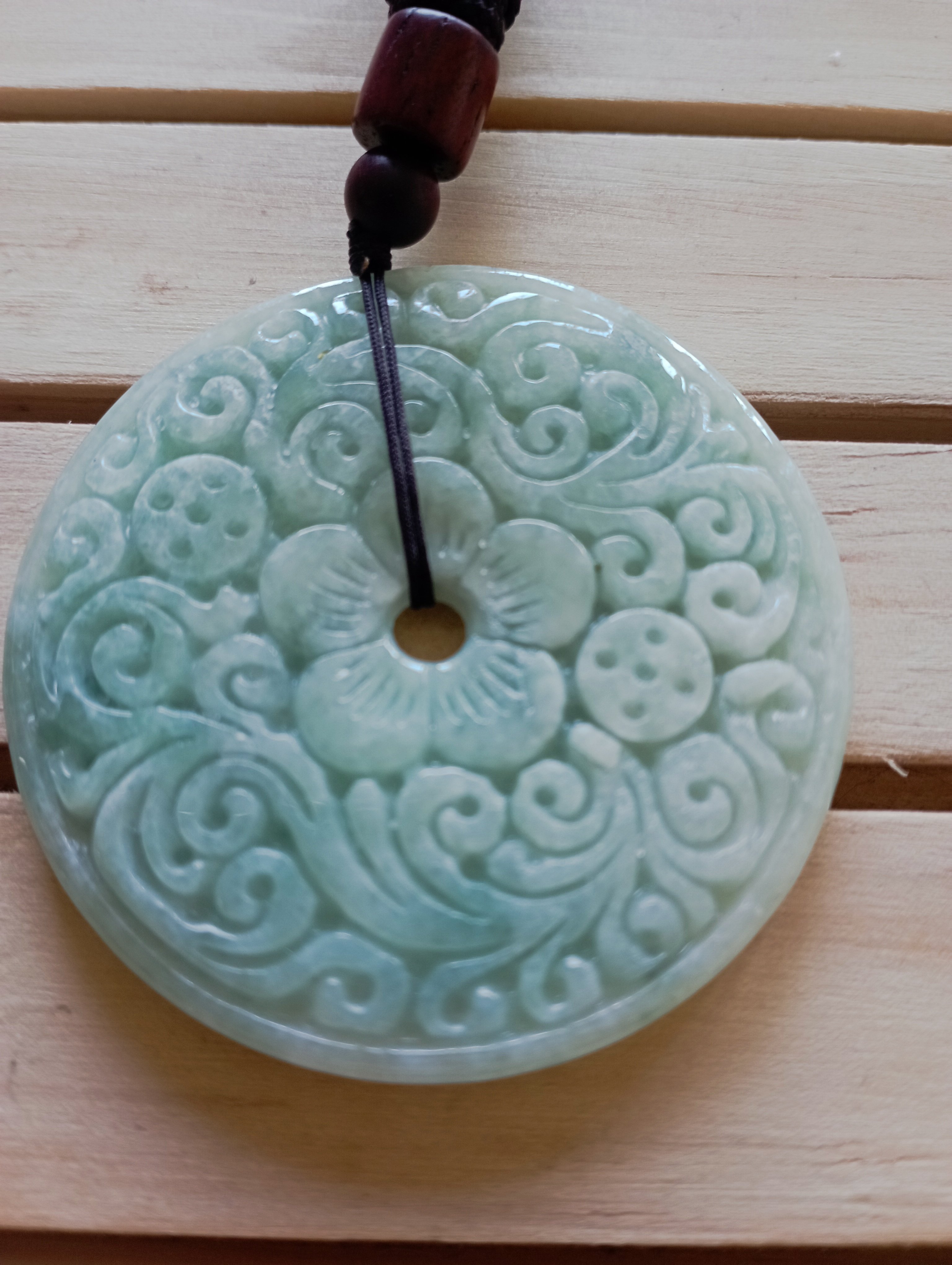 Gorgeous engraved donut measures 51.5 X 5.3mm, the engraving includes a peach blossom in the middle that signify love of life, reaching for the heights and elegance. Coins that signify wealth and clouds that signify good luck, fortune, celebrations, wishing for the best in life.