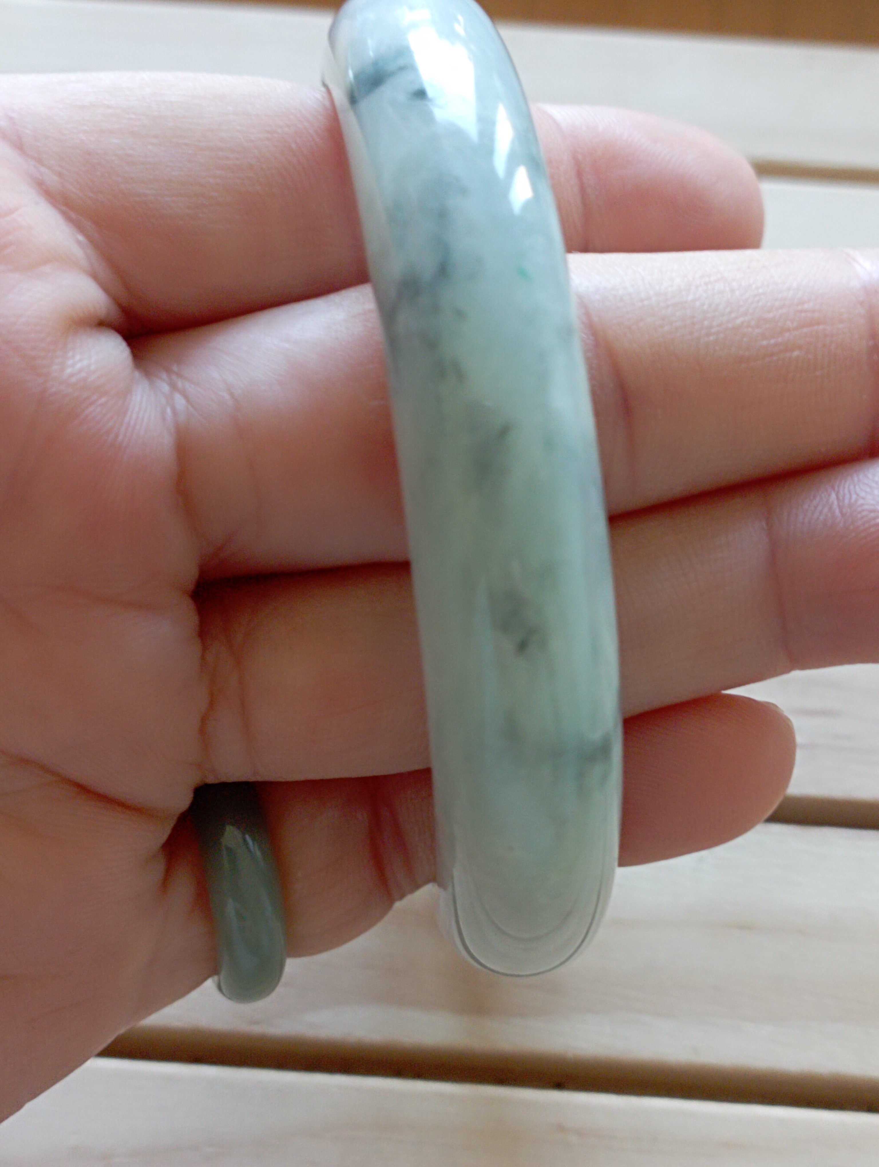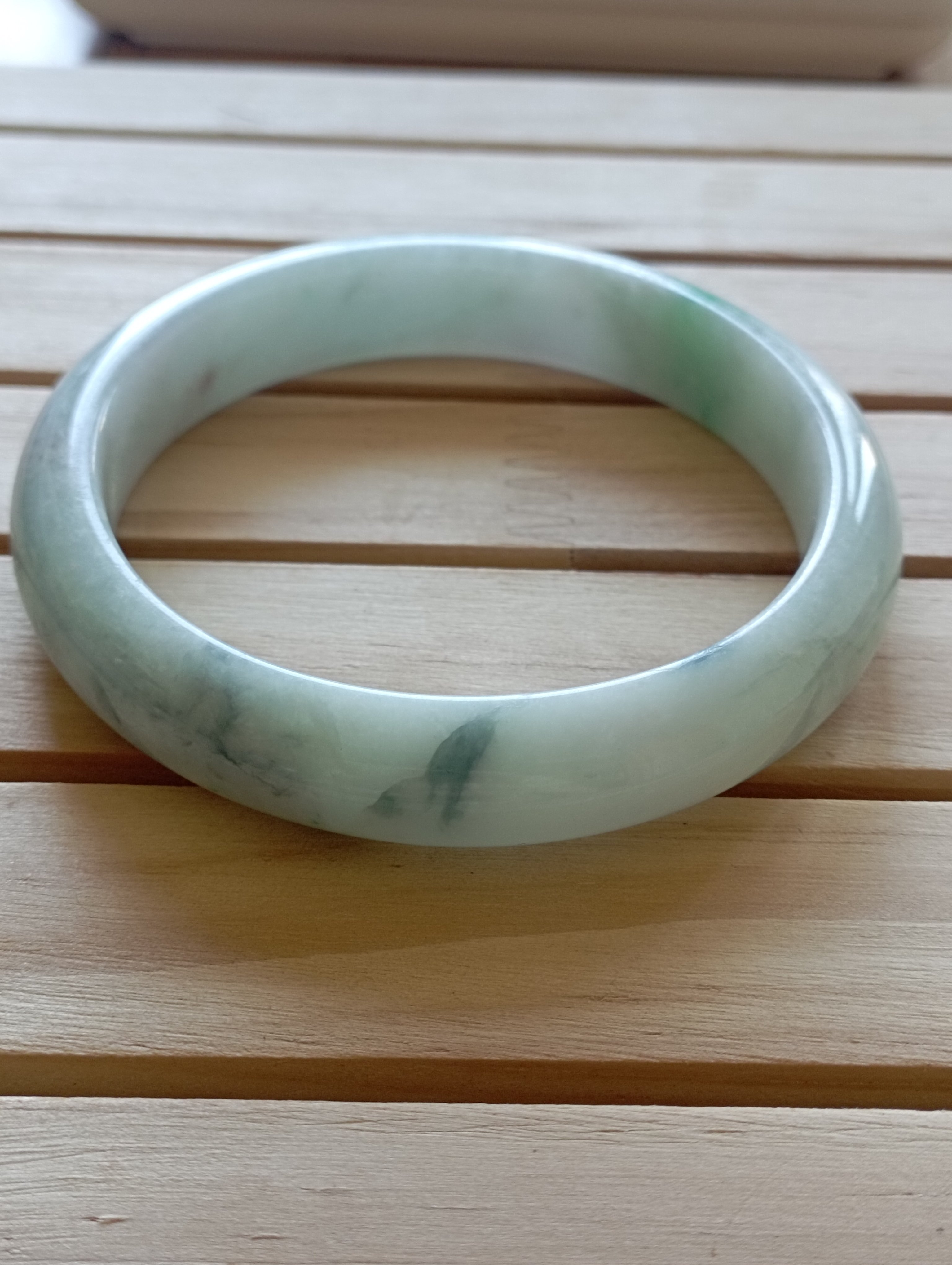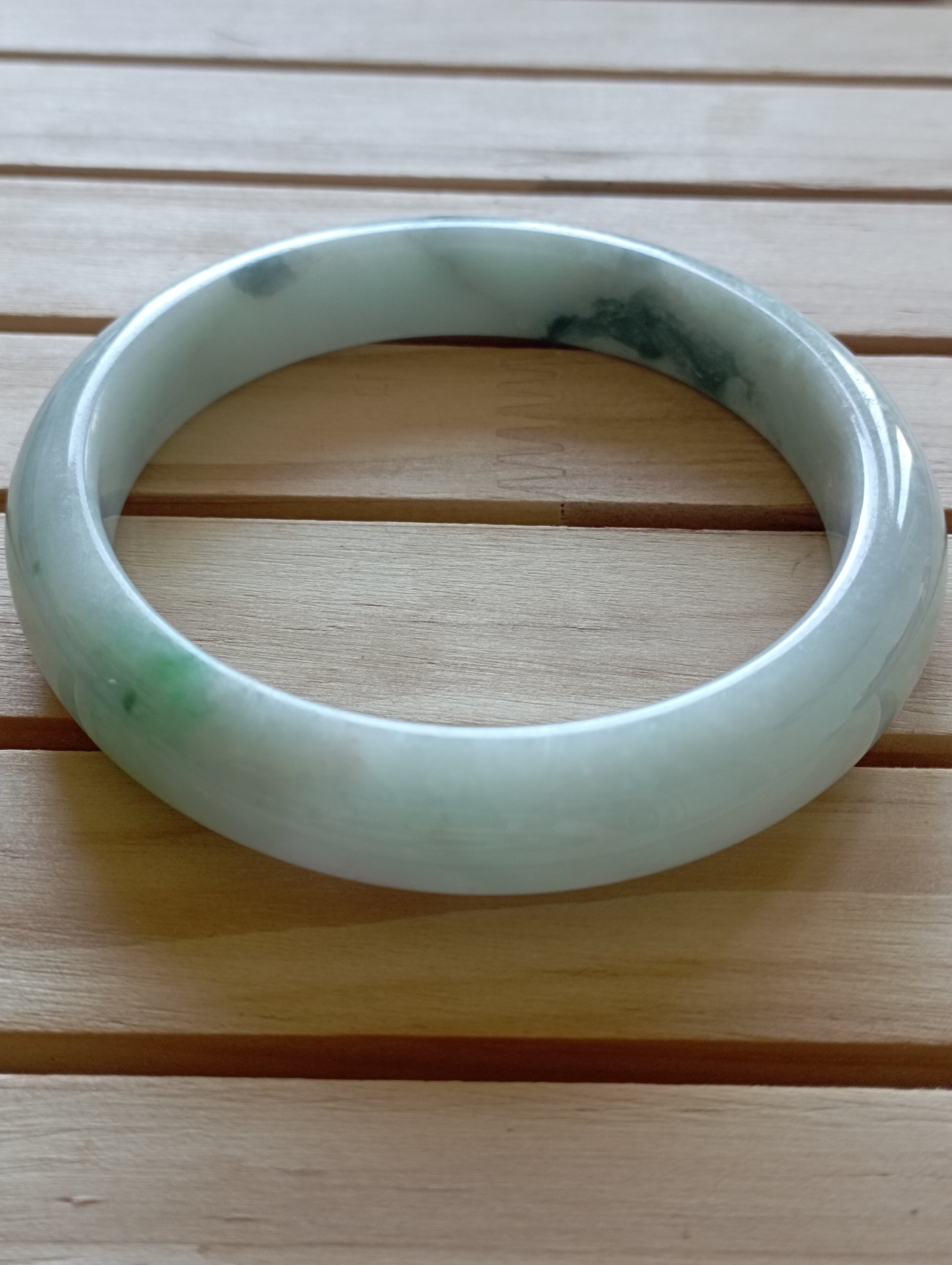 A light green bangle with lovely apple bloom that will go well with any attire. Measures 58 x 12.1 X 9mm, comes with a certificate of authenticity £140