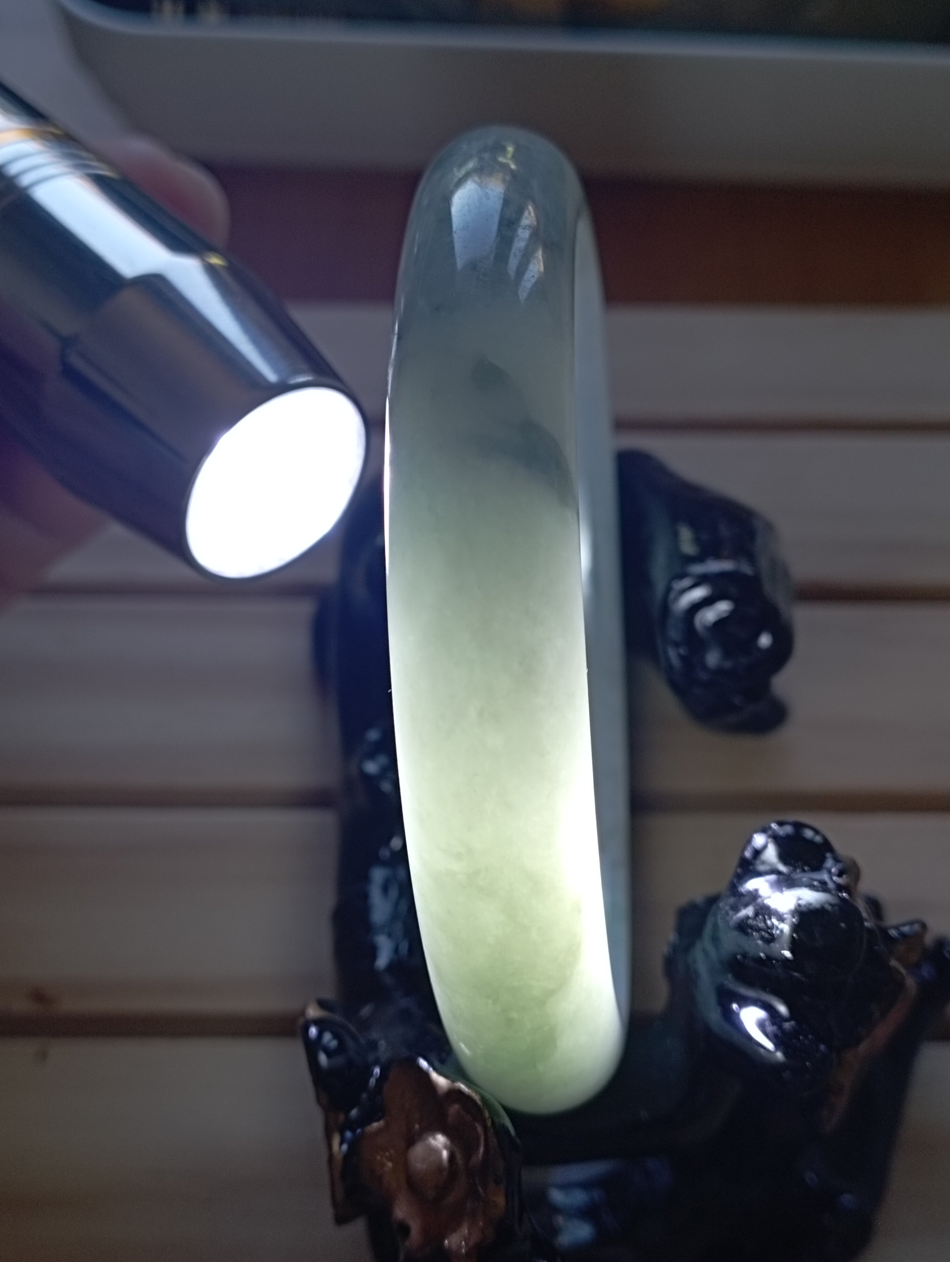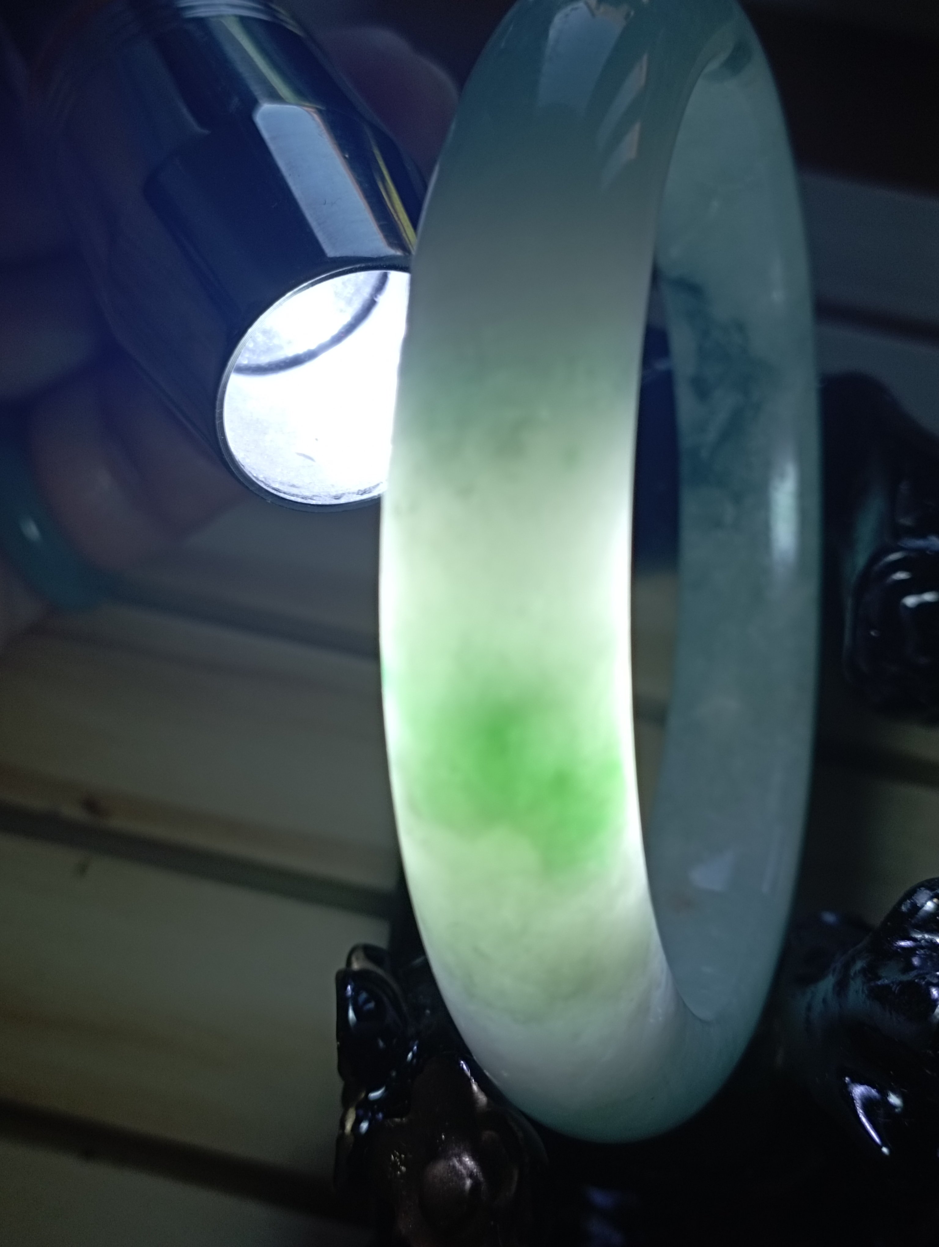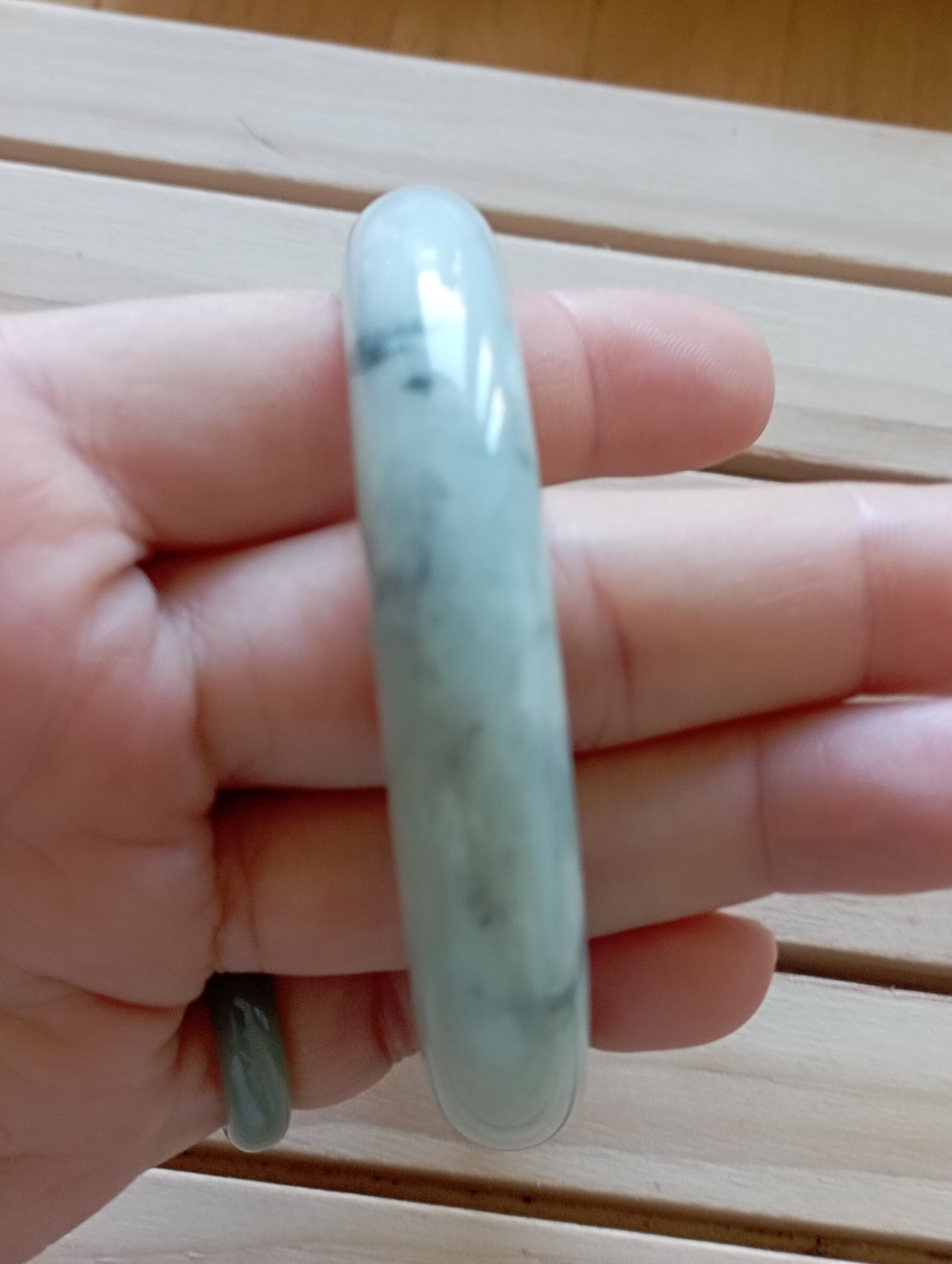 A light green bangle with lovely apple bloom that will go well with any attire. Measures 58 x 12.1 X 9mm, comes with a certificate of authenticity £140
