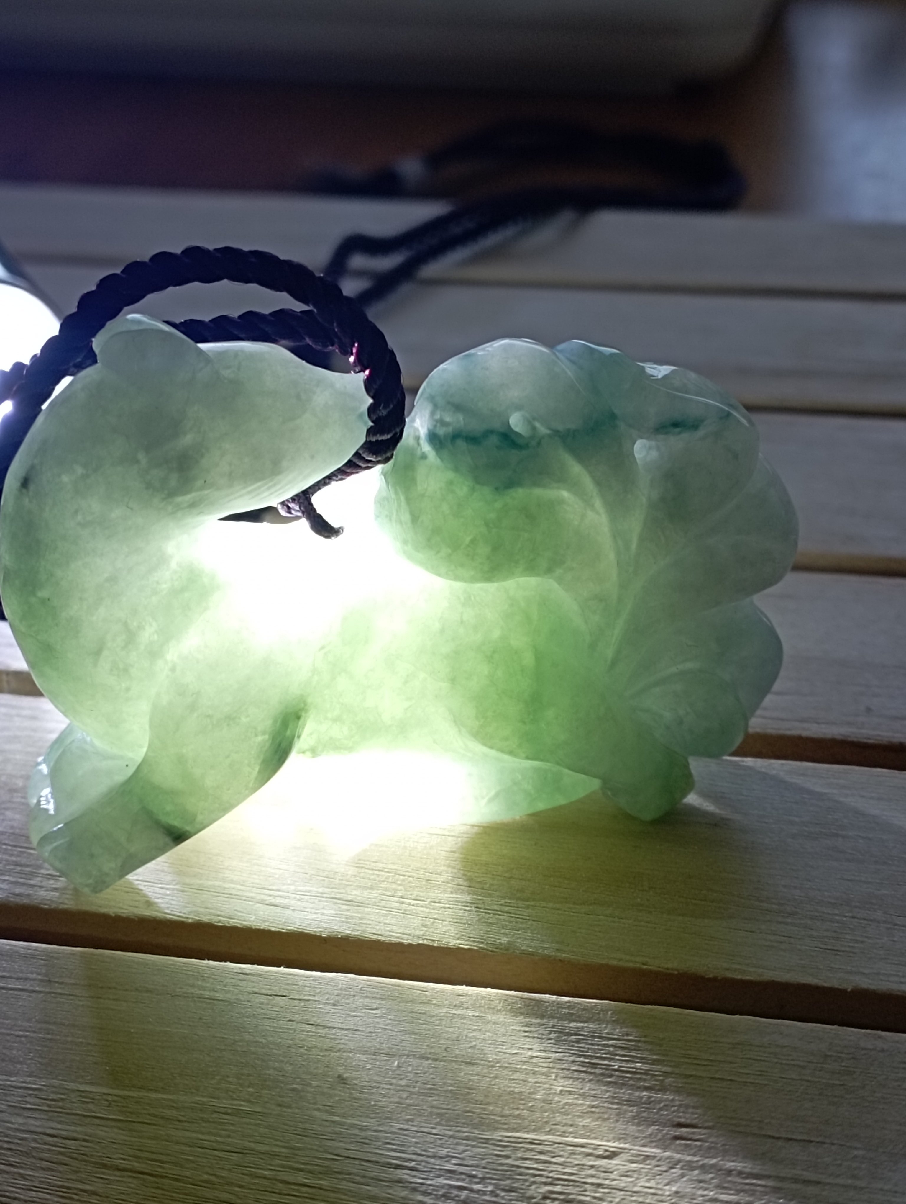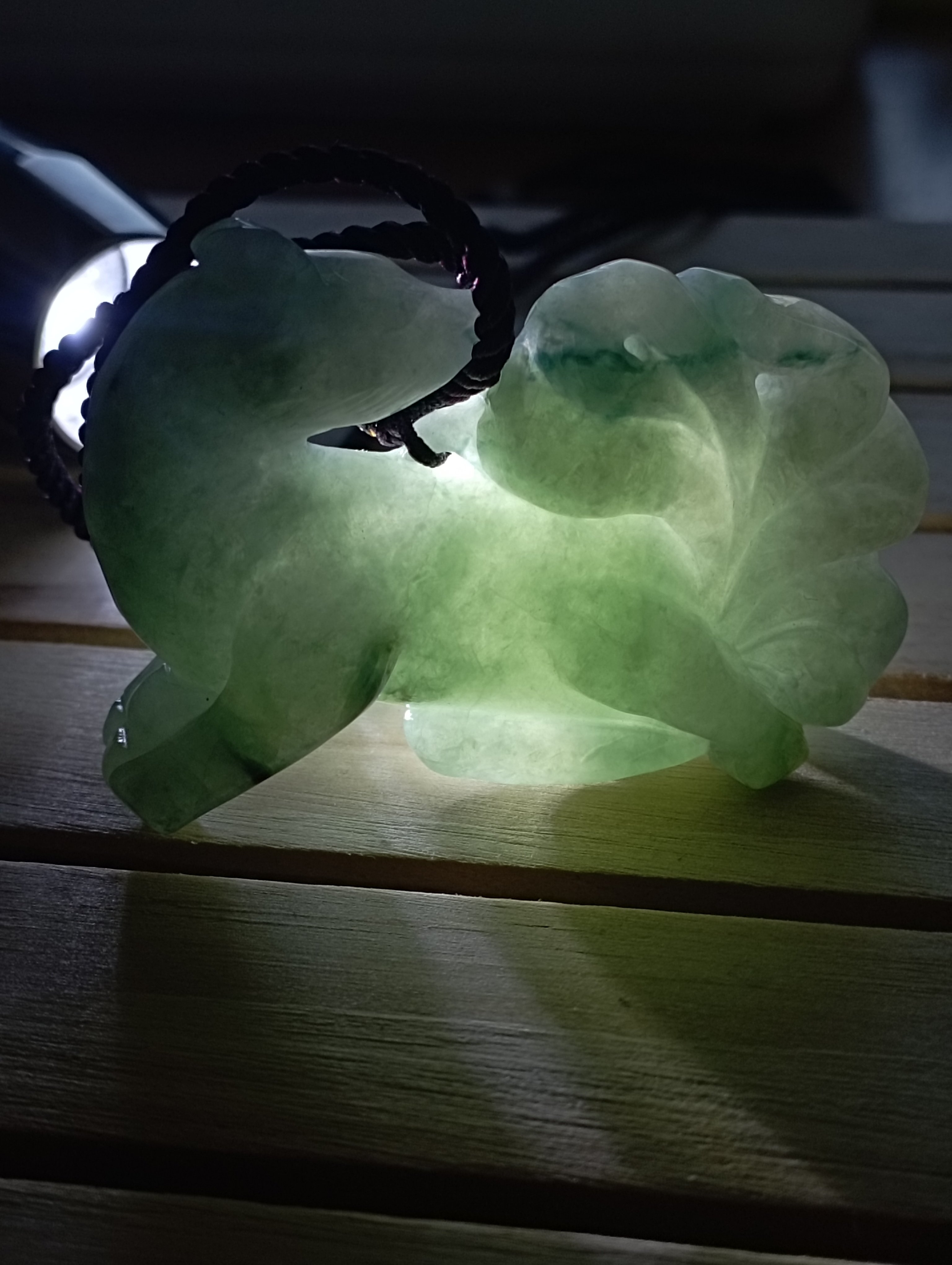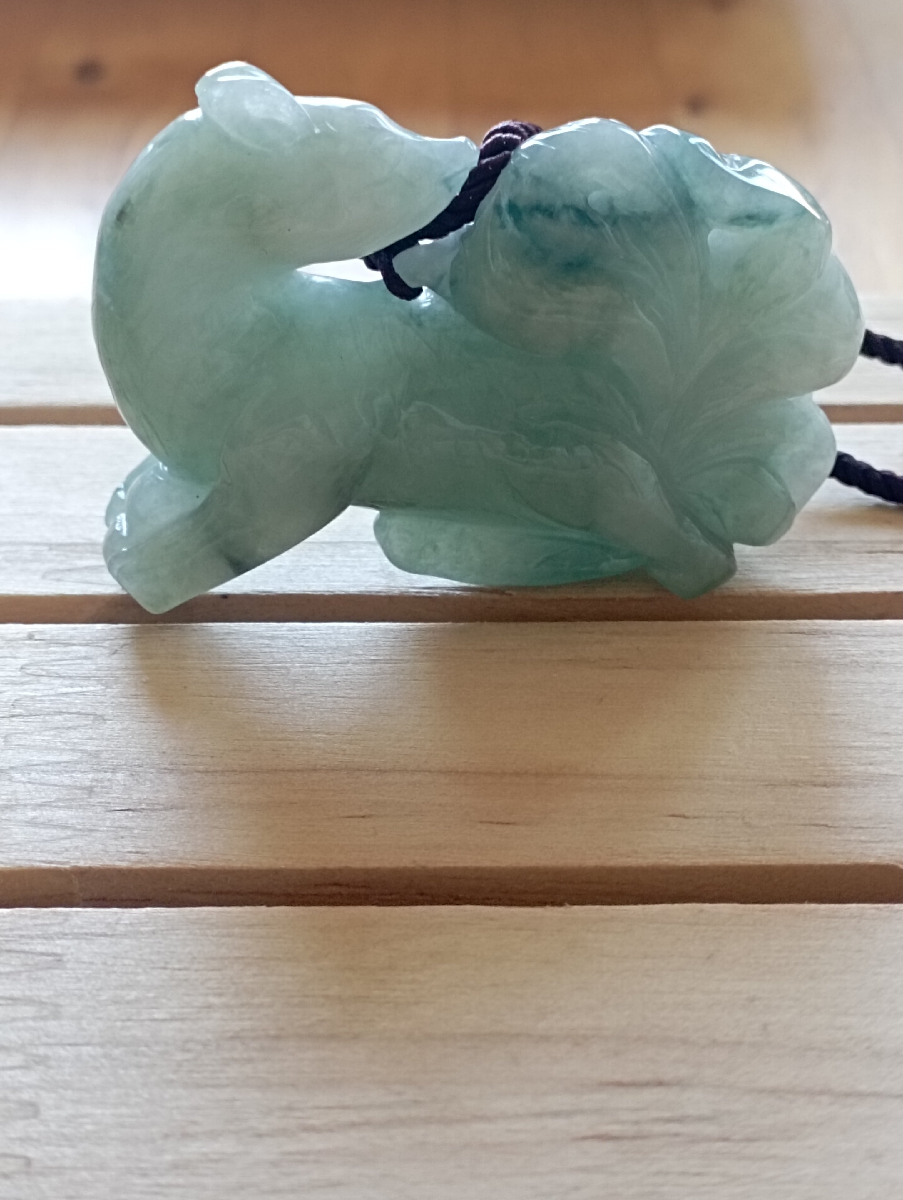 This pendant is in a lovely light green with blue blooms, measures 40.5 X 50.2 X 15.4mm, can be used as a display item too. Comes with a certificate of authenticity £99