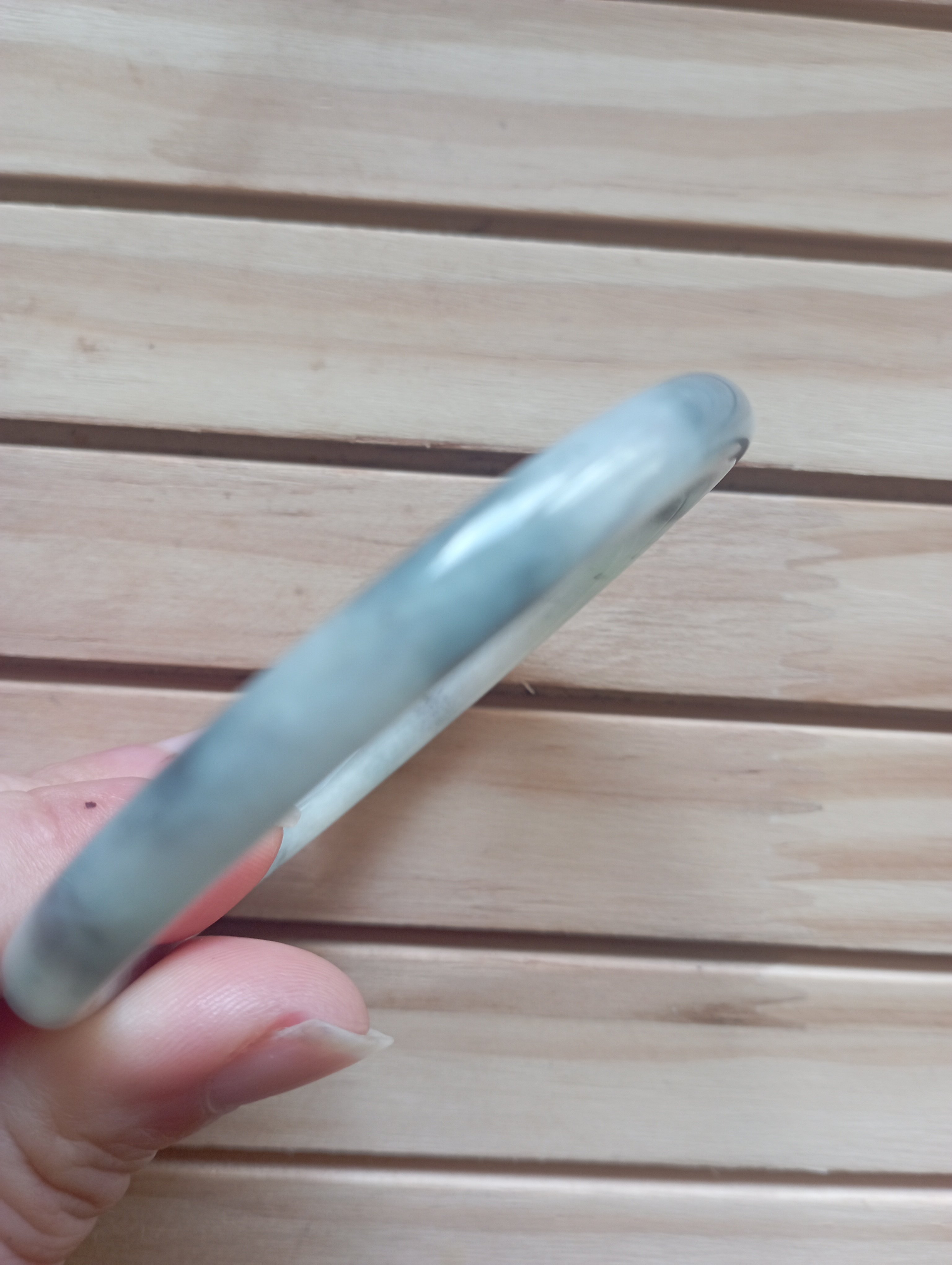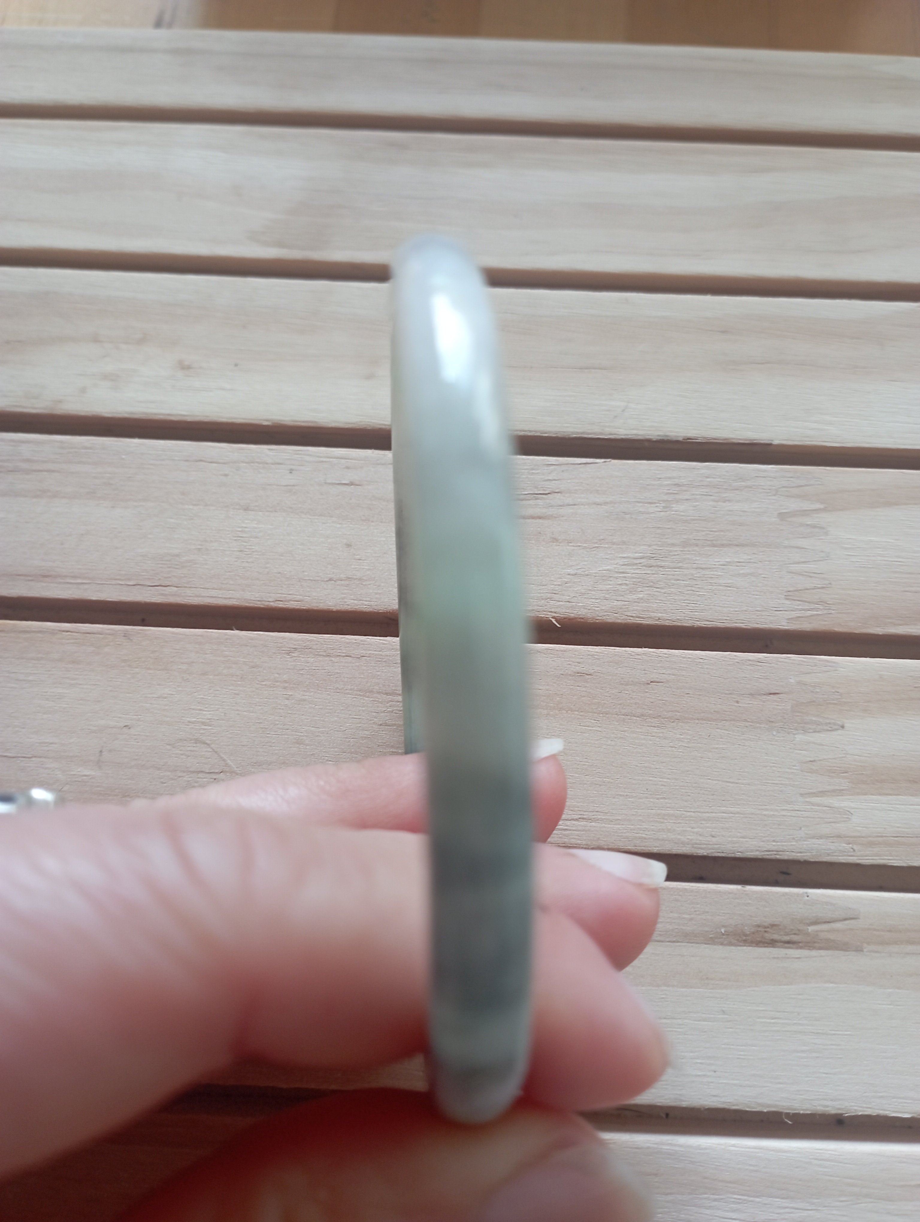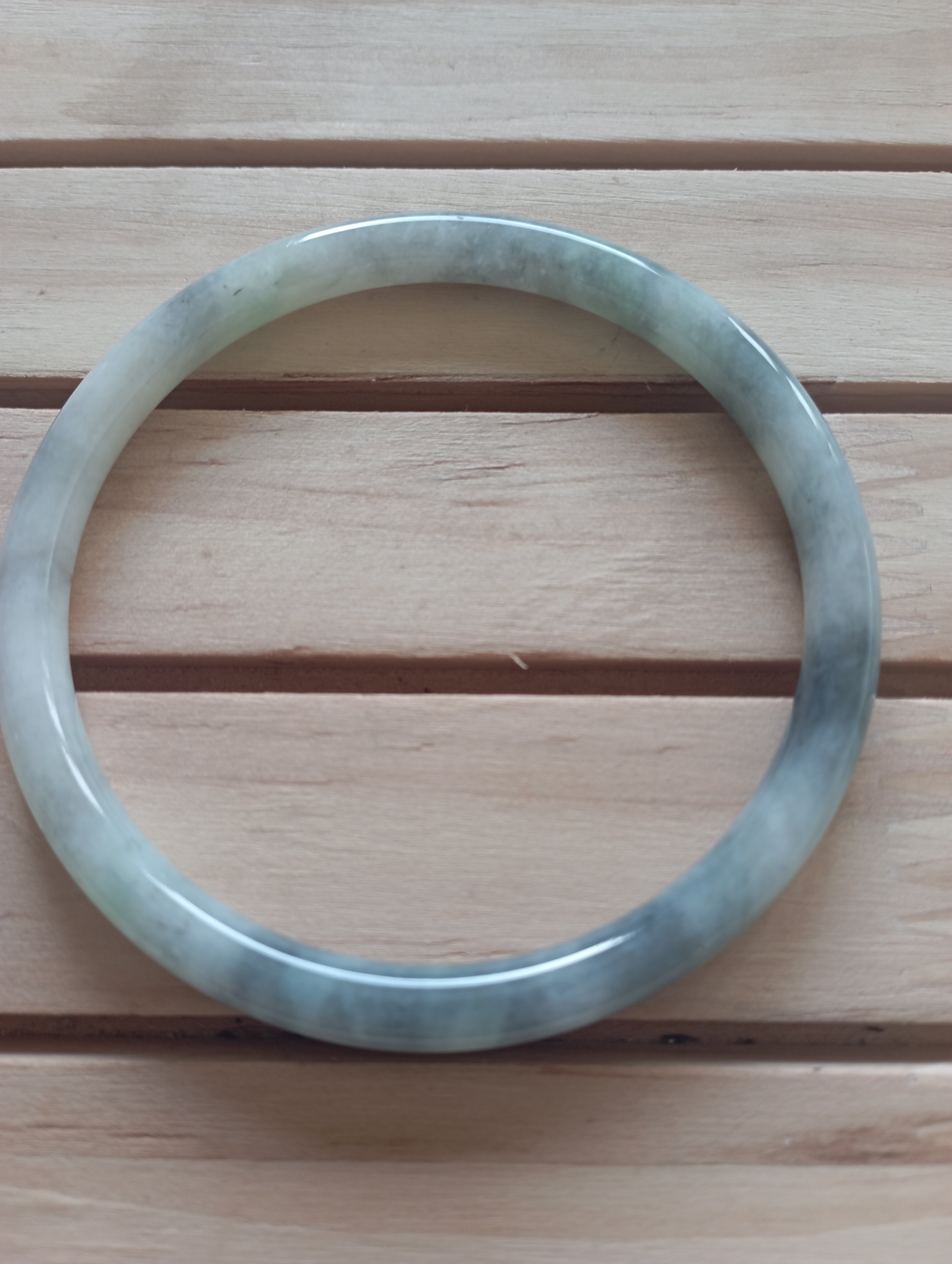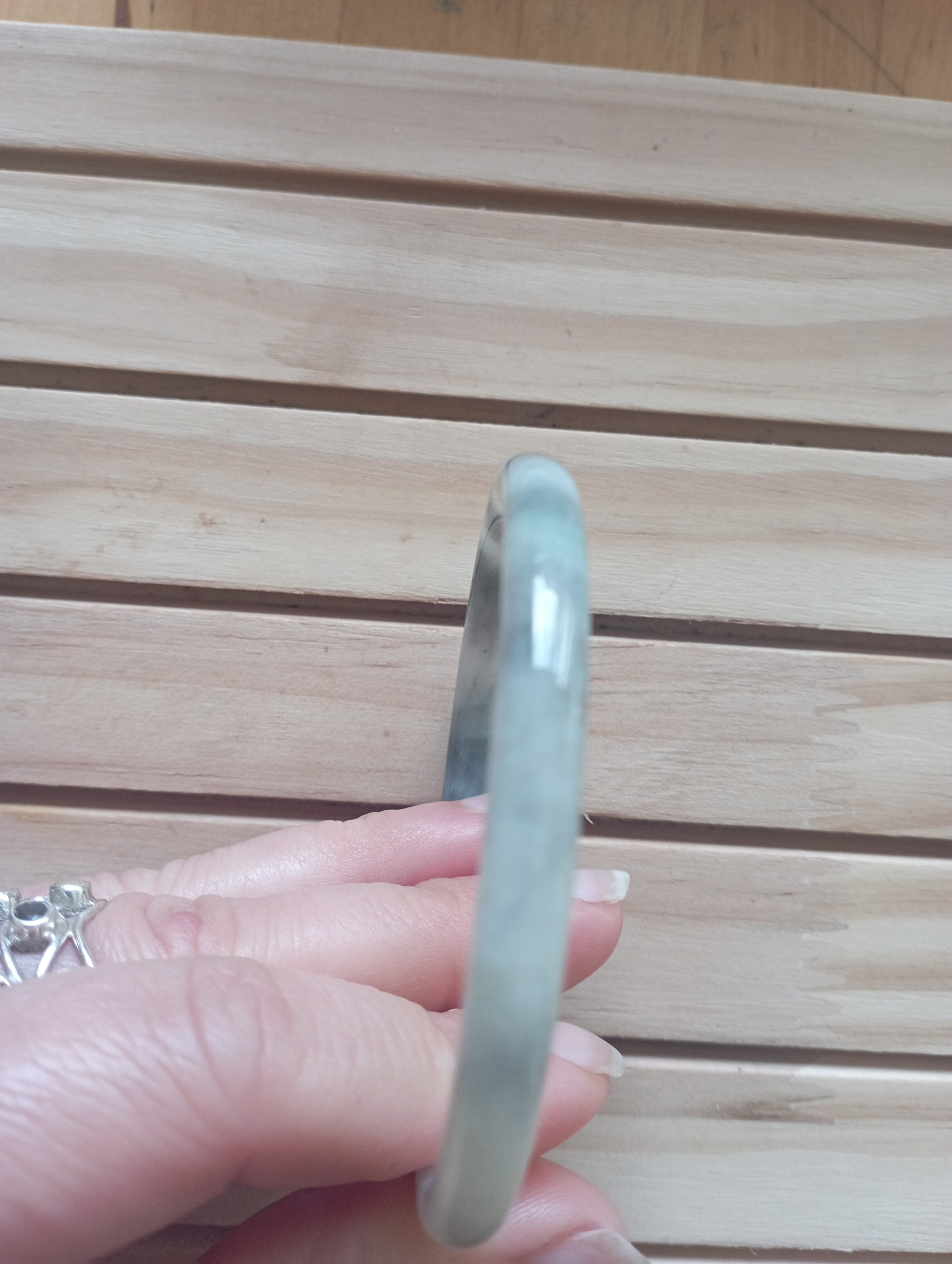 A very unique bangle in natural Chinese water painting style with zebra like stripes and green in places. Can be paired with another similar size and colour bangle to make a pair of ding dang.