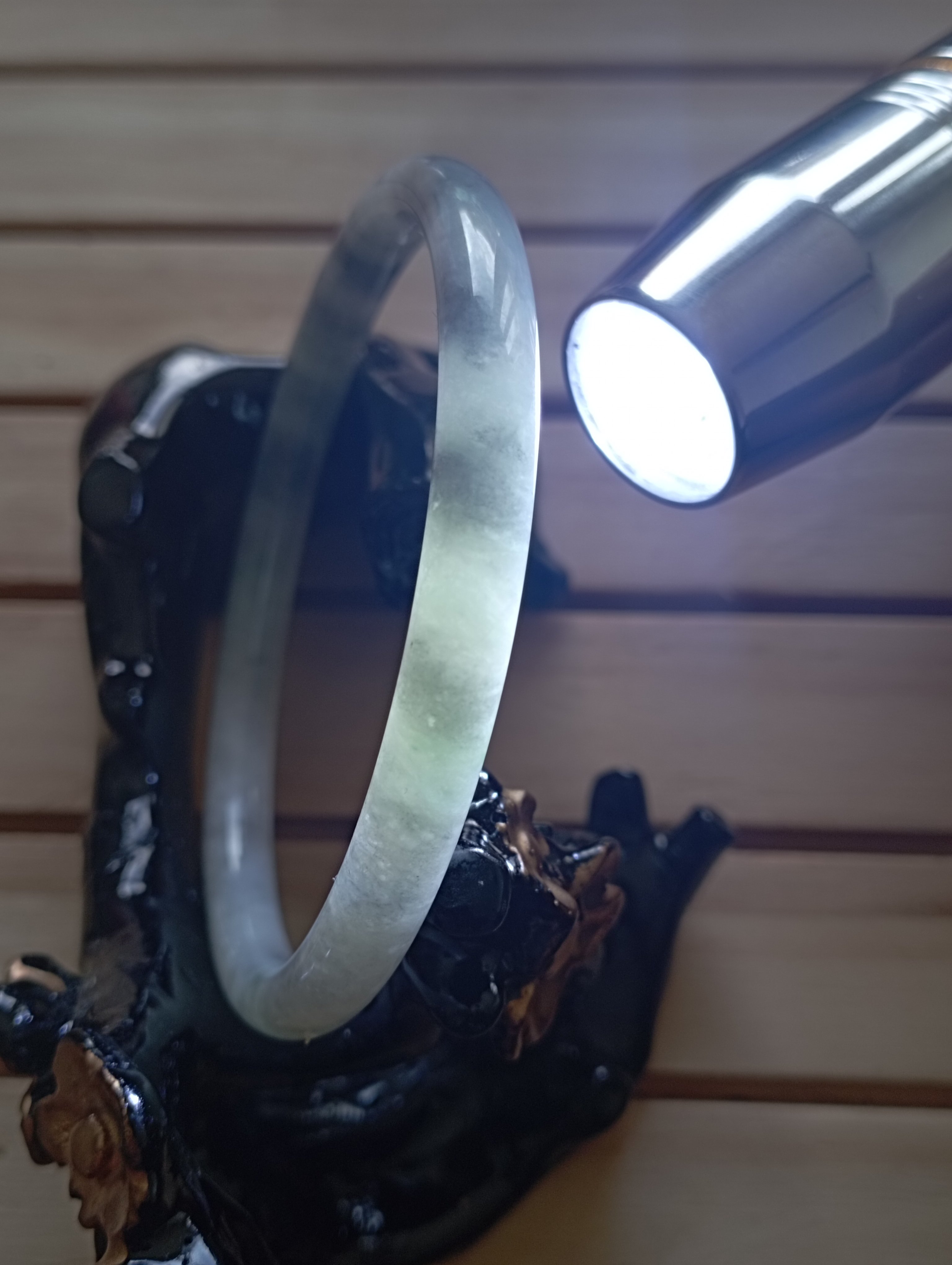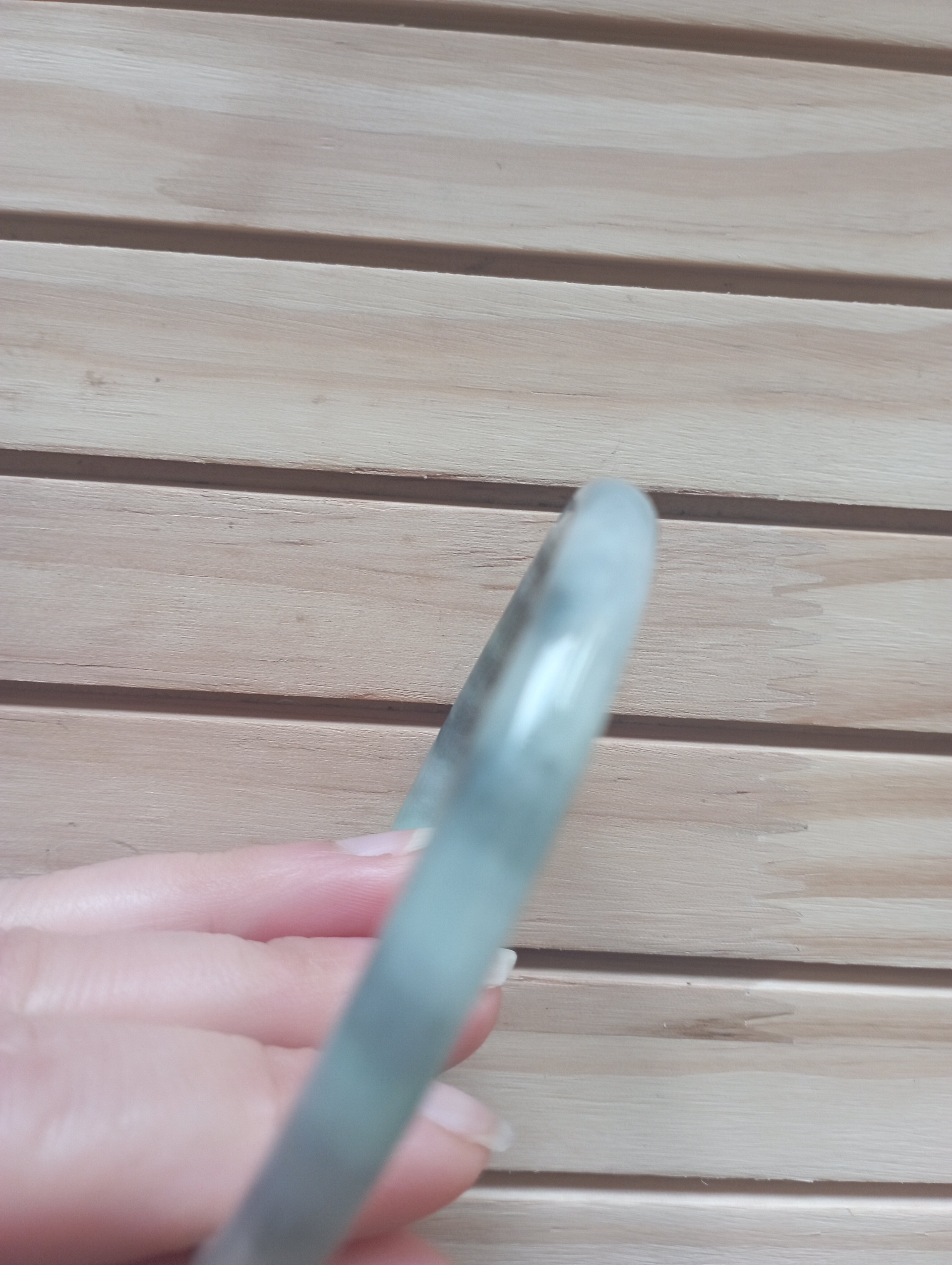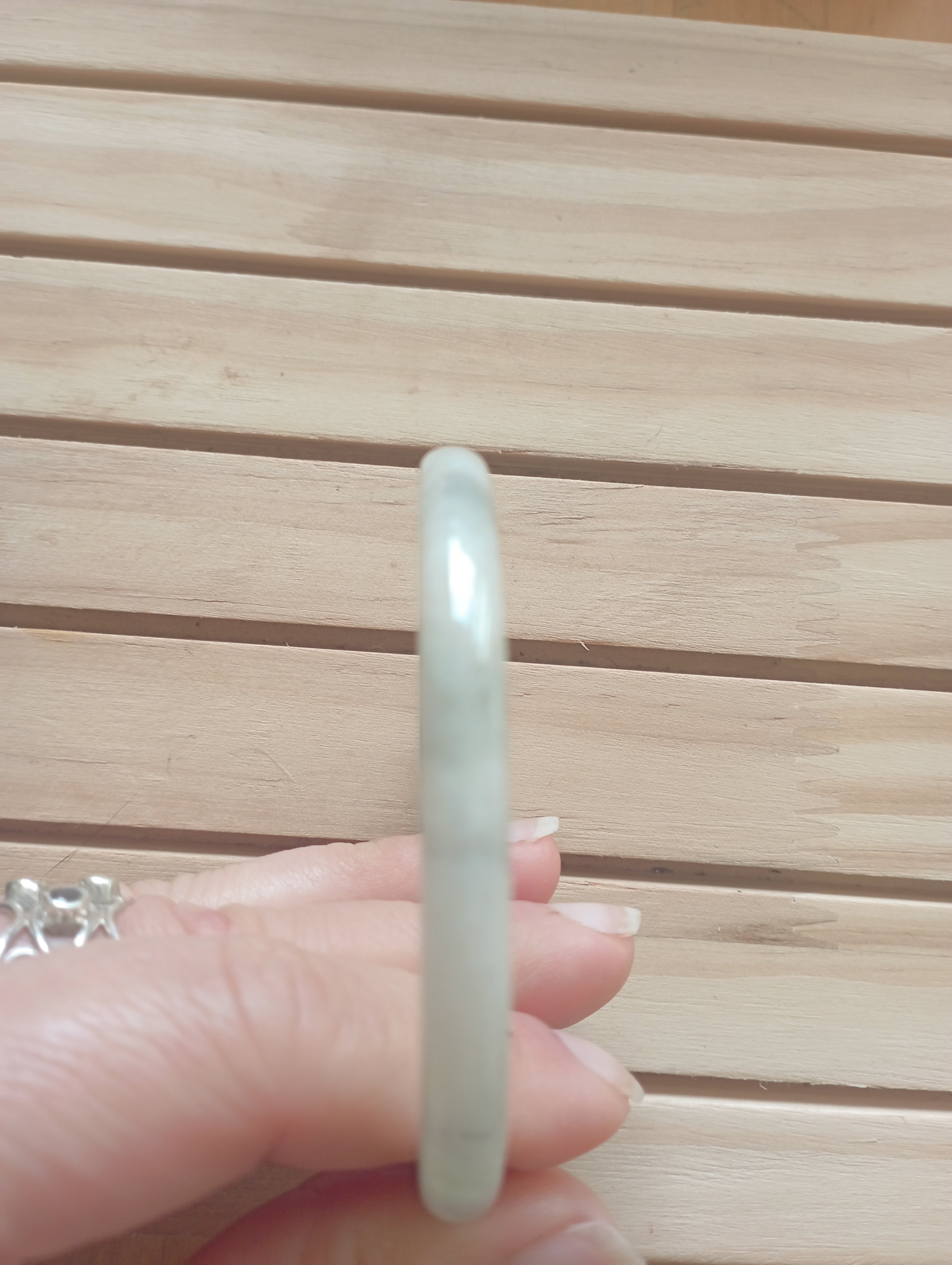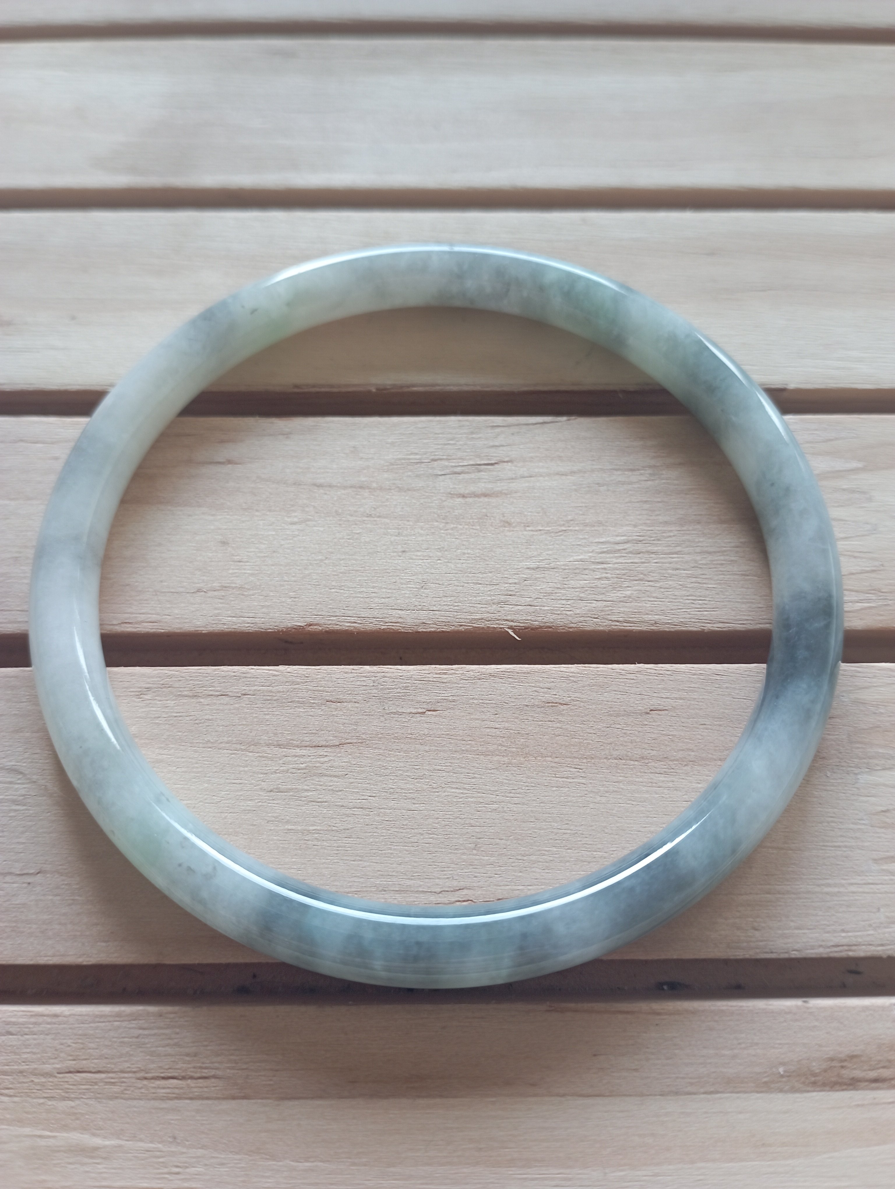 A very unique bangle in natural Chinese water painting style with zebra like stripes and green in places. Can be paired with another similar size and colour bangle to make a pair of ding dang.